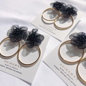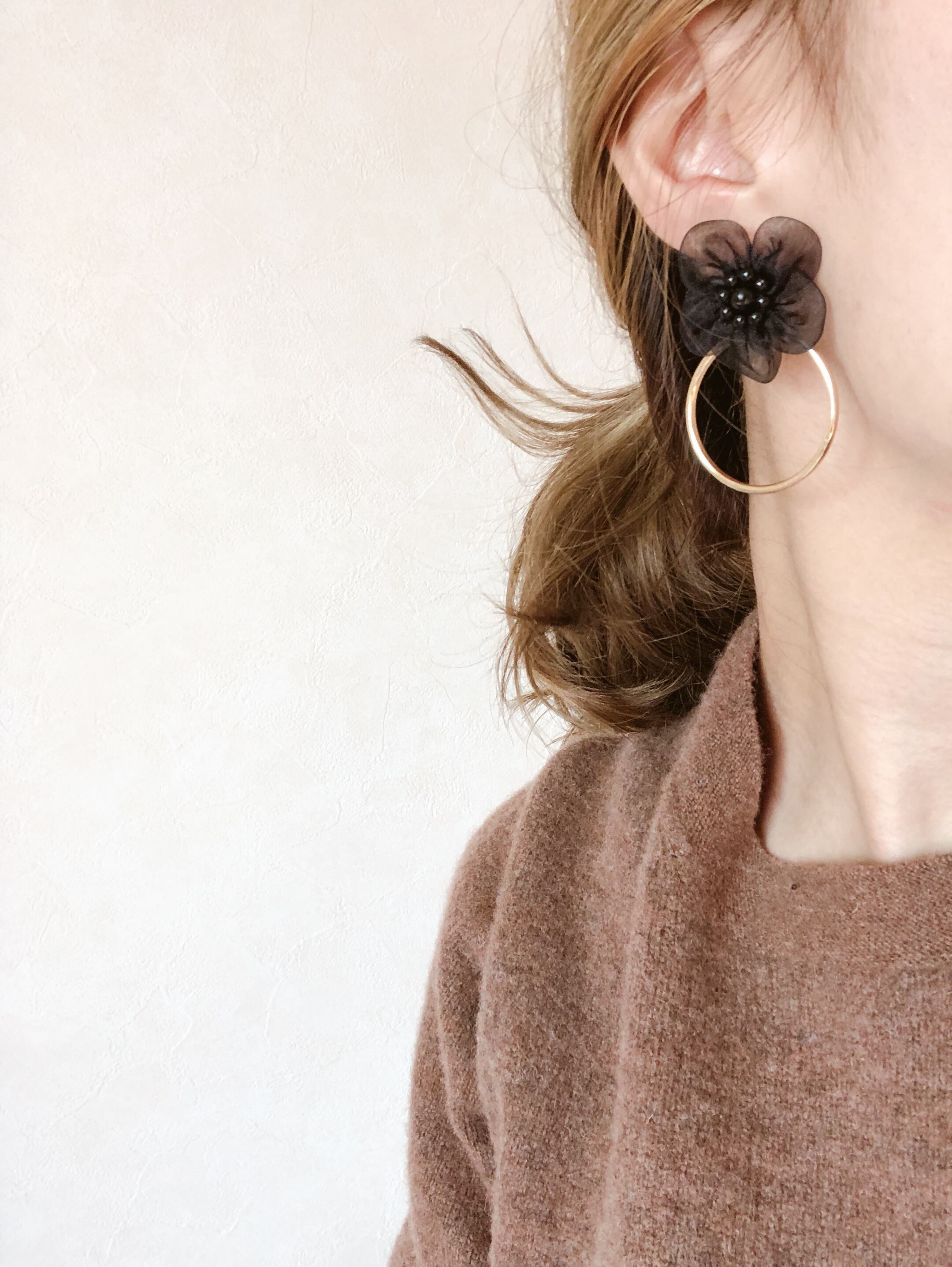 軽めのピアスで黒いレースのお花が大人可愛いシックなアイテムです♡