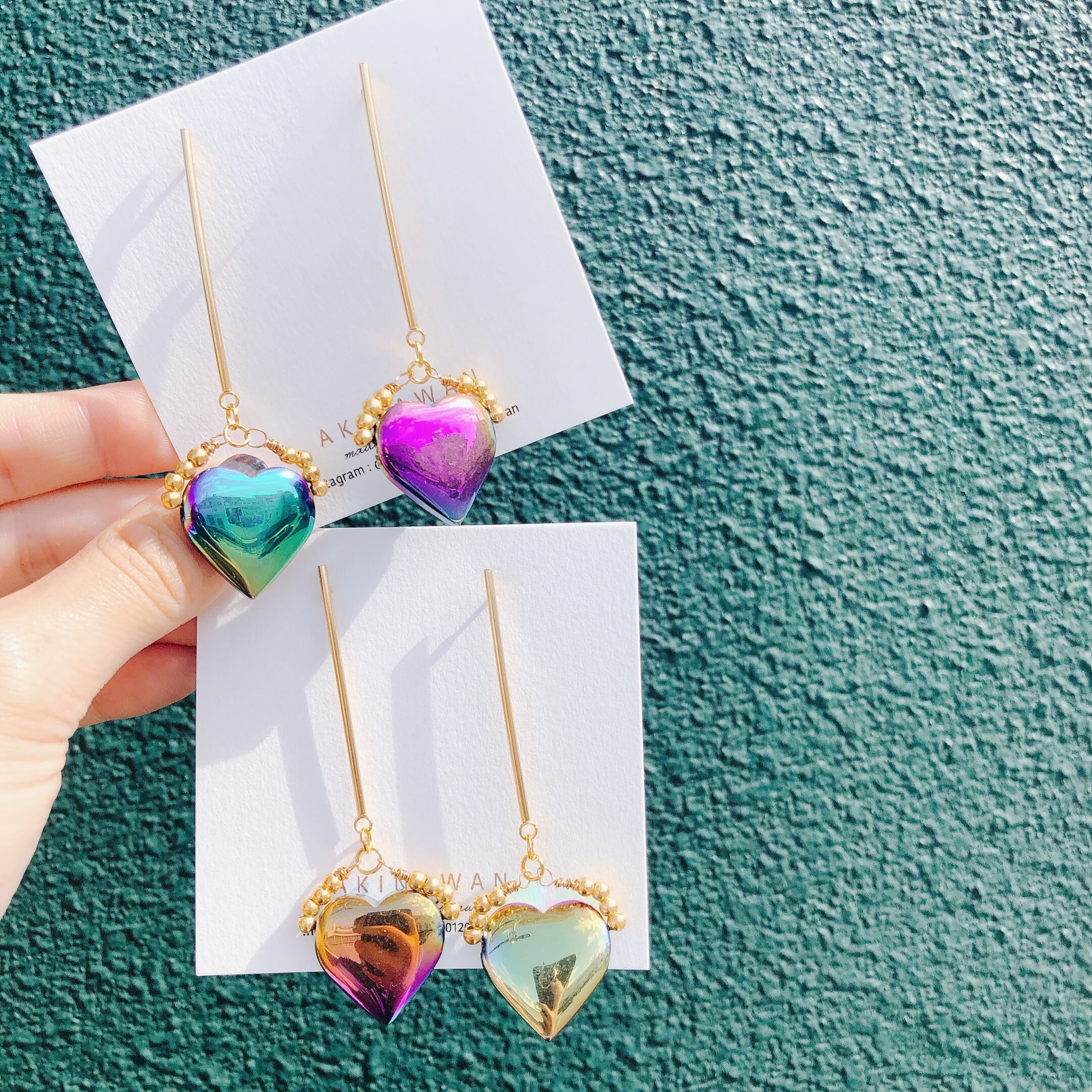 天然石のヘマタイトハートがプックリかわいく、光の当たり具合で色が虹色に輝いてくれて凄く綺麗です♡