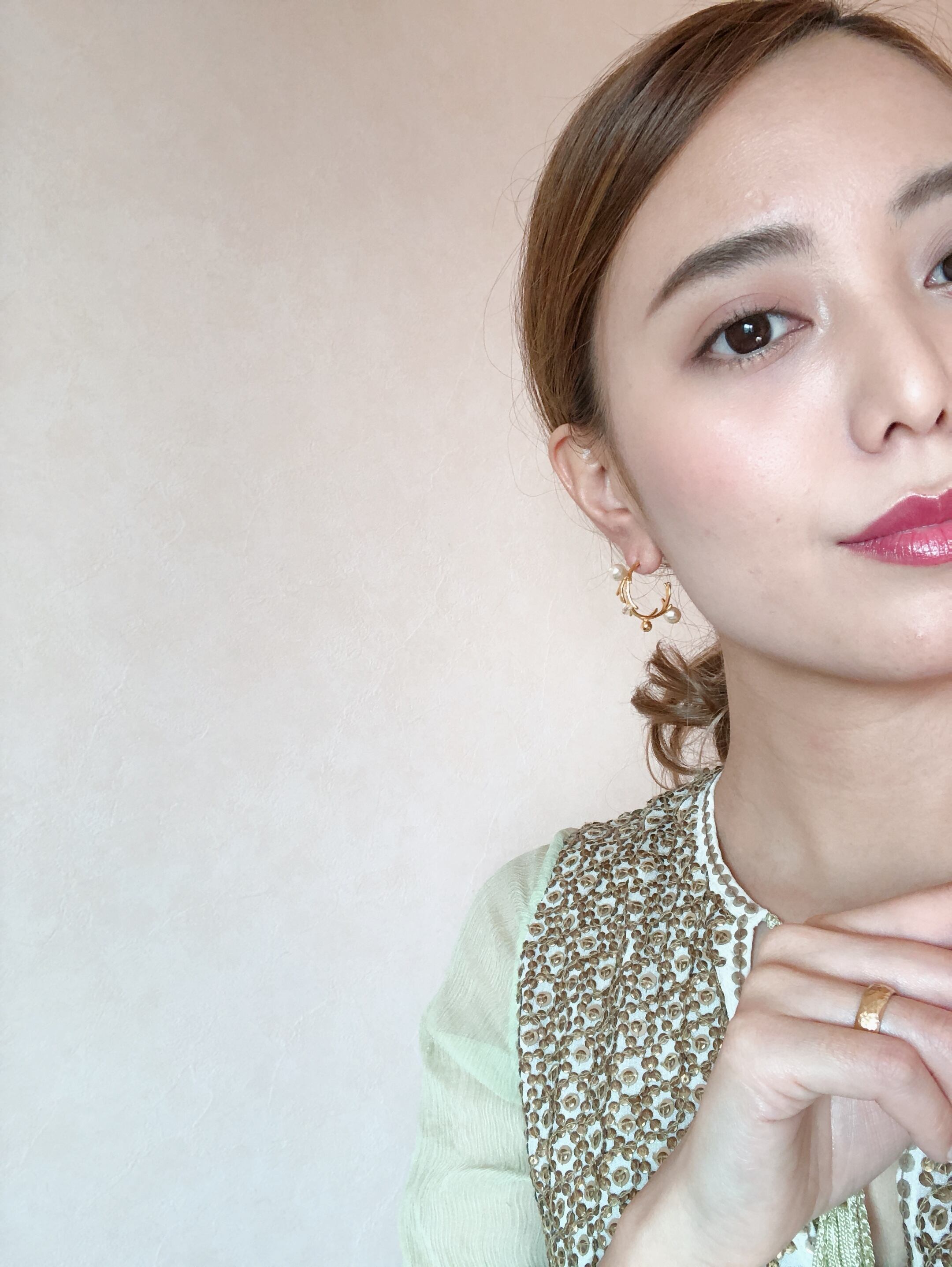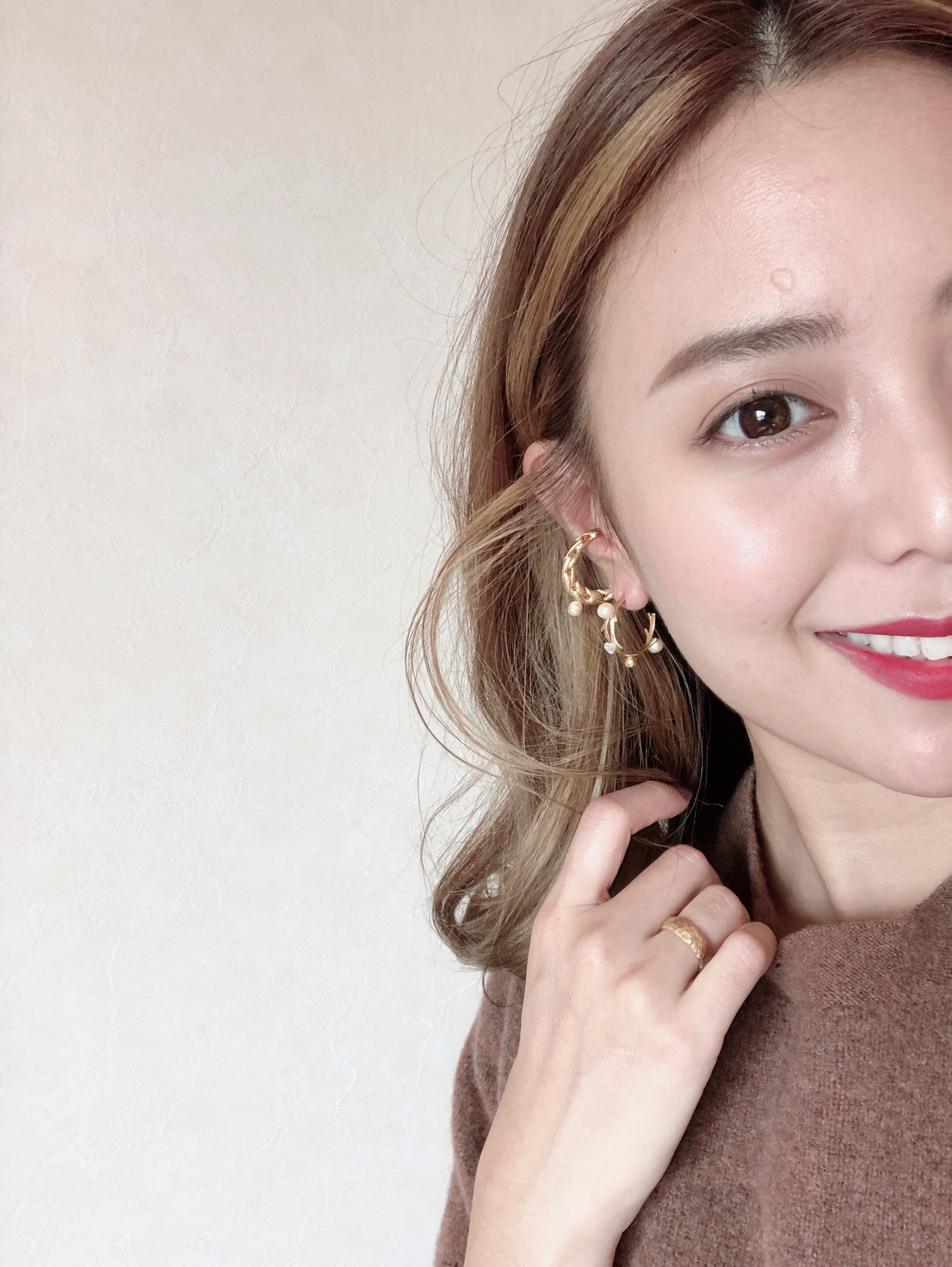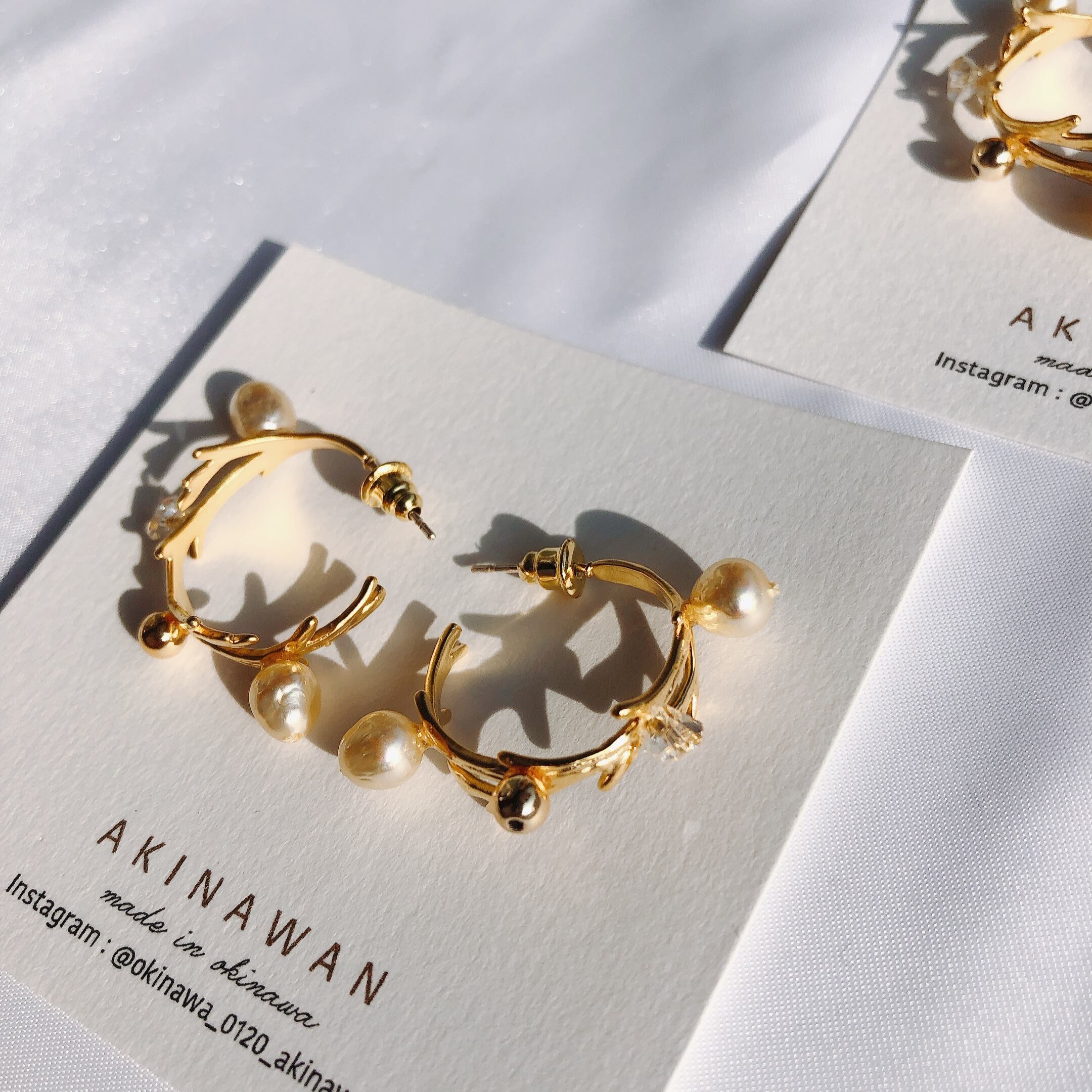 16kgp のフープにはジャパンヴィンテージのパールやクリアのガラスビーズを散りばめたデザインで凄い可愛いピアスが出来あがりました。