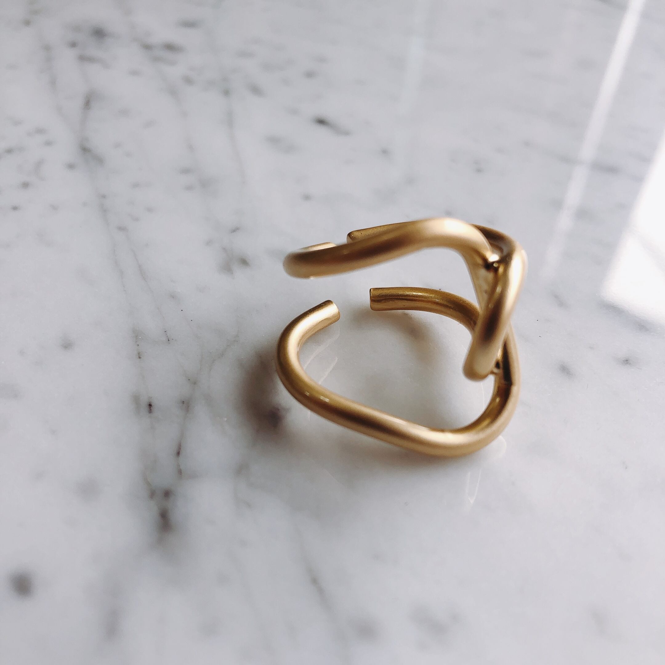 緩やかなカーブが綺麗なマットゴールドの綺麗目リング