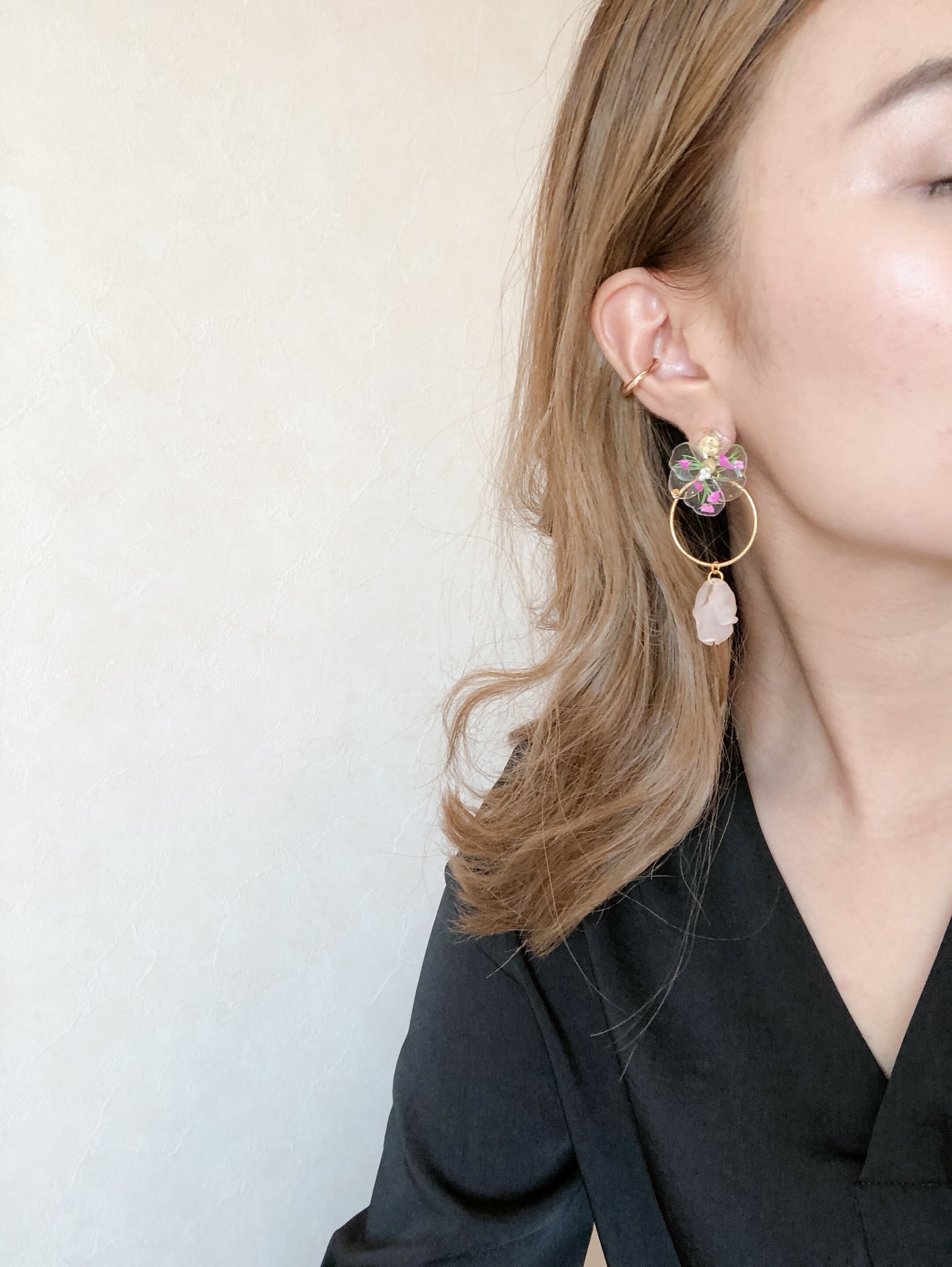 カボションのお花はイエローゴールドとピンクの小さなお花が埋め込まれた可愛らしいデザインの2種類♡