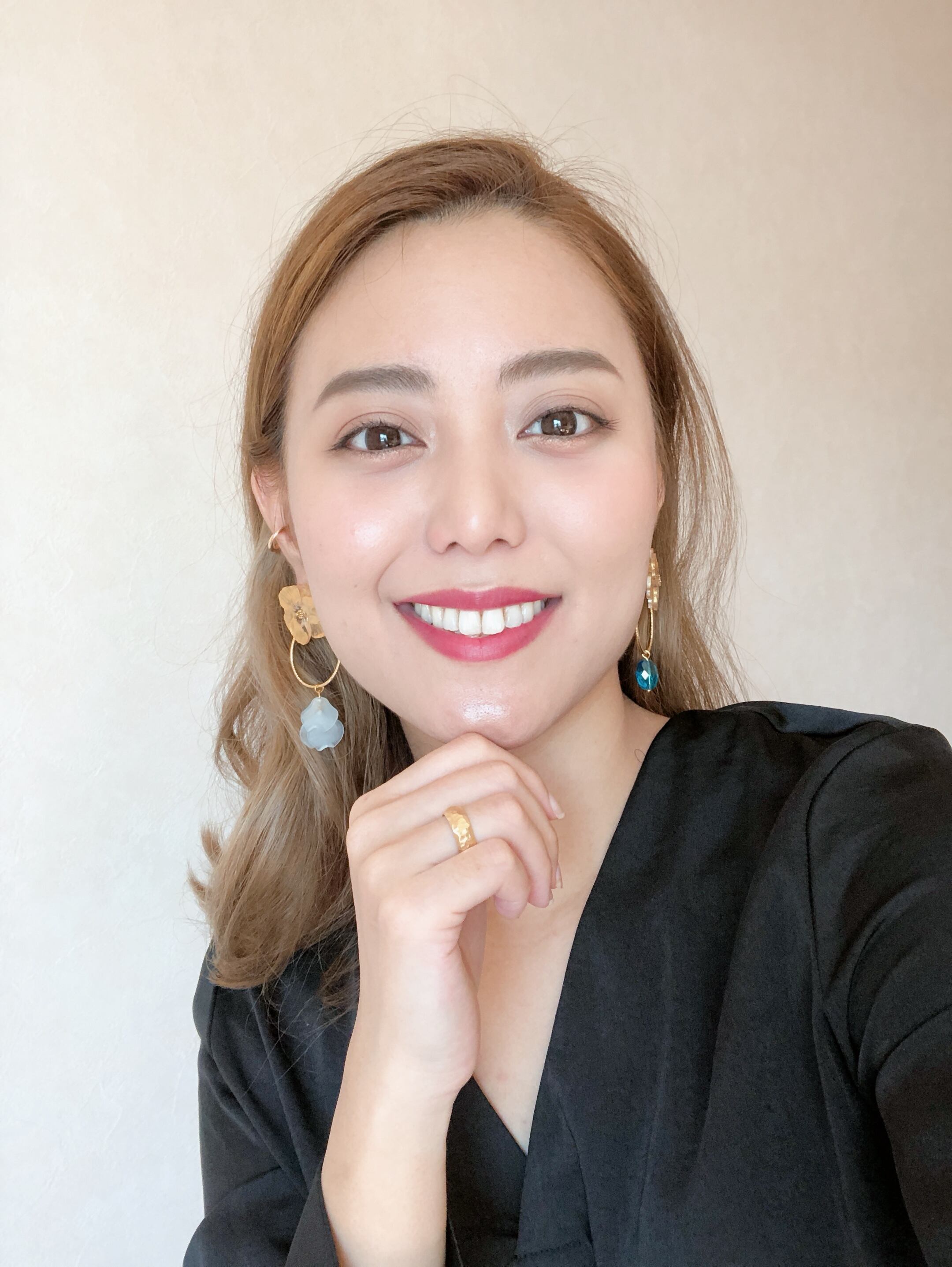 イエローゴールドにはブルーのクリスタルガラスのパーツにブルーの花びらを合わせて、元気カラーに