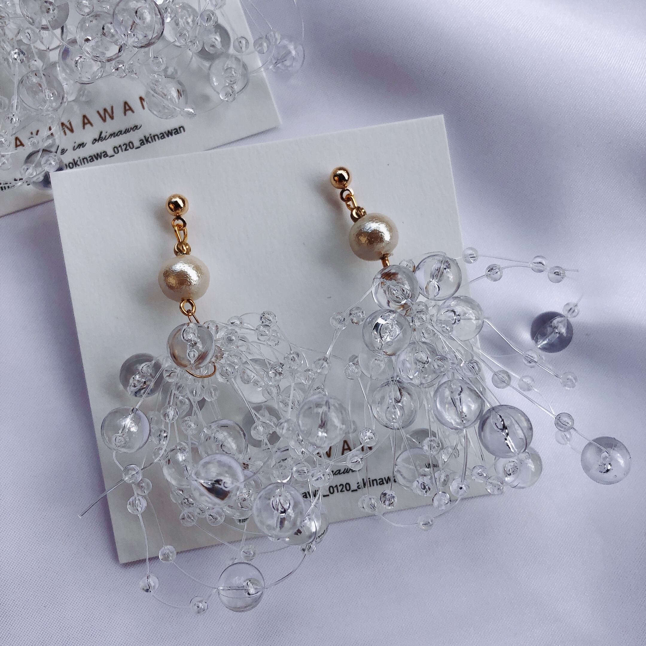 クリアとパールの組み合わせなので主張し過ぎないところが、、、大人可愛い感じで好きなデザインです。