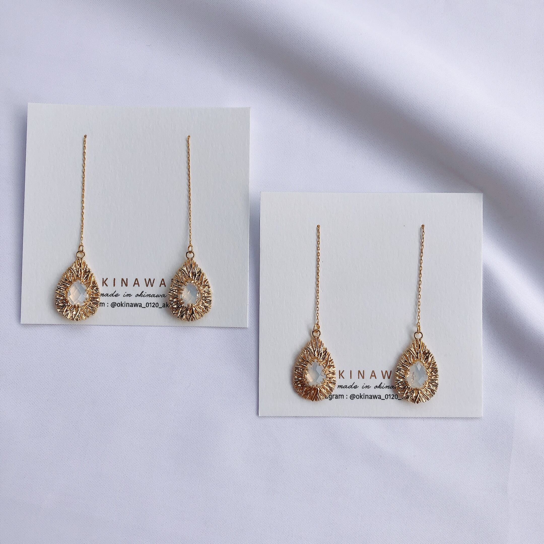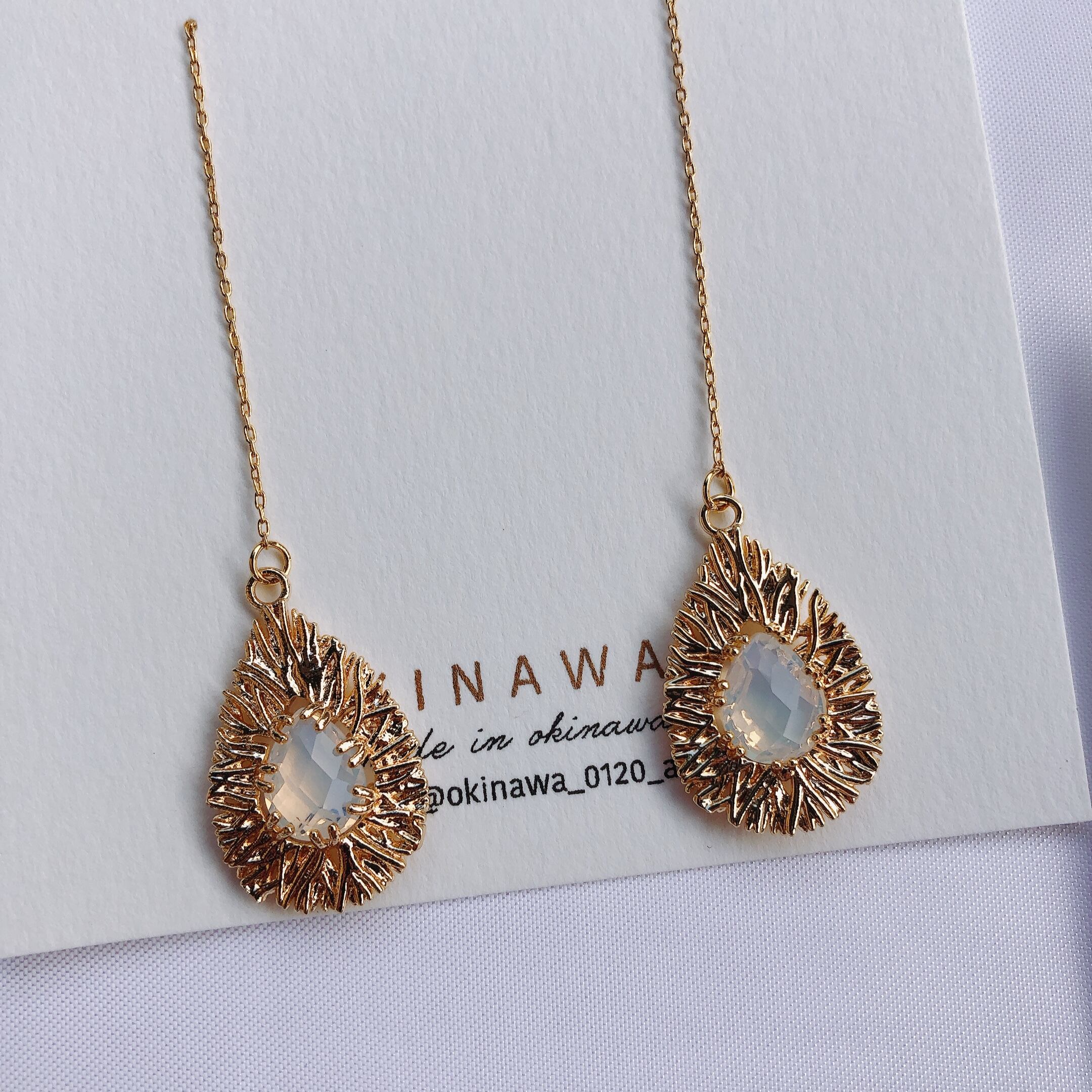 真鍮で出来たデザインの真ん中にミルキー色のガラスを♡