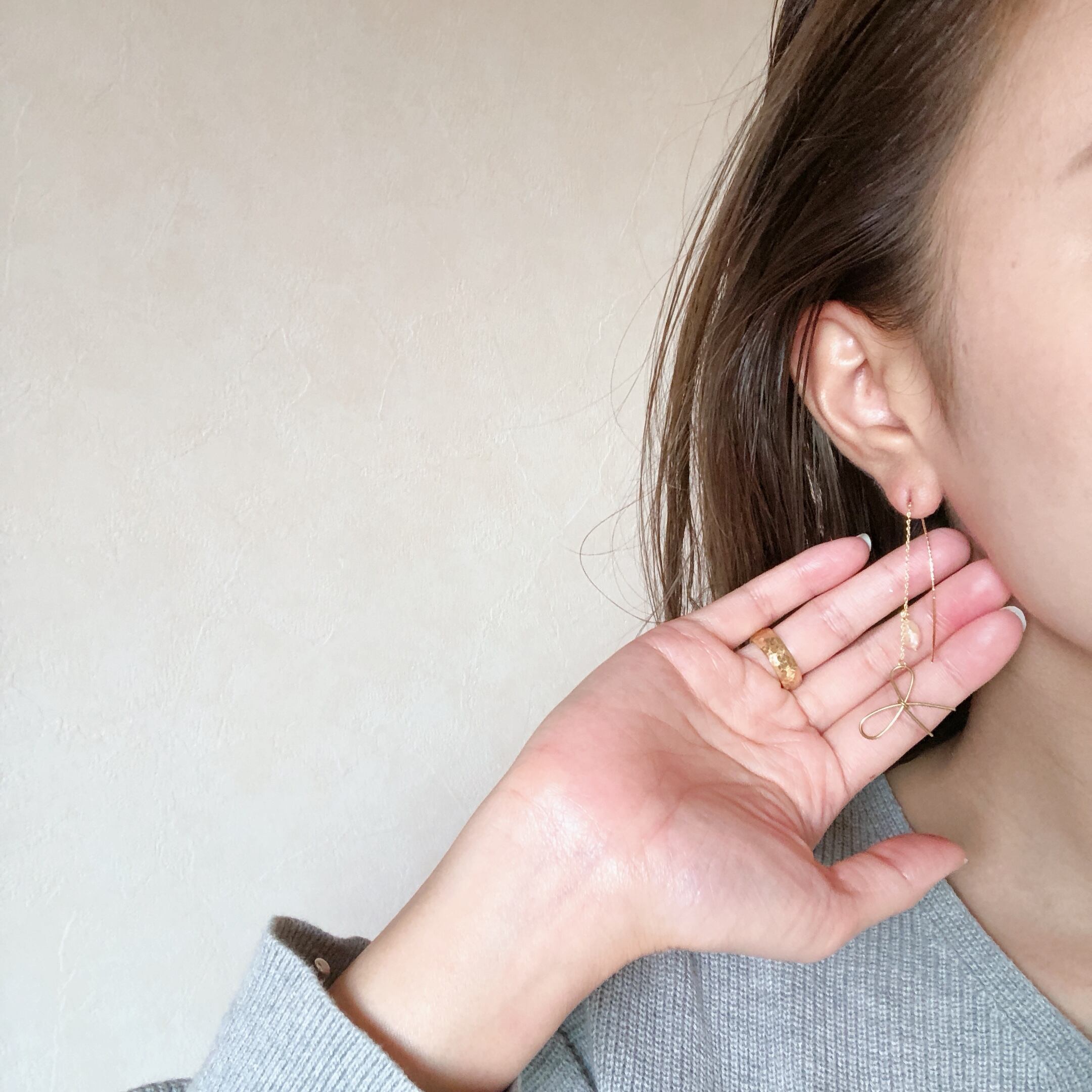 華奢なブラス製のリボンに小粒サイズの淡水パールを♡