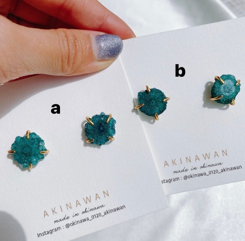 小ぶりの綺麗な半貴石(天然石)に24kgpのゴールドプレートが映えるデザインのピアスになります