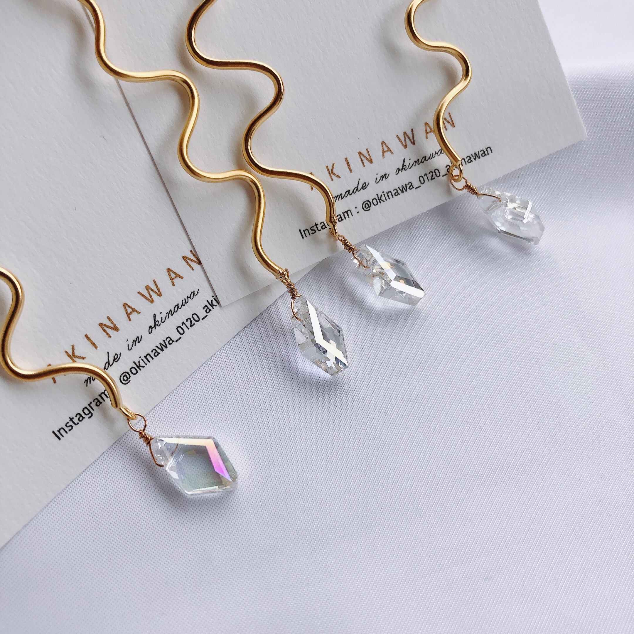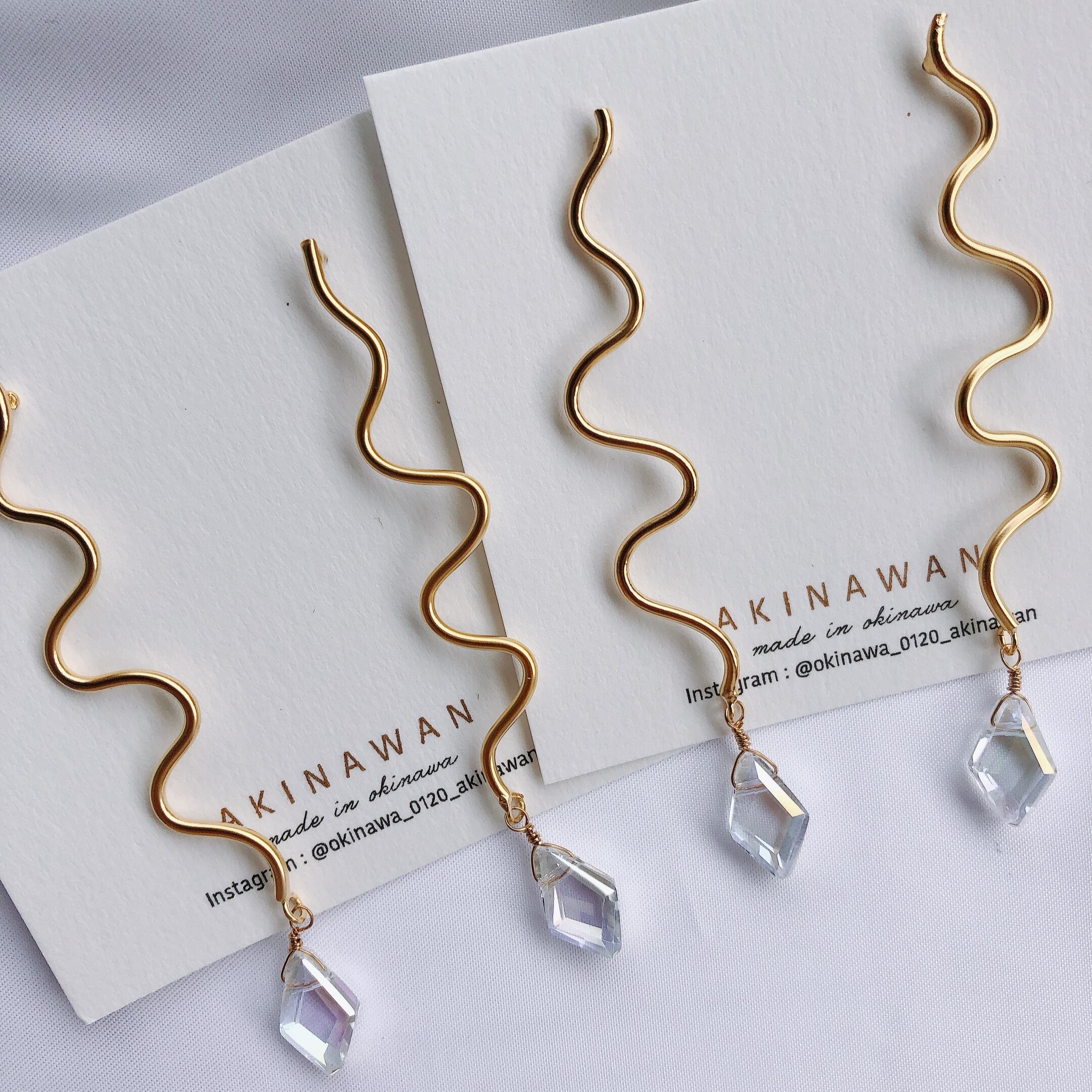 16kgp 加工のクネクネとした華奢なパーツにオーロラ加工されたクリスタルガラスの小さなパーツを♡