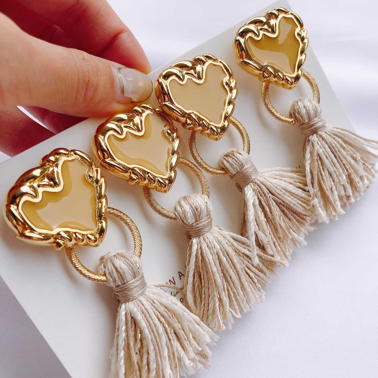 ヴィンテージ の可愛いハートのボタンに糸をミックスさせたオリジナルのタッセルを