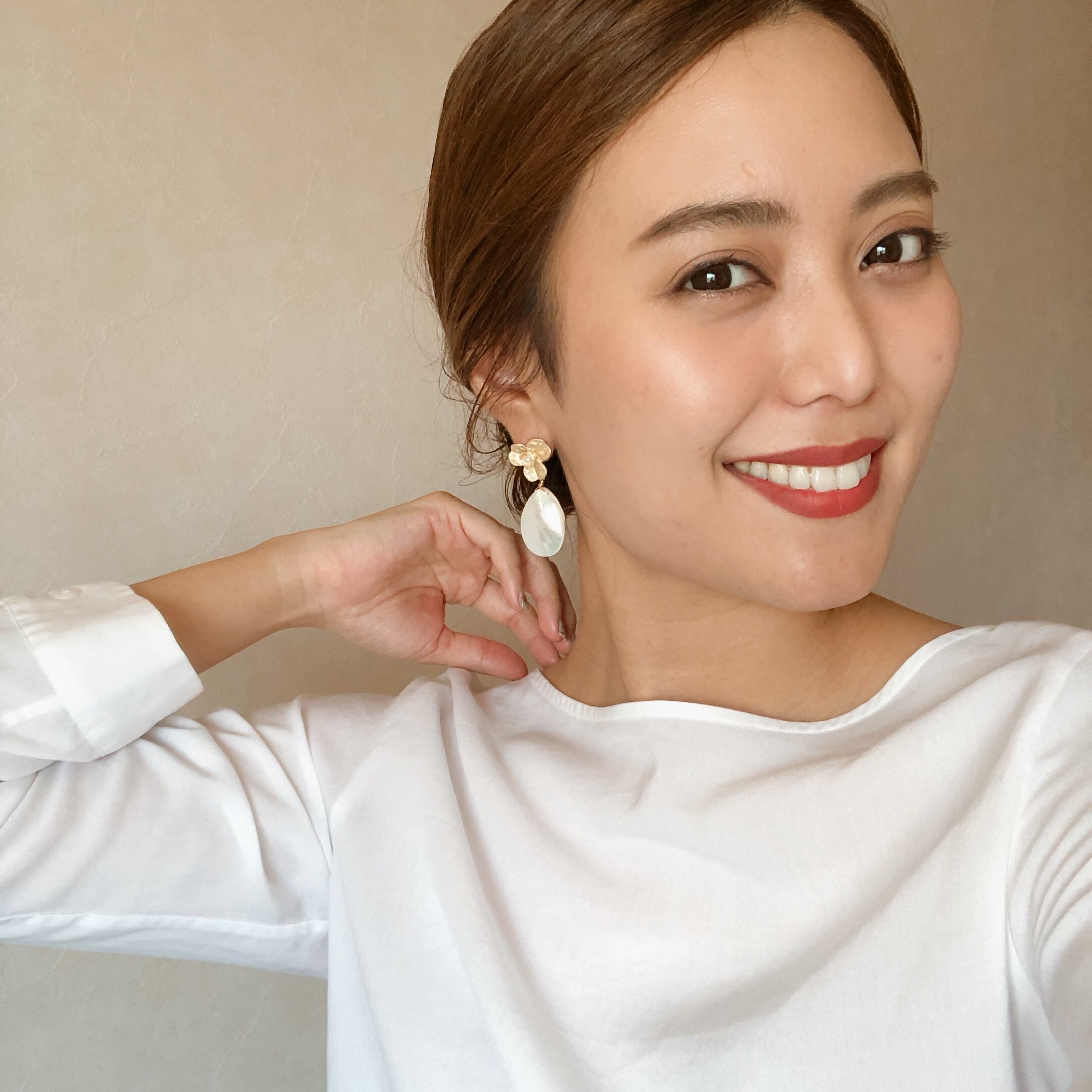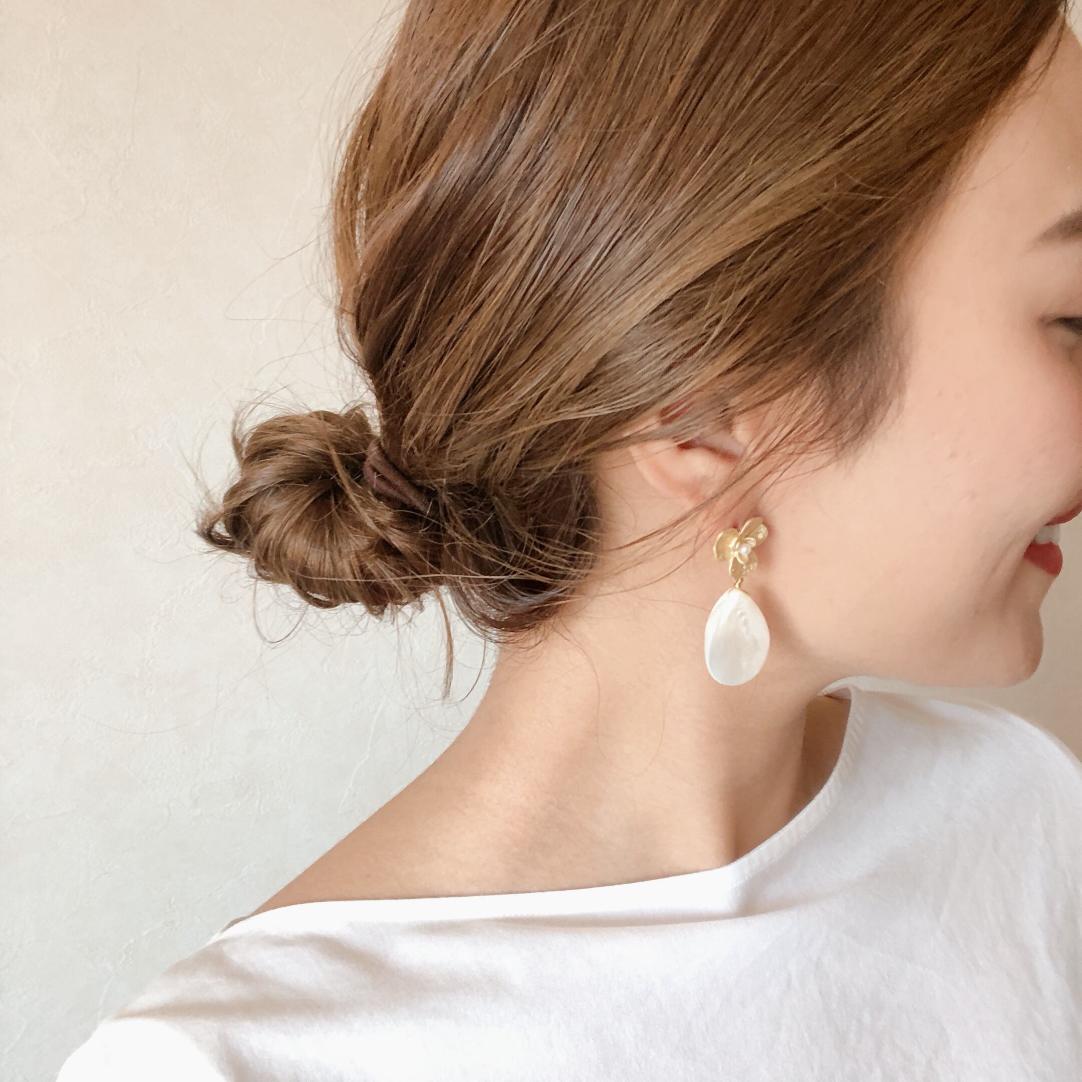 マザーオブパールを使用した綺麗な大人可愛いピアスに仕上がりました♡