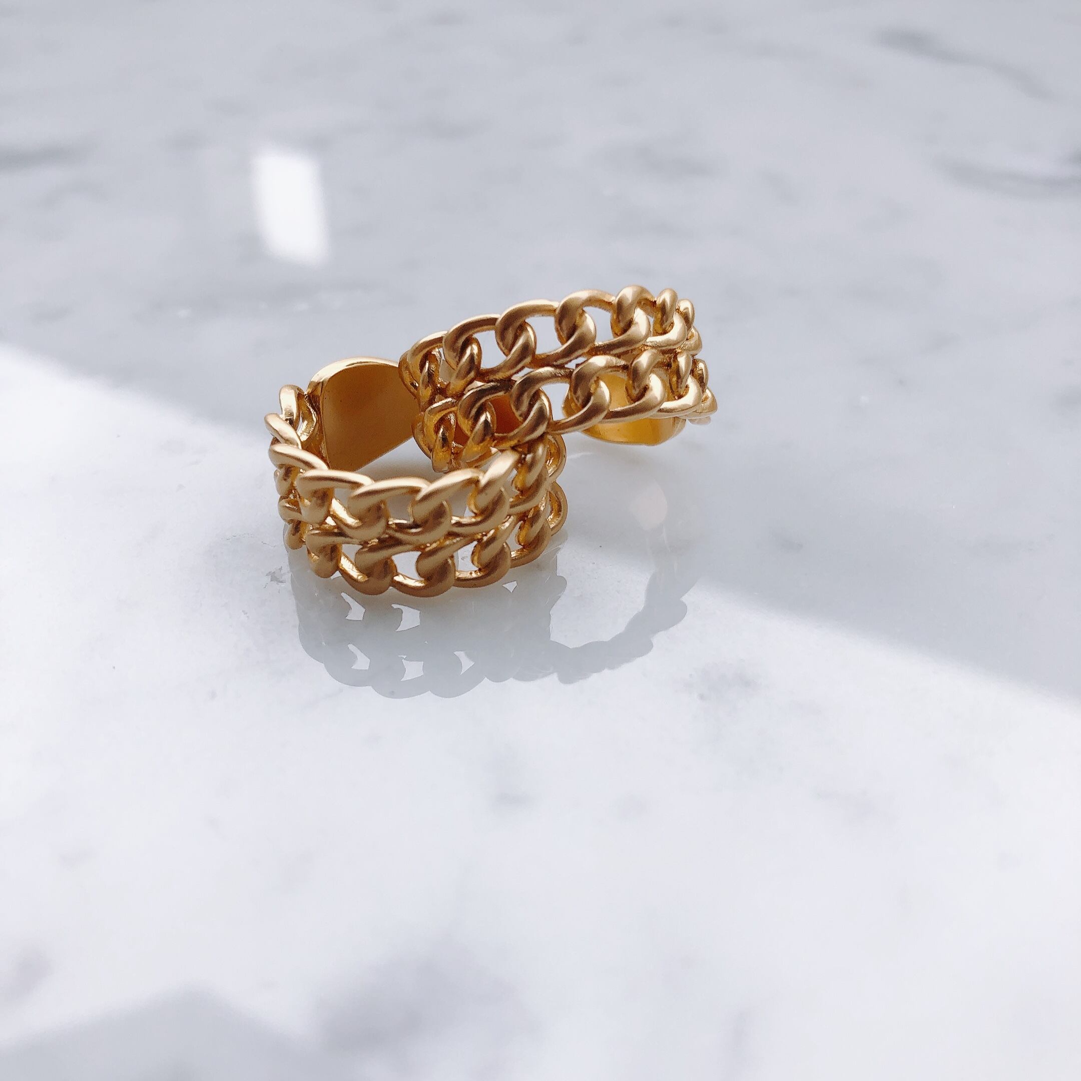 マットなゴールドで落ち着いた雰囲気になる大人可愛いリングになっています♡