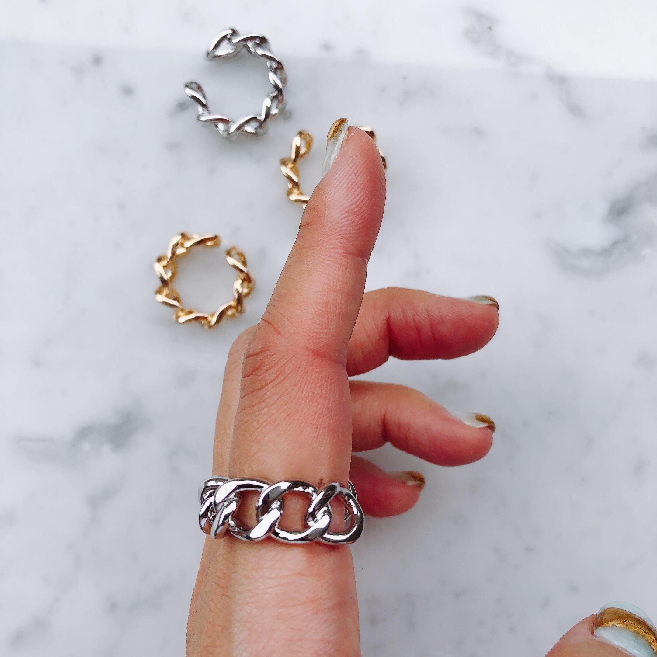 ごつめなチェーンリングですが、大人可愛い垢抜けアイテムですよ♡
