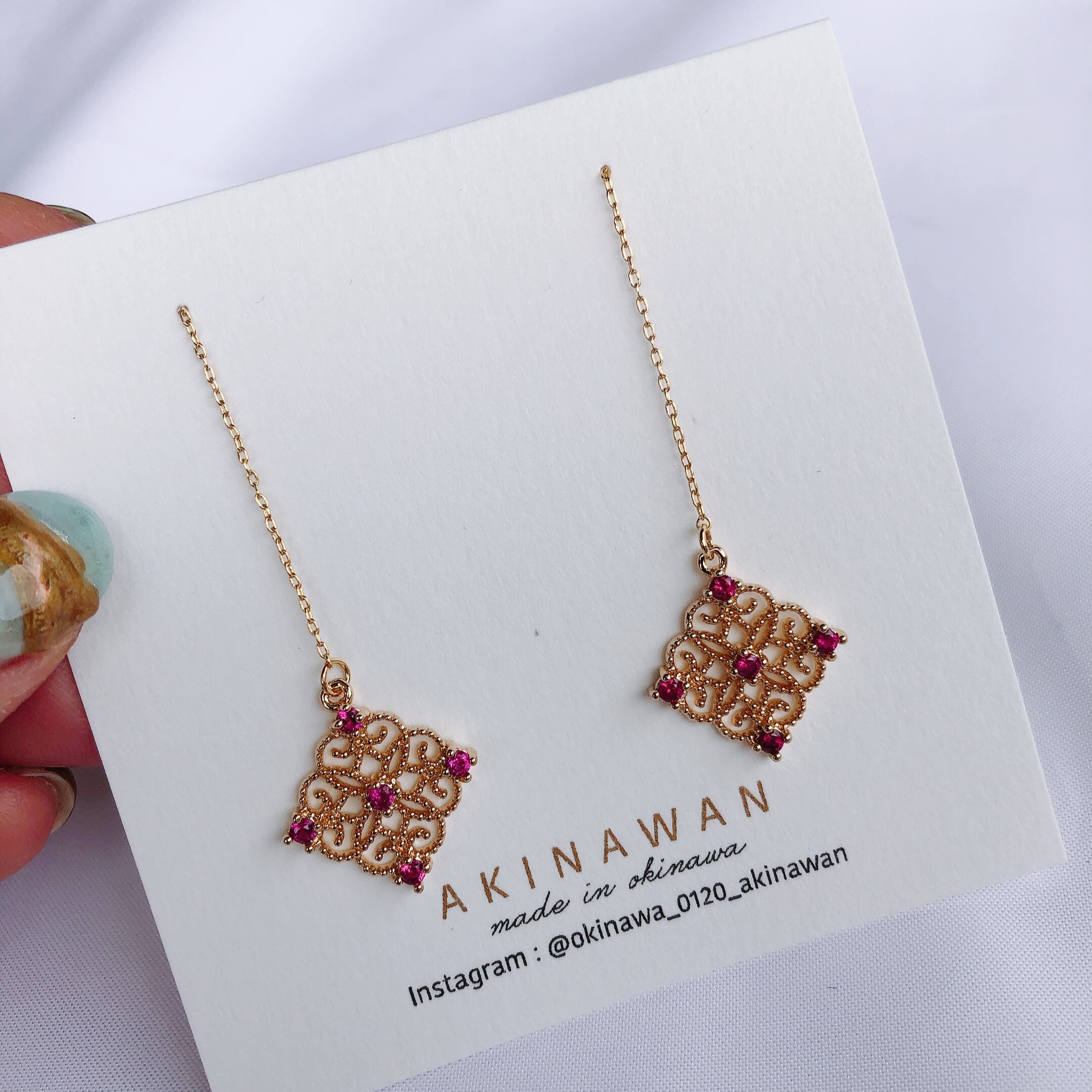 モロッコチックなデザインのチャームに小さなラインストーンがチョコンとついてとっても綺麗で上品なデザインに♡