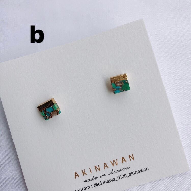 カッパーターコイズ が綺麗な小さめのピアスになります