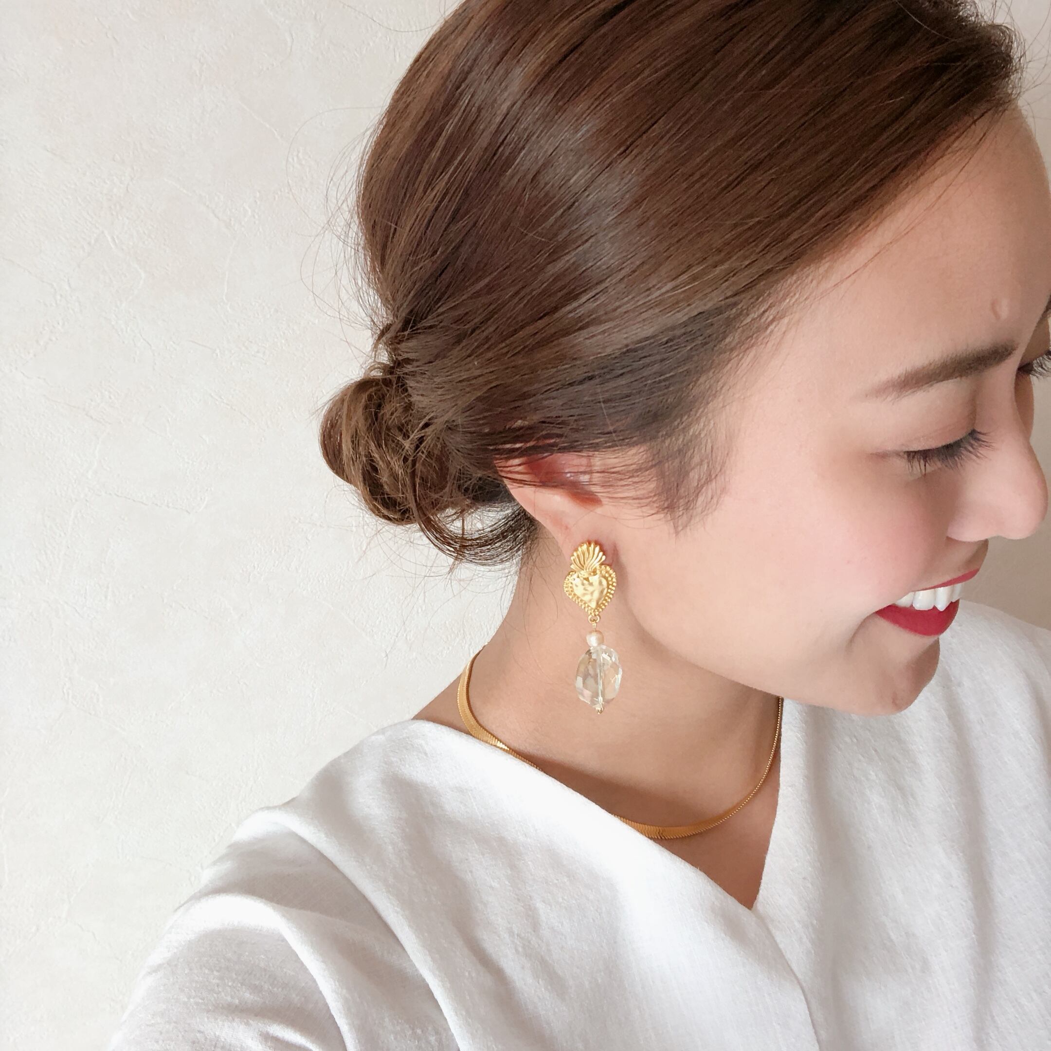 マットカラーのゴールドにキラキラ輝くクリスタルを