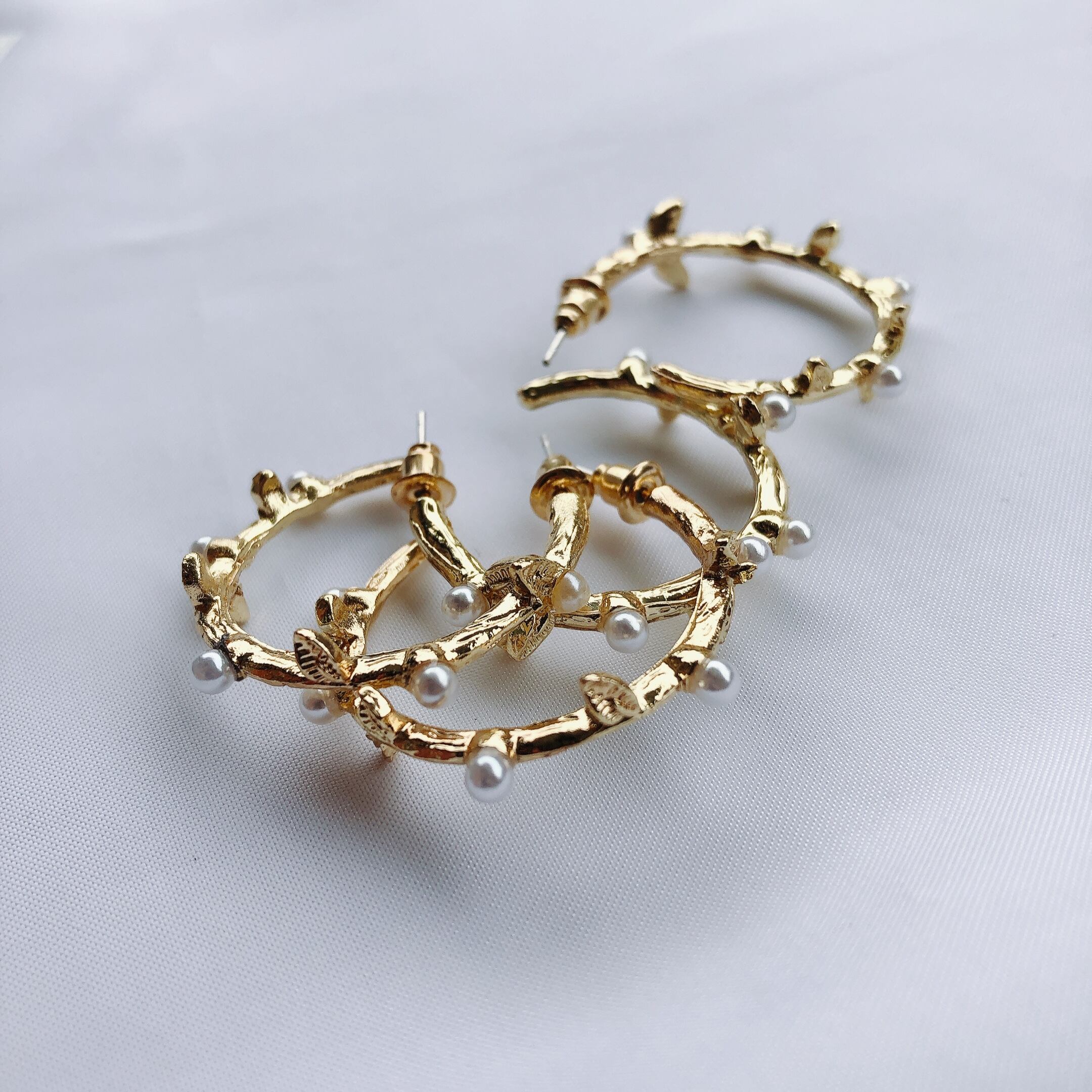 小さなパールに葉っぱのつたが巻きついたようなデザインです