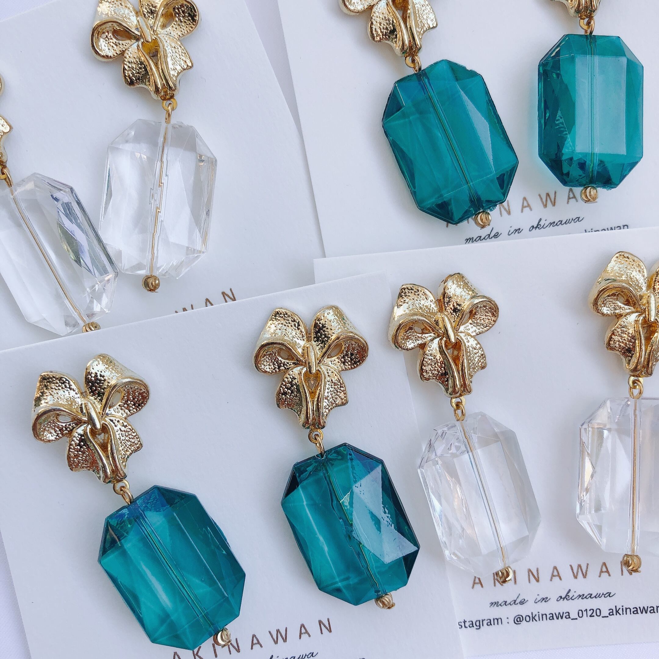 ヴィンテージ のリボンのボタンにアクリルカットパーツを