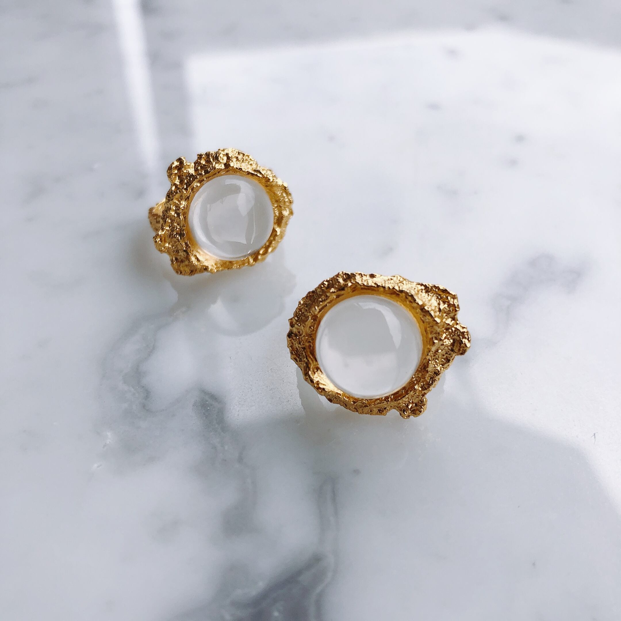 ゴールドカラーの真ん中にはプックリとかわいい水滴がついたようなデザインで大人な抜け感あるコーディネートを楽しんでいただけますよ♡