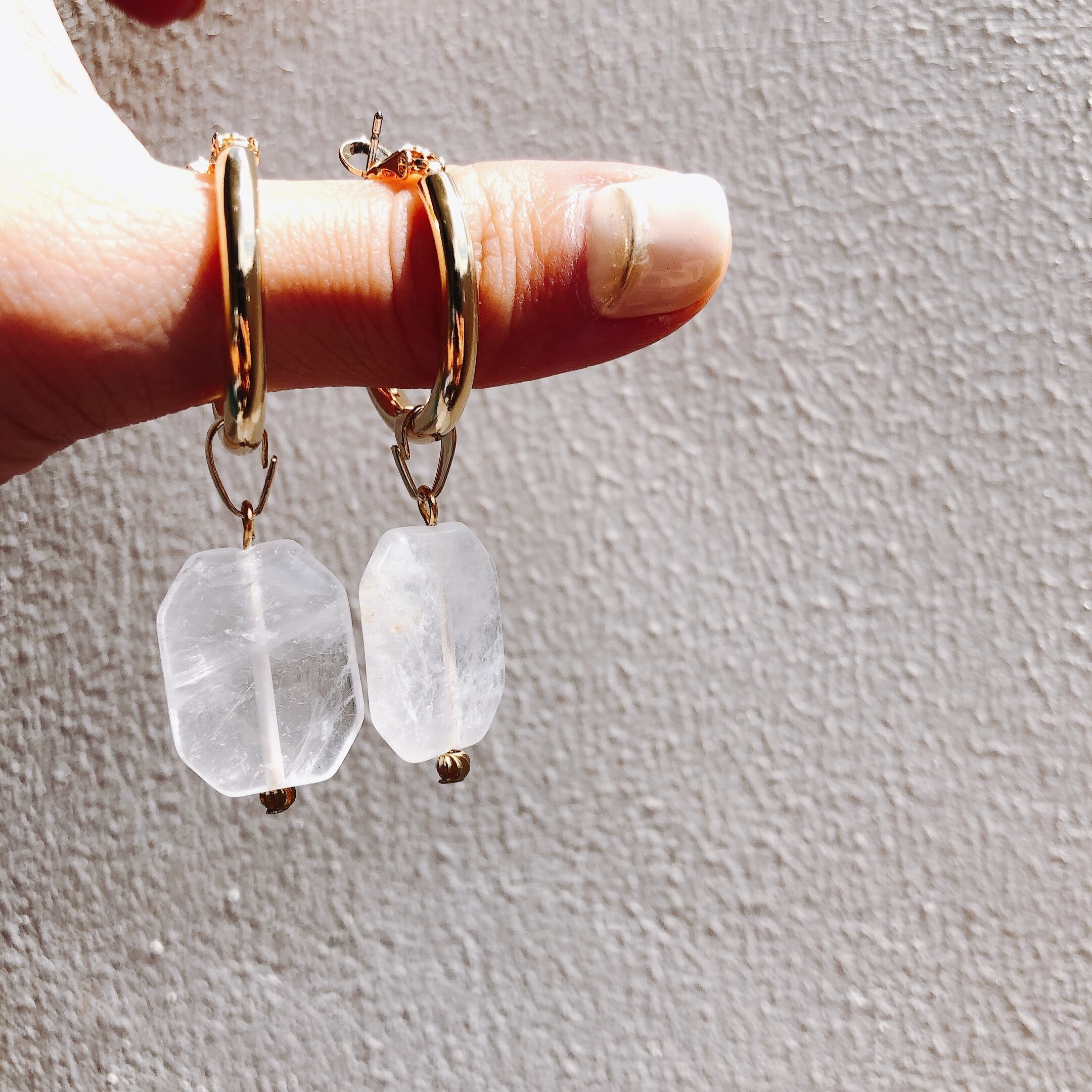 crystal stone 2way hoop pierce