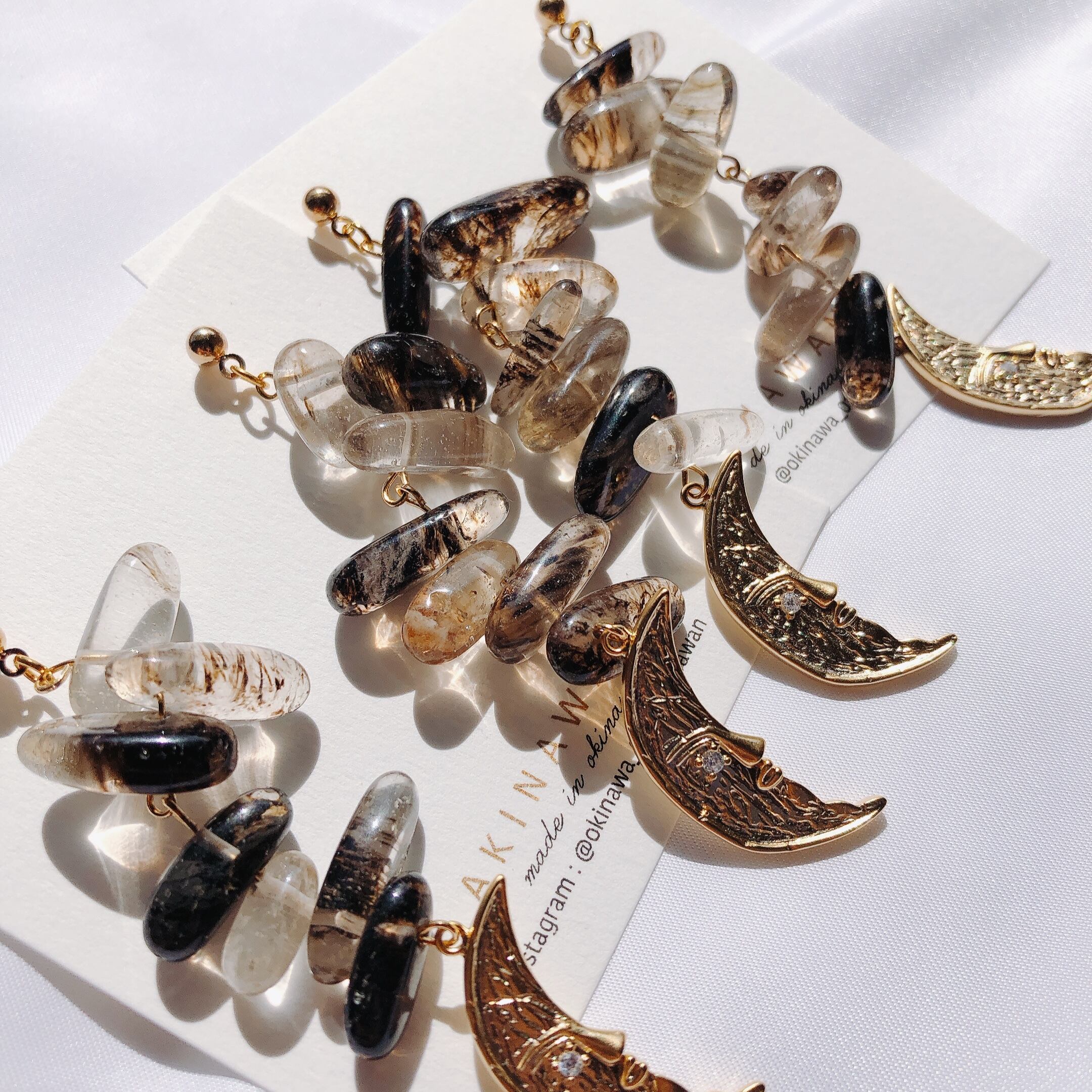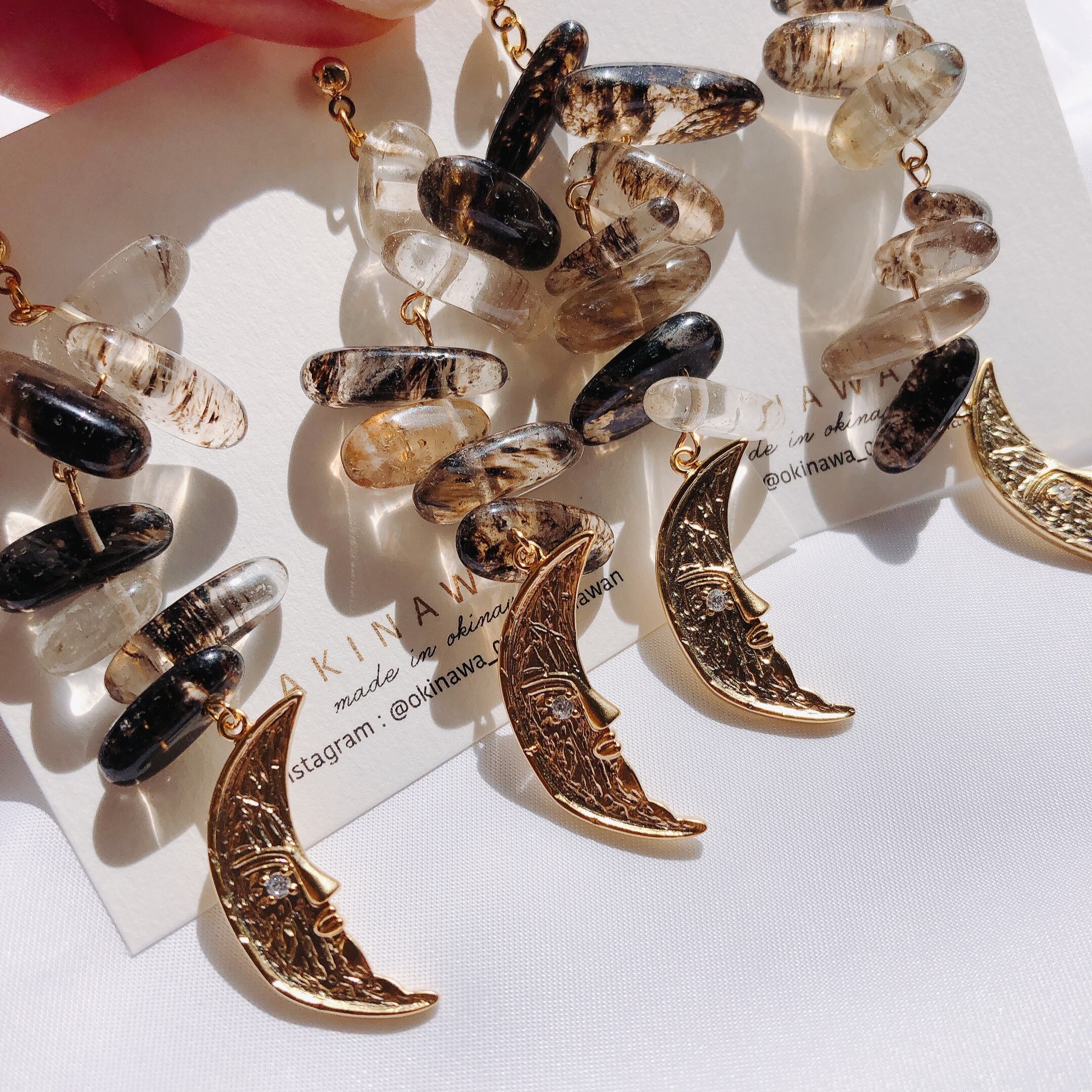 綺麗なお月様のチャームの目の方に小さなラインストーンがちょこんと付いております