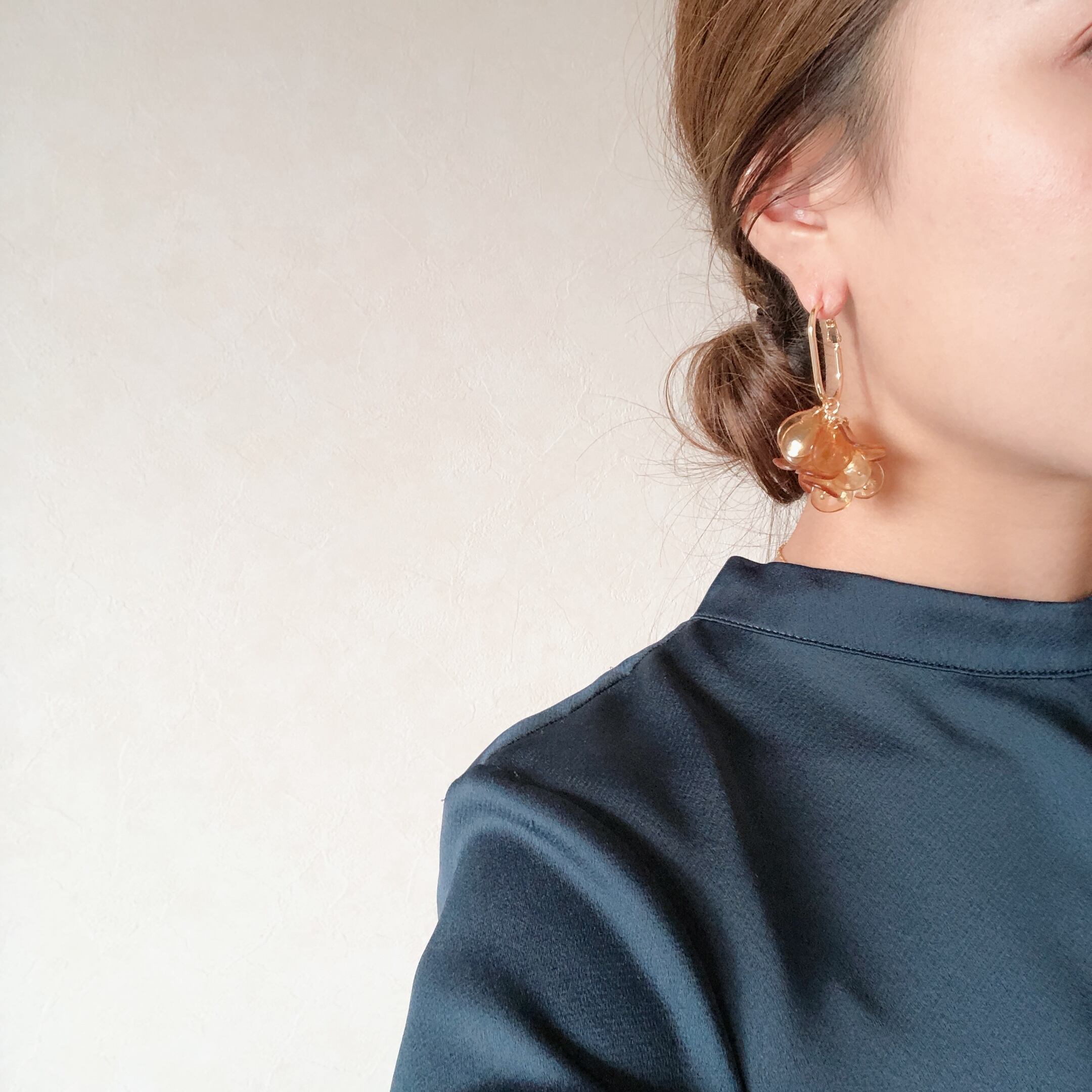 ブラウンカラーはお肌にも近いカラーなので大ぶりでもいやらしくなくサラッと付けれると思います♡