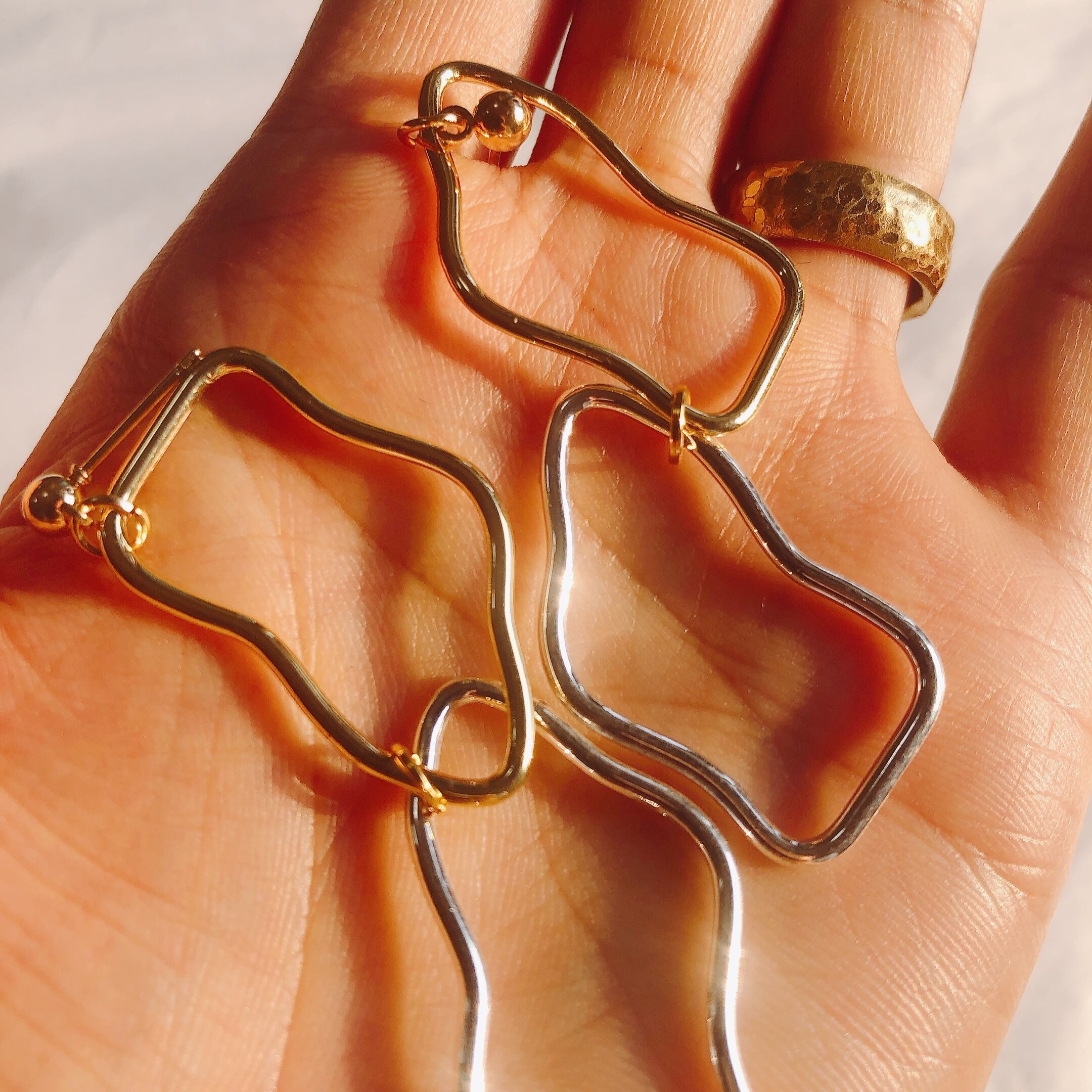 ニュアンス感あるゴールドとシルバーのmixピアス