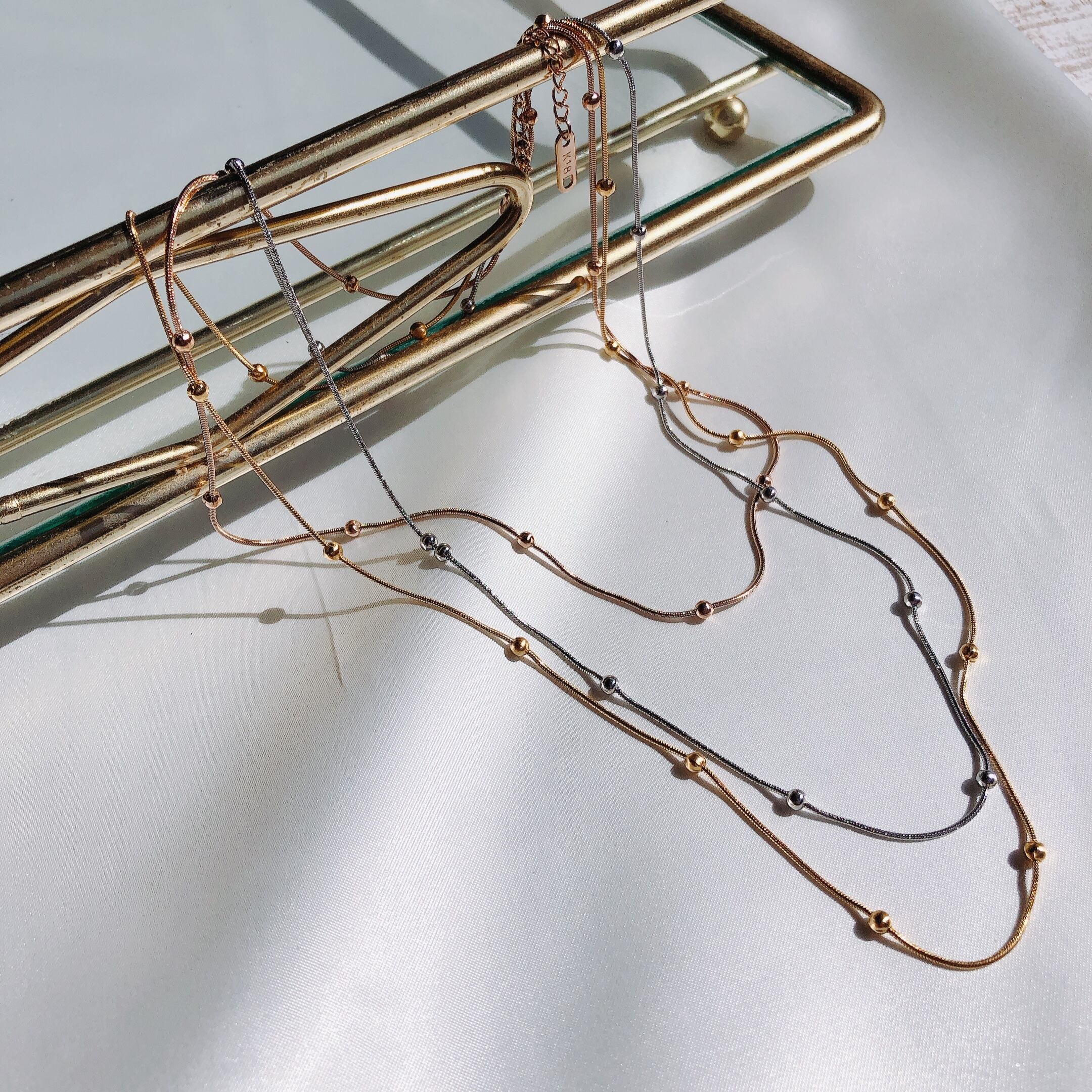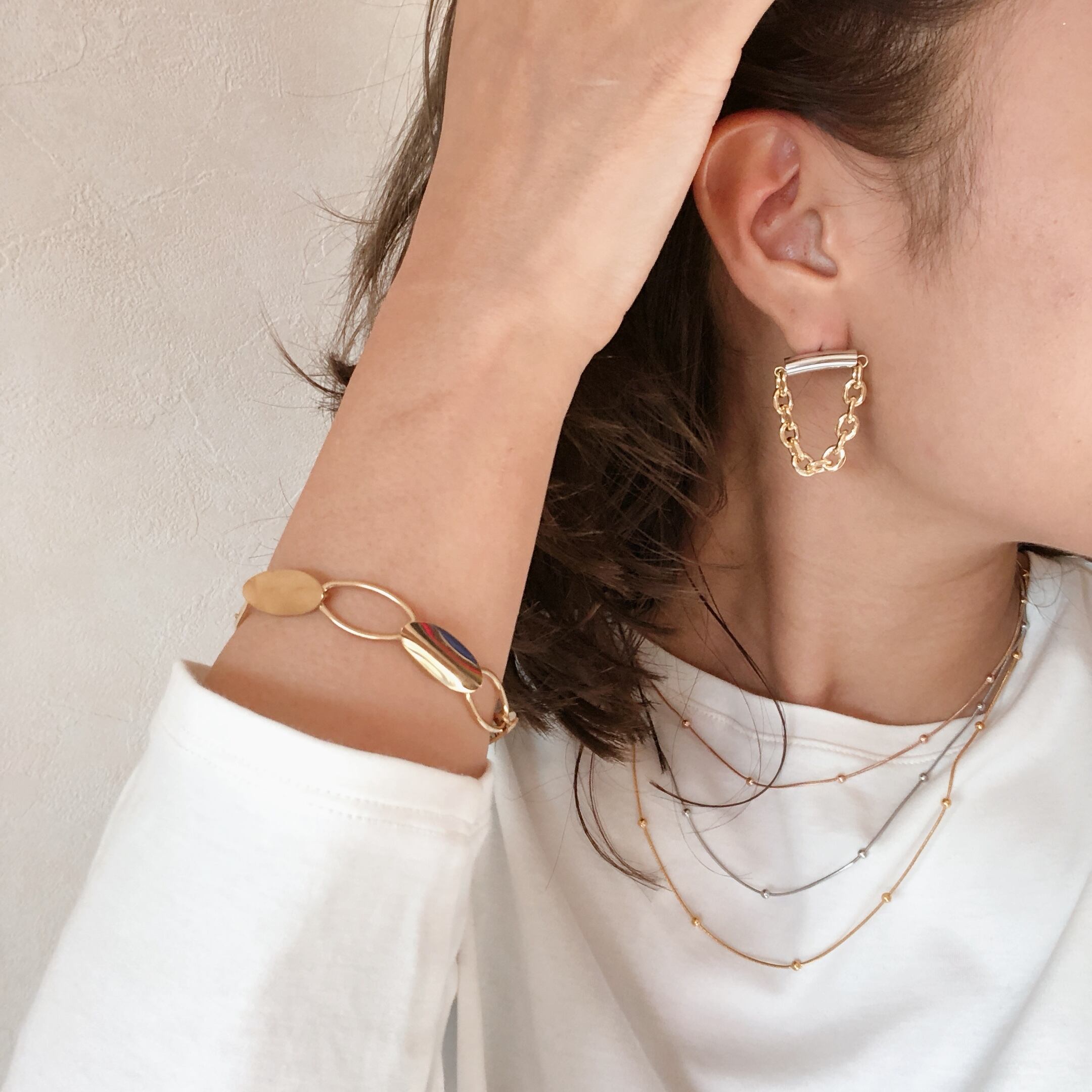 ゴールド、シルバー、ローズゴールドのチェーンが3色付いています!