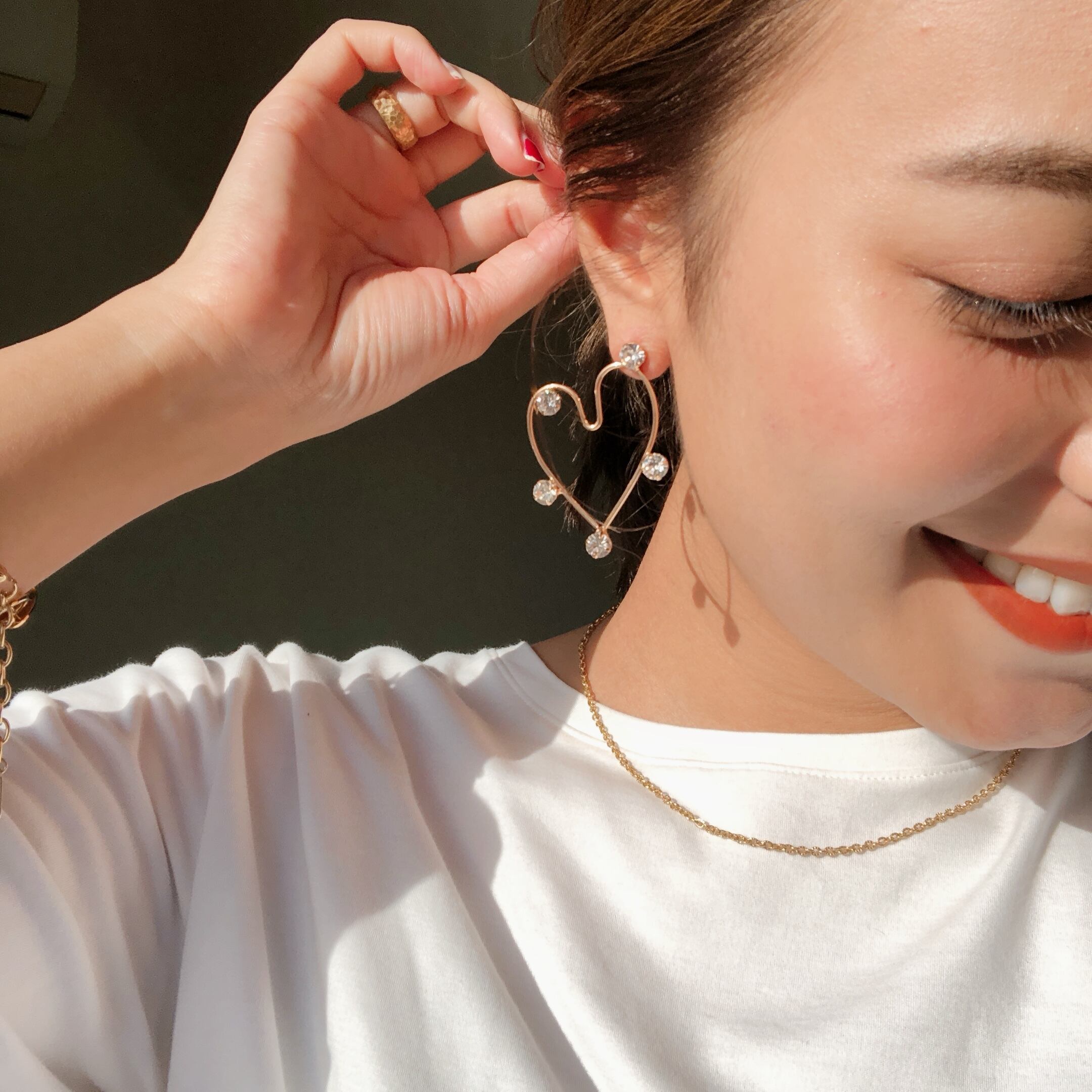 左右対象のハートに可愛いくジルコニアがついた洗練されたアイテムに
