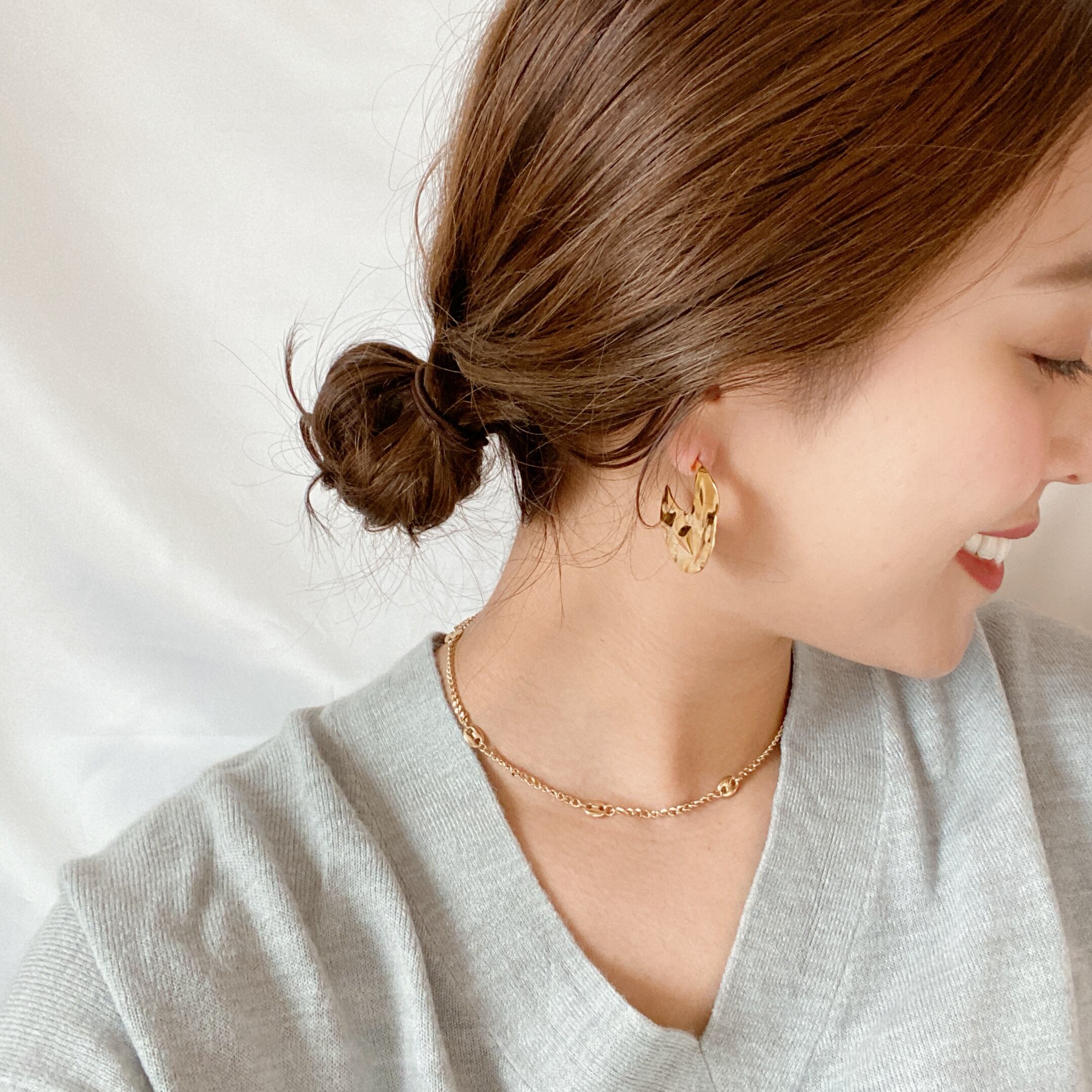 お月様のような形にでこぼことした感じのディテールのお洒落可愛いピアスです