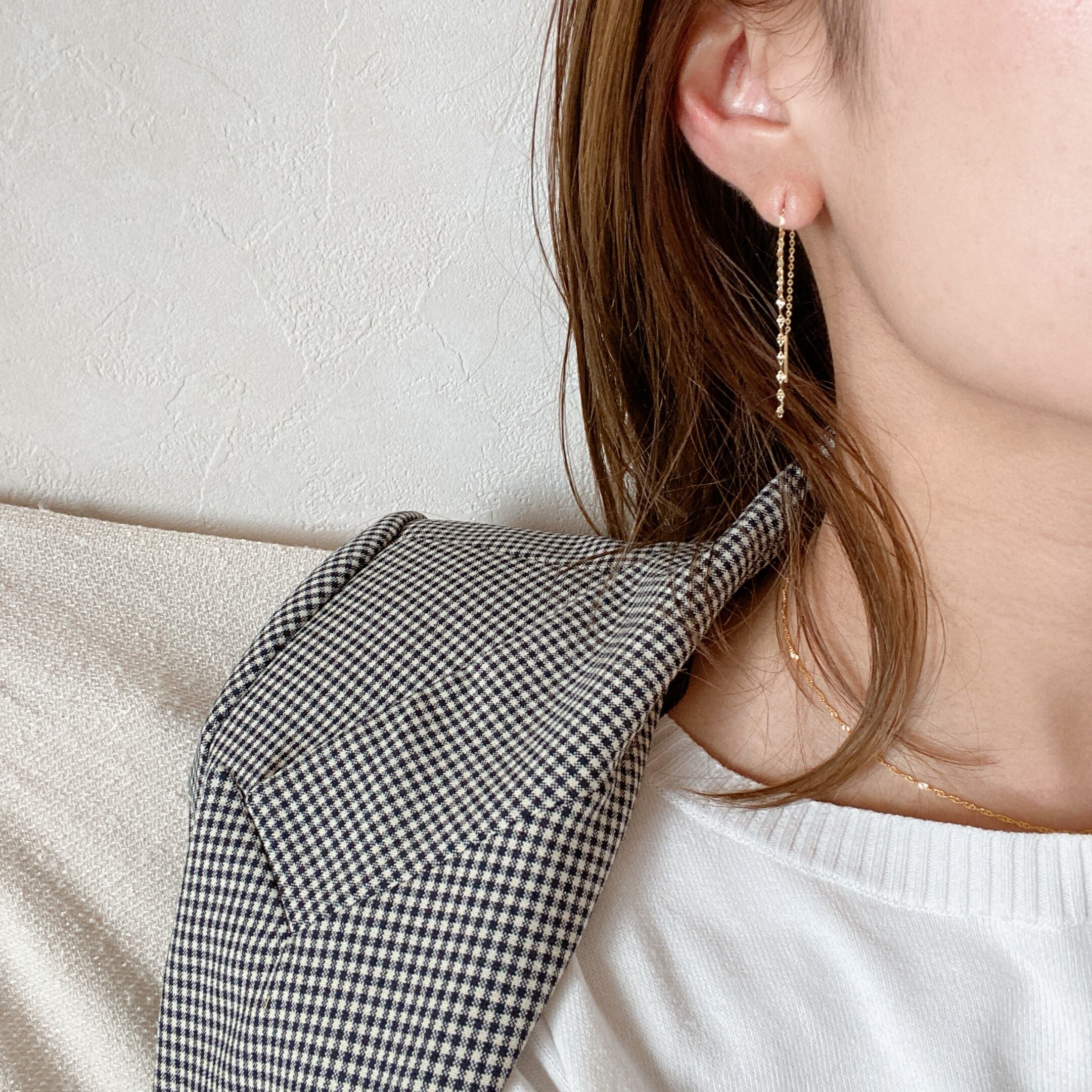 華奢で光に当たるとキラキラと綺麗なチェーンのピアスです