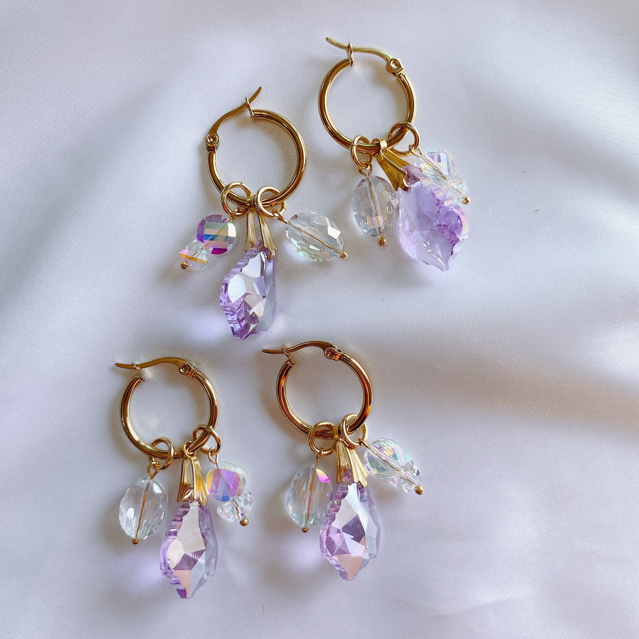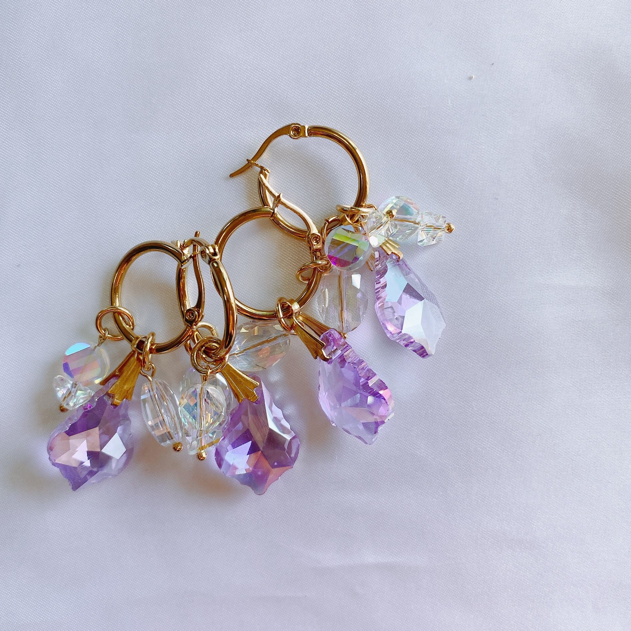 stainless製のフープ にクリスタルガラスのチャームをジャラジャラにお付けした