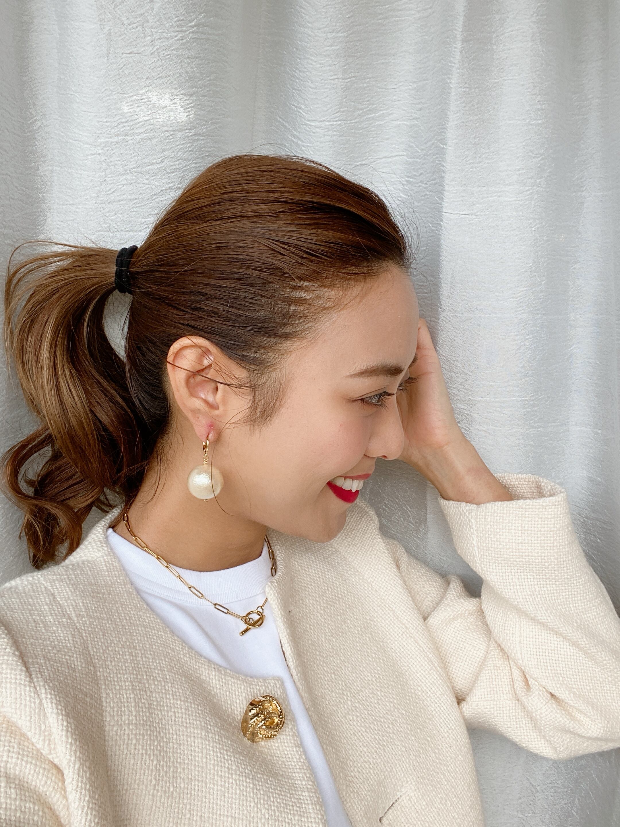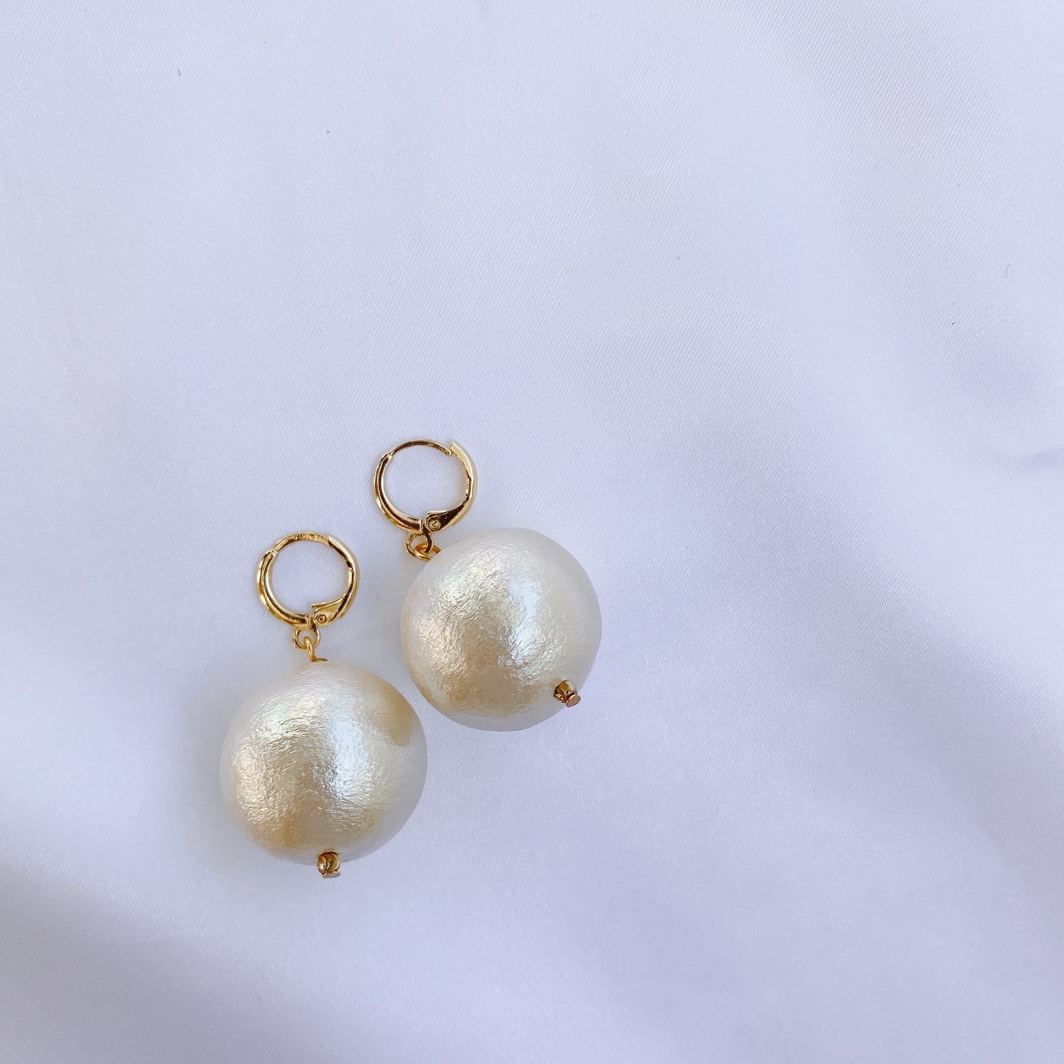少し大きめのコットンパールの一粒ピアス