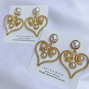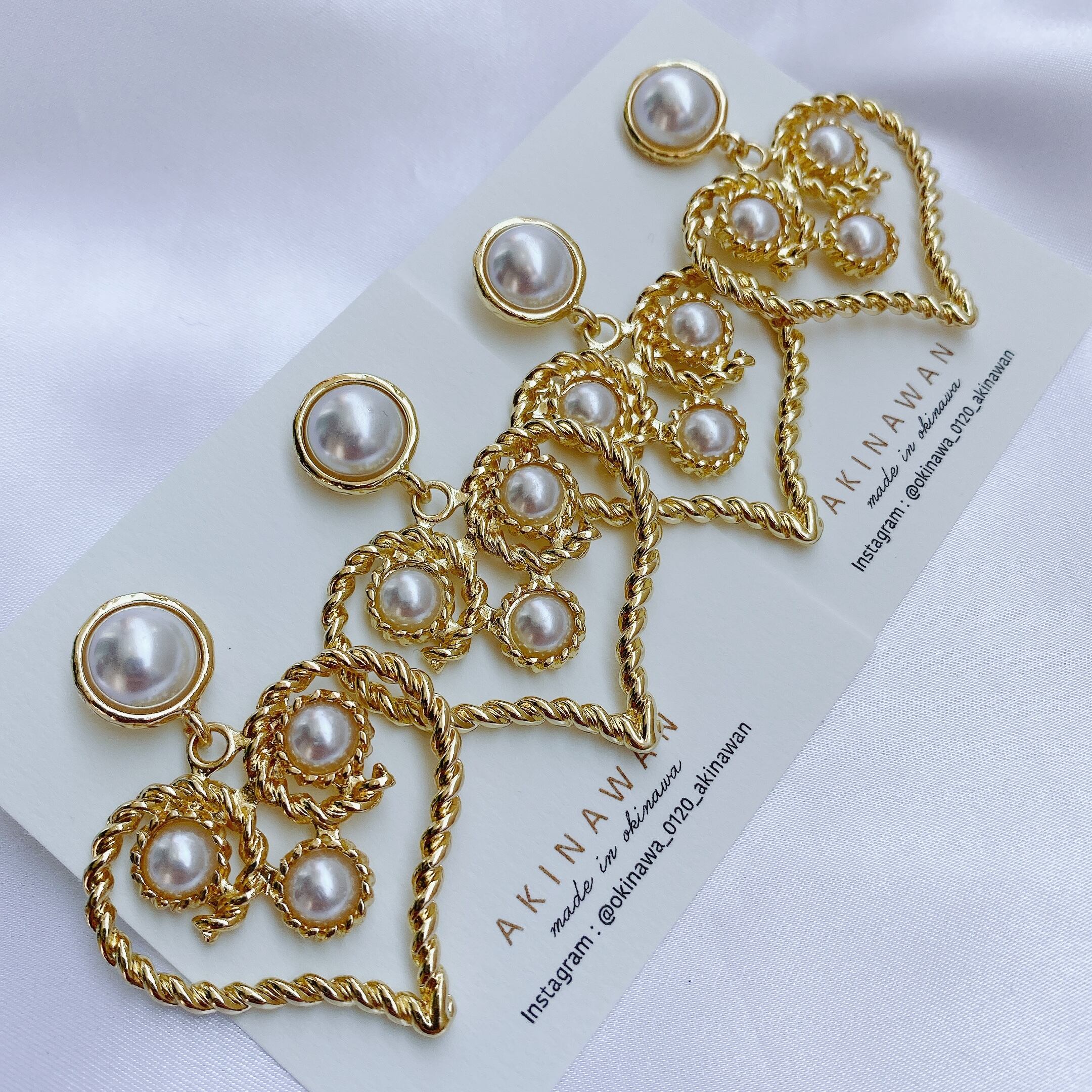ハートにパールと女子が大好きなものがひとつになったピアス♡
