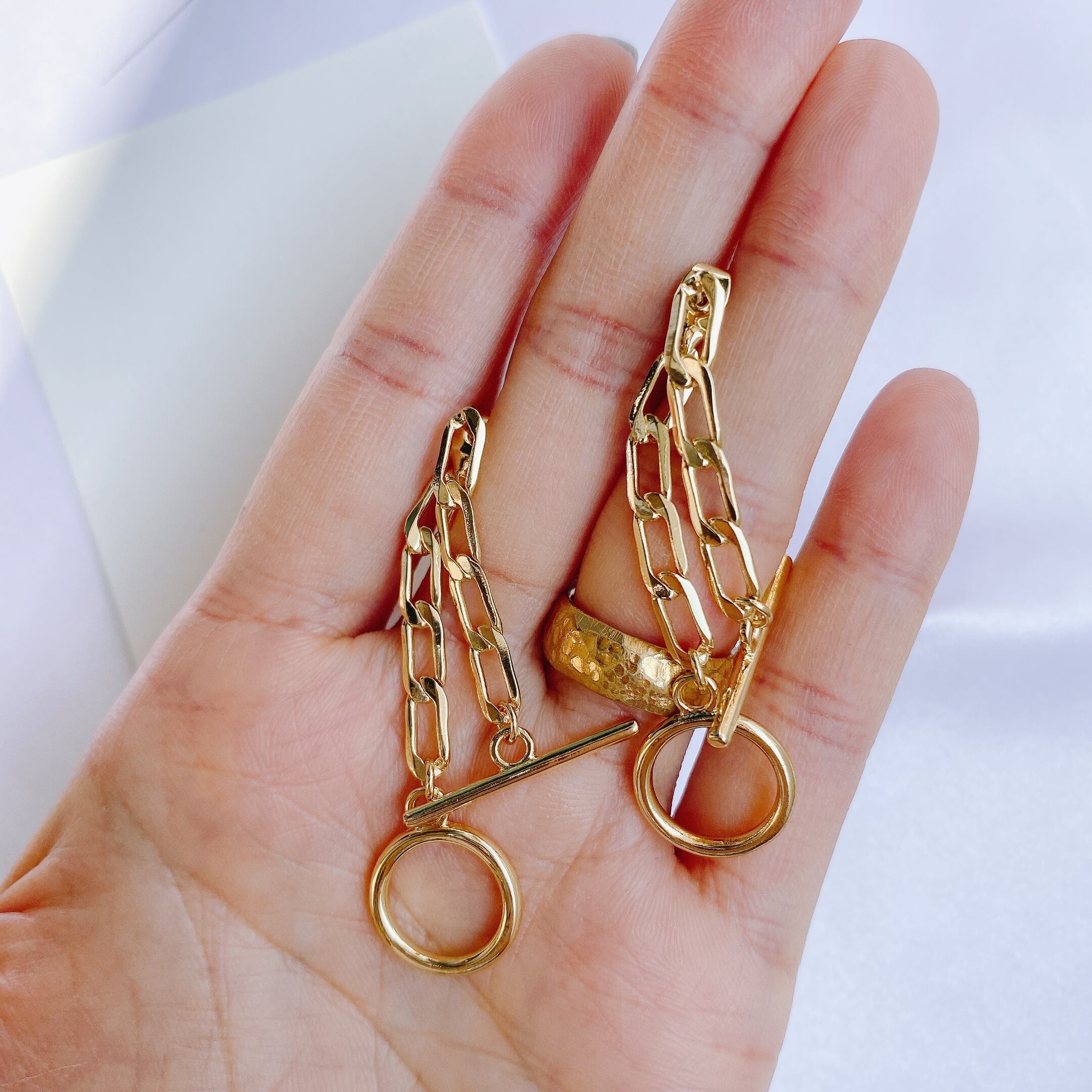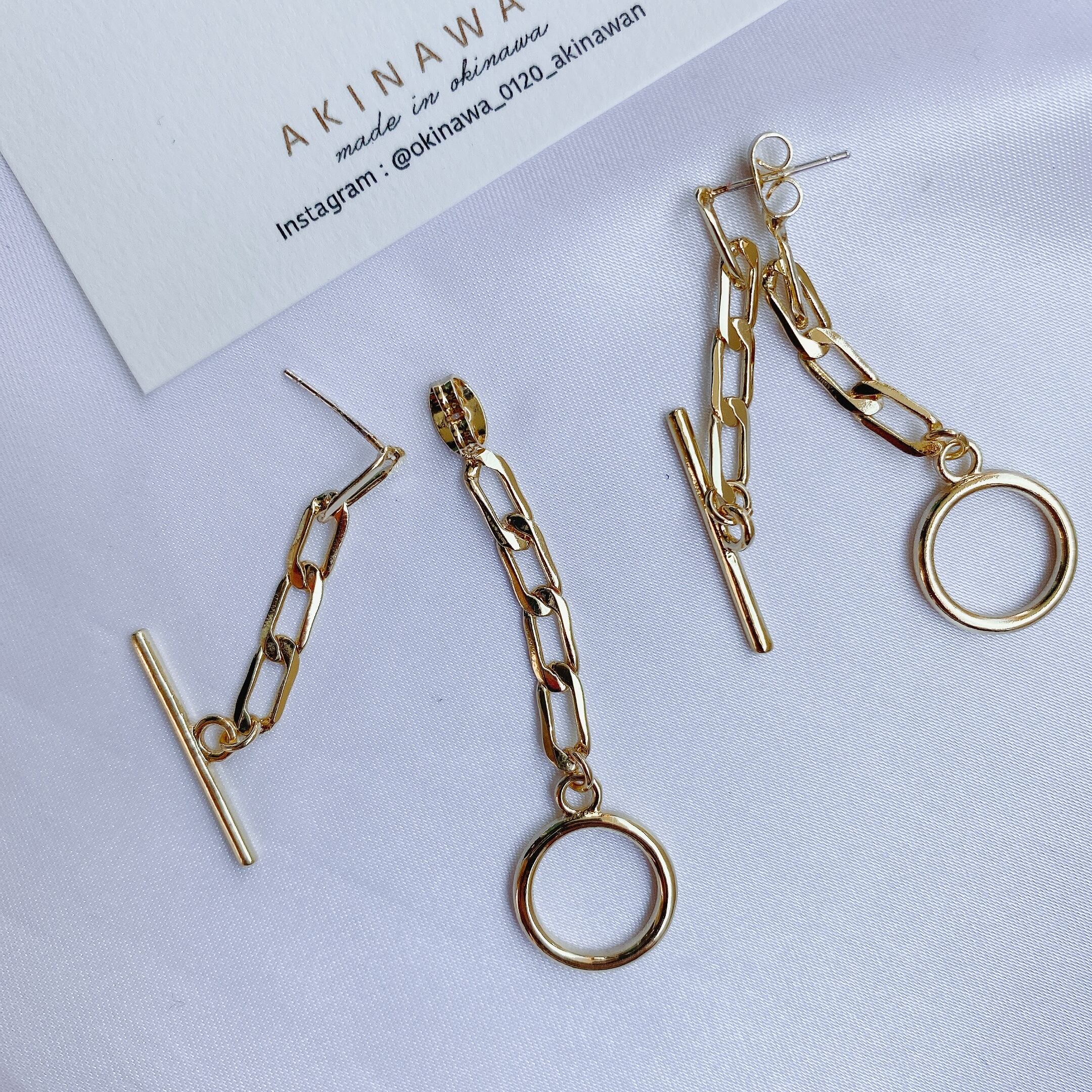 キャッチ部分と耳につく部分にチェーンが分かれて付いてる珍しいデザイン!!