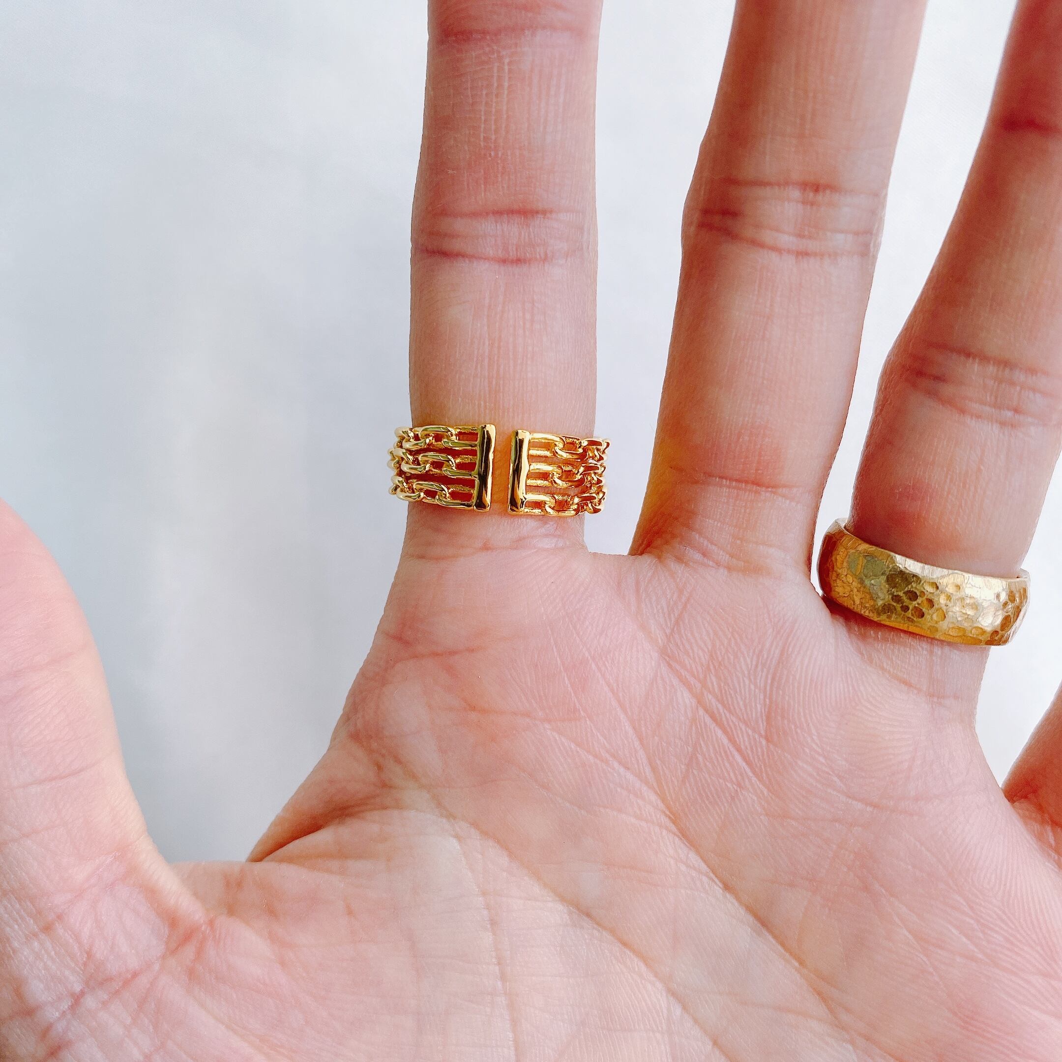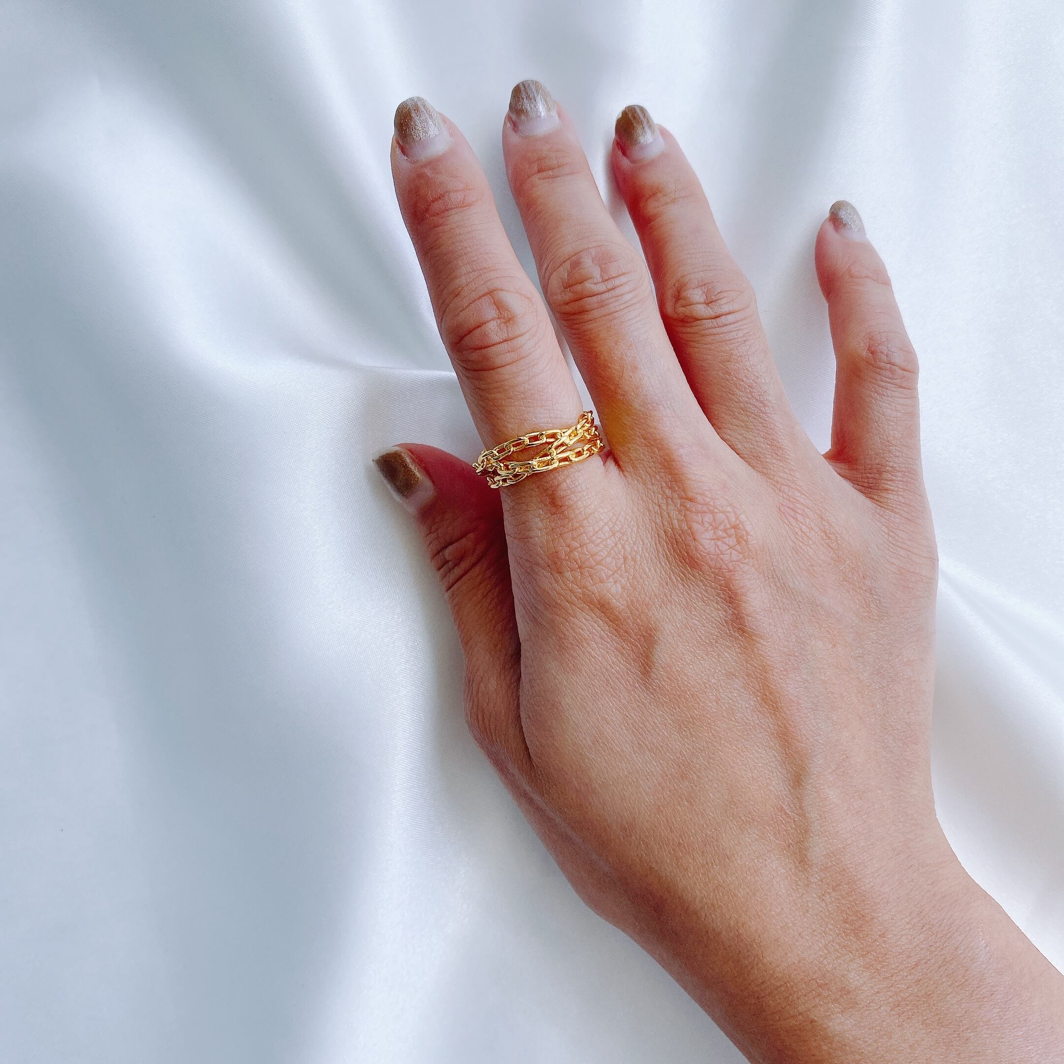 華奢なチェーンモチーフのデザインがトリプル並んだこなれ感あるアイテム!