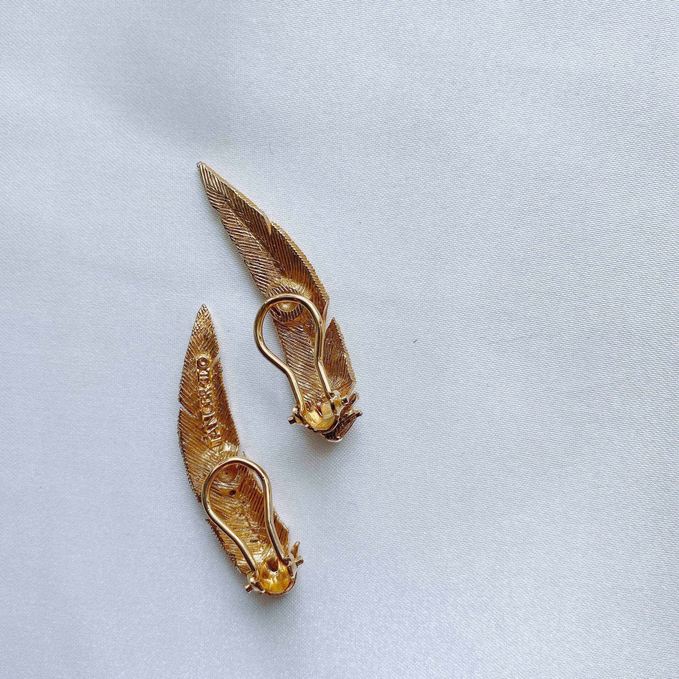 しなやかで綺麗なフェザーデザインのヴィンテージ イヤリング