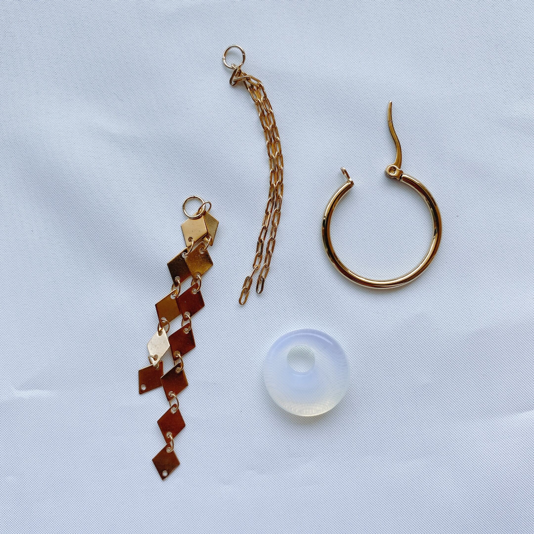 シンプルにフープのみとかチェーンだけとか好きなように組み合わせてお使い下さい!!