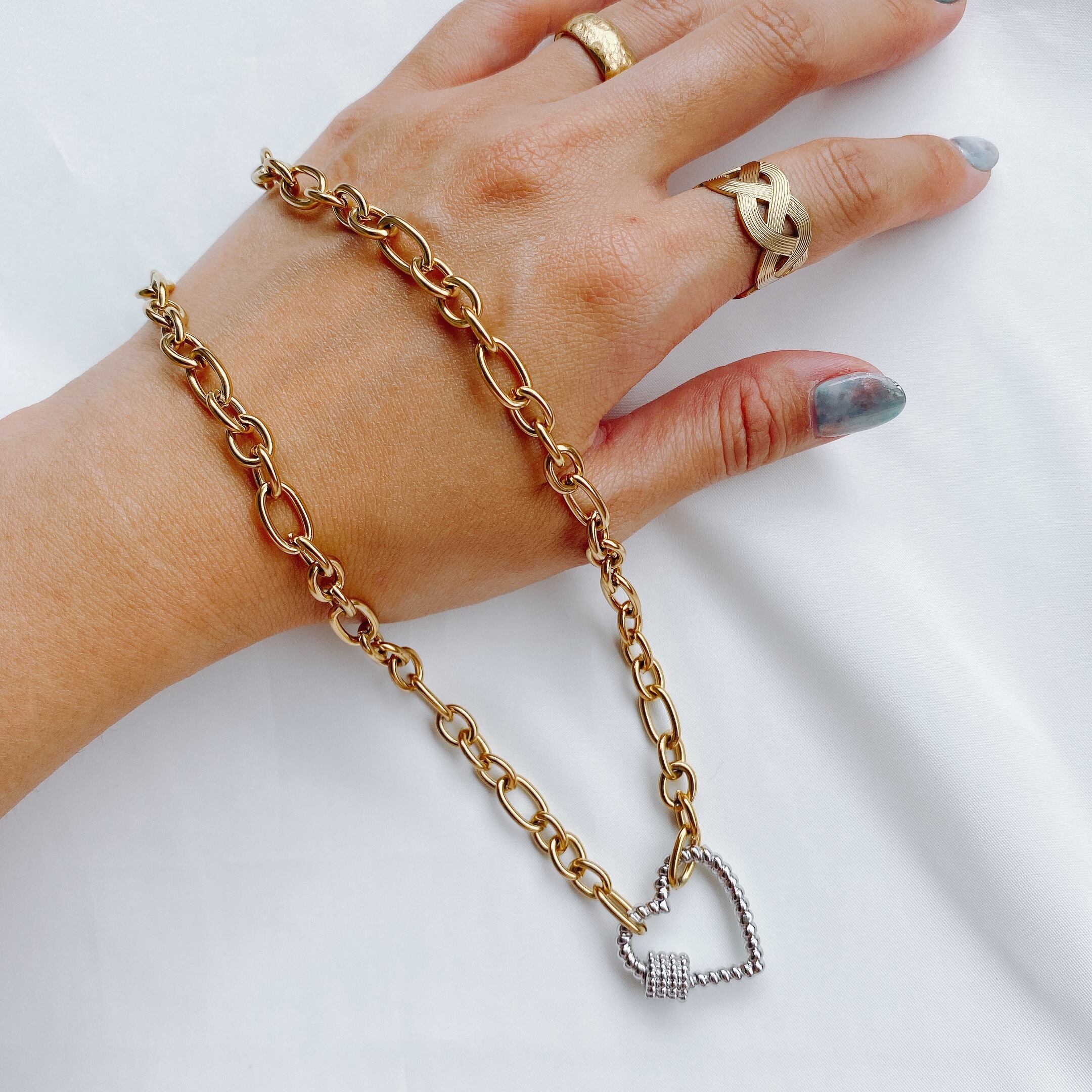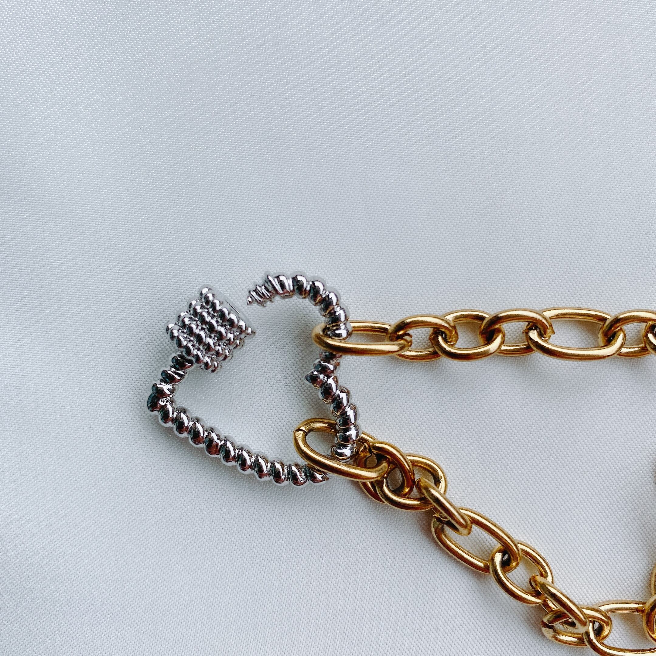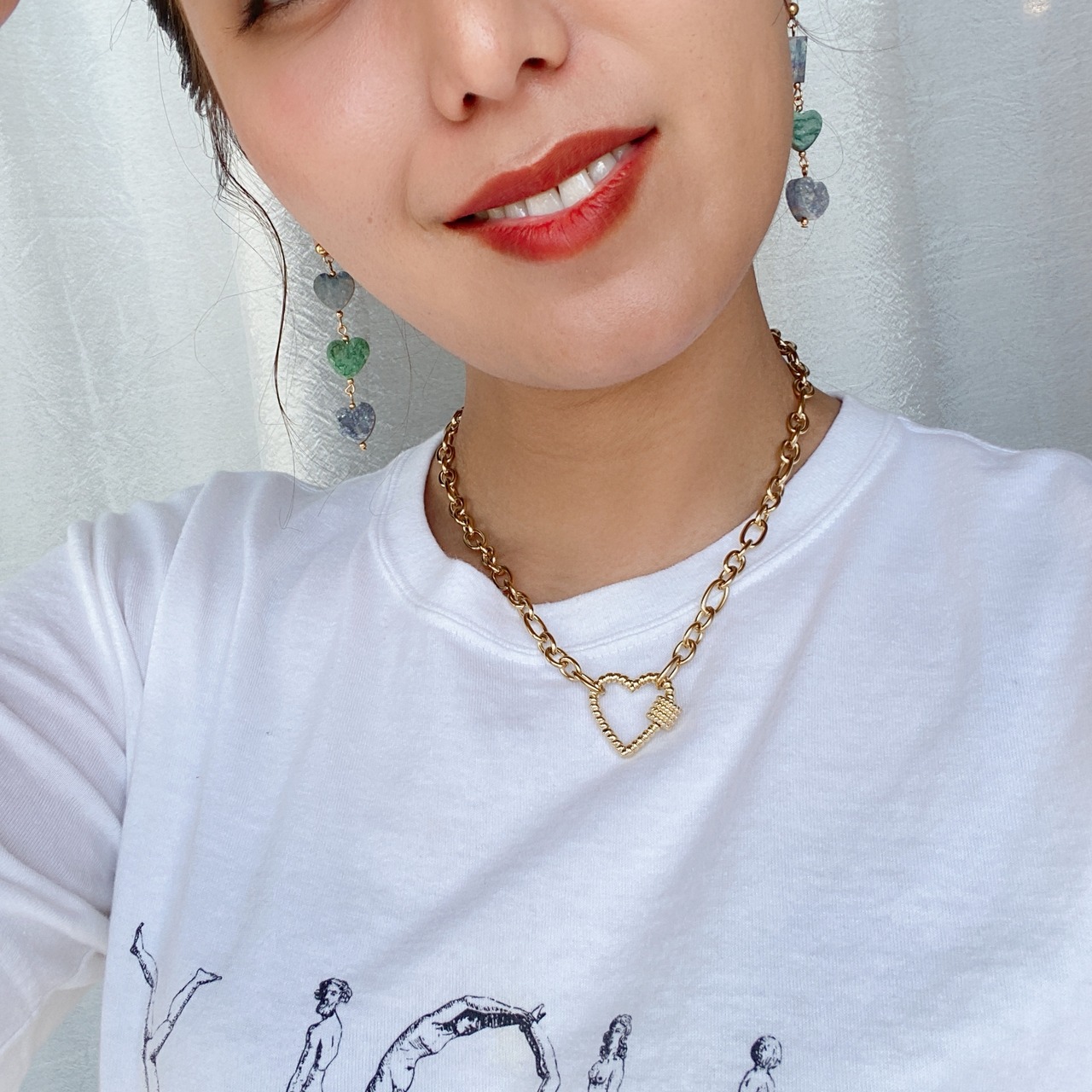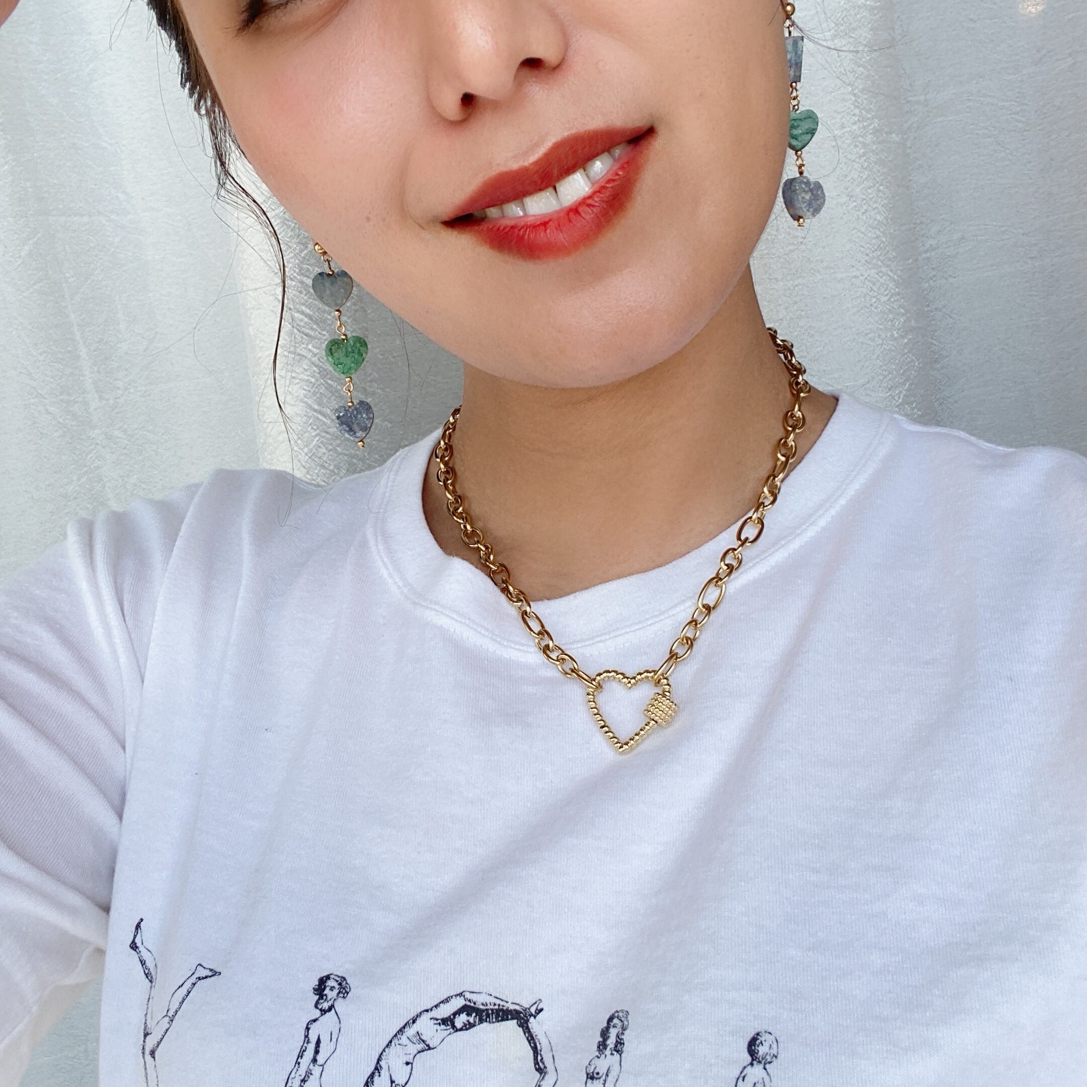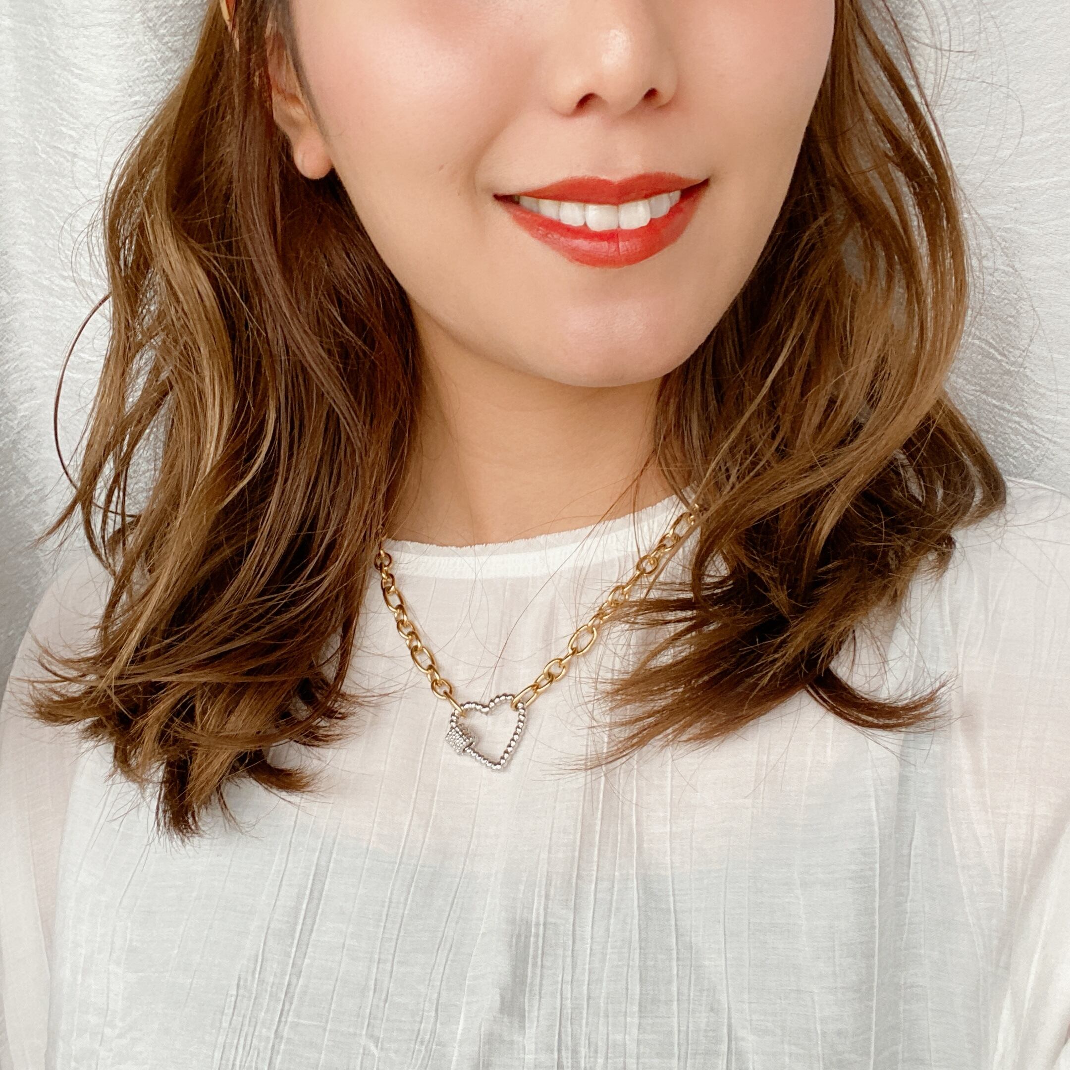 ハートチャームのネジをクルクルと回してチェーンを取り外しするネックレスになってます。