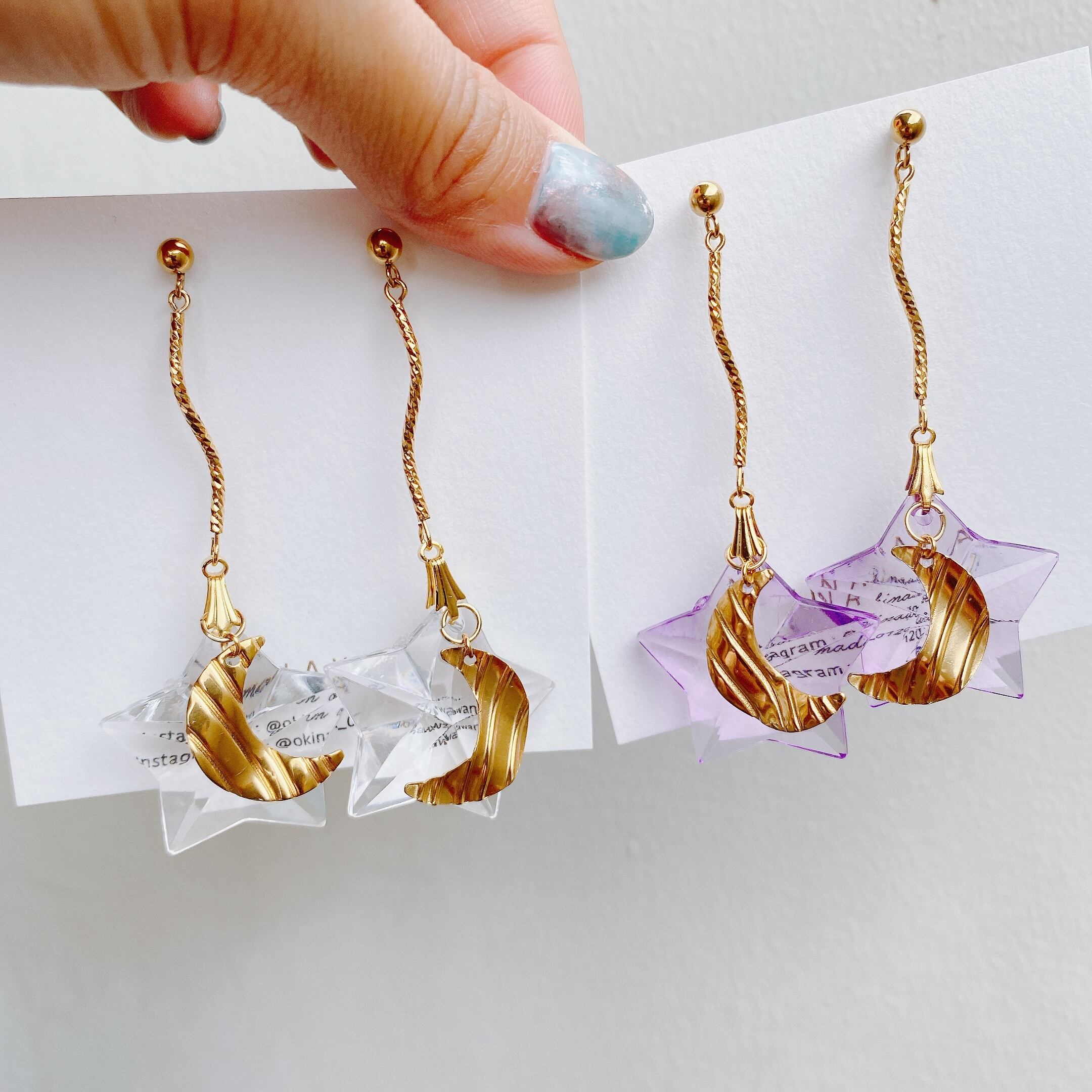 クリアの星とstainlessのお月様のチャームを一緒につけてメリハリを付けてみました!!