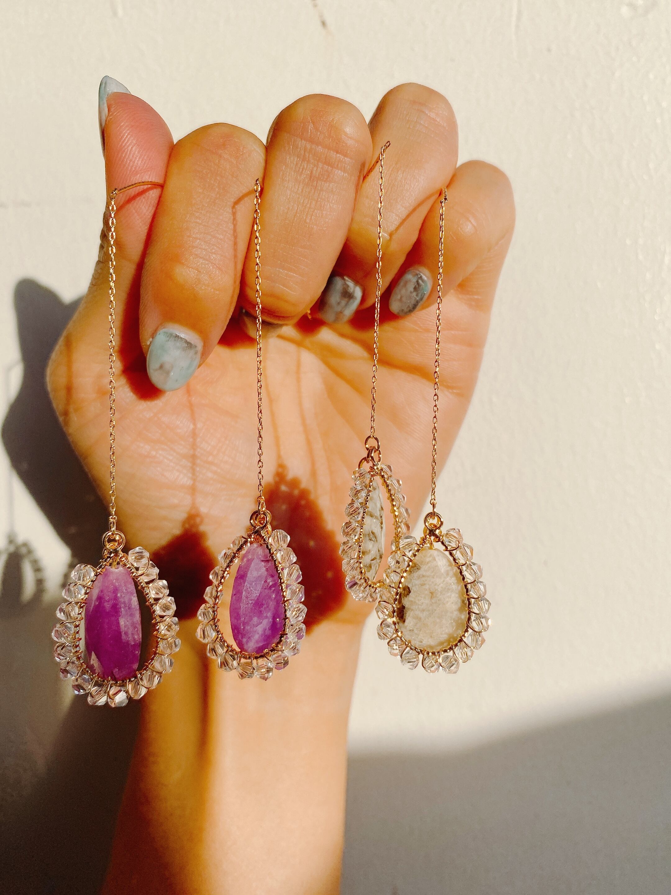 天然石とクリアビーズのパーツを重ねた大人かわいくデザインしました