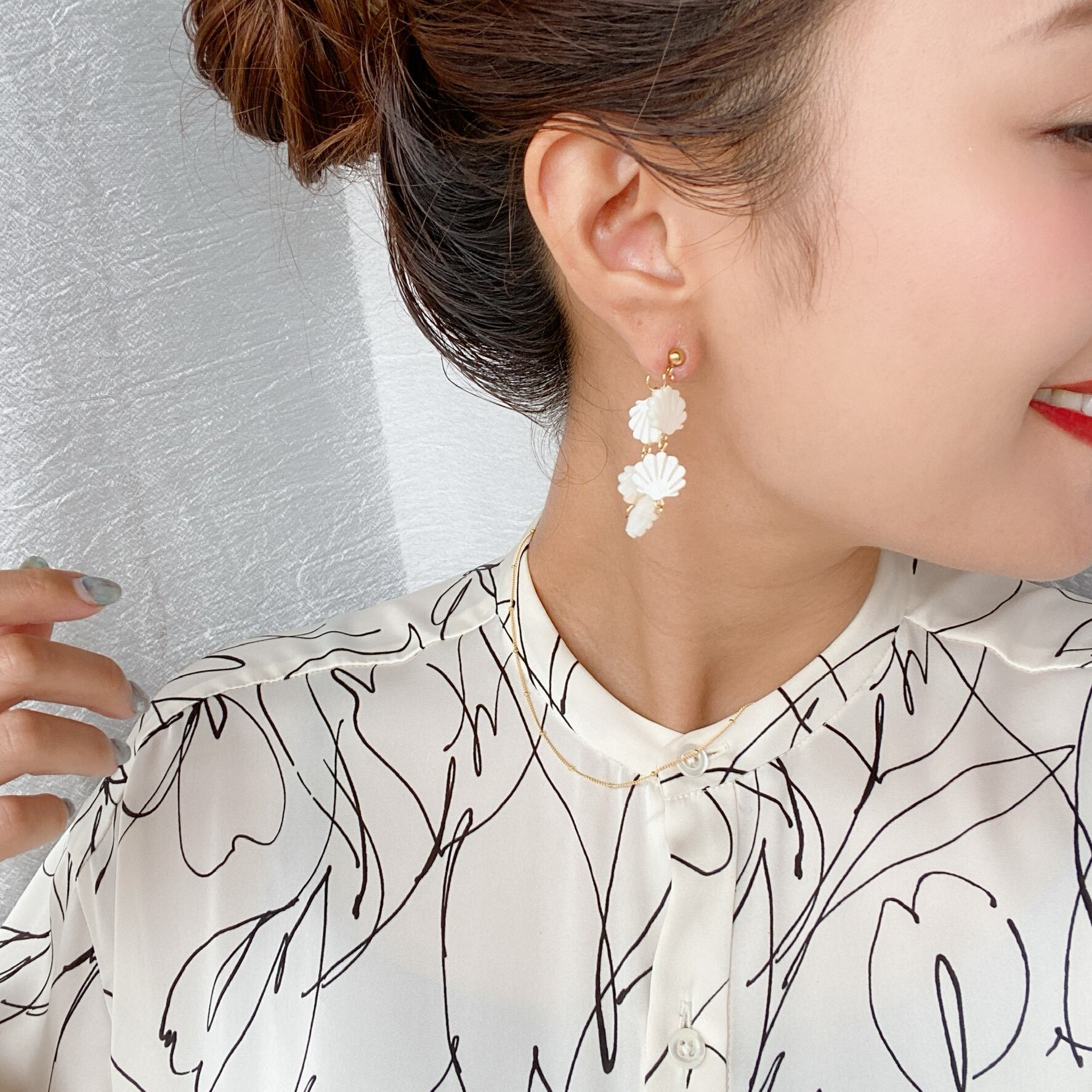 チェーンがゆらゆらと動きがあって顔周りを明るく彩りをプラスしてくれますよ♡