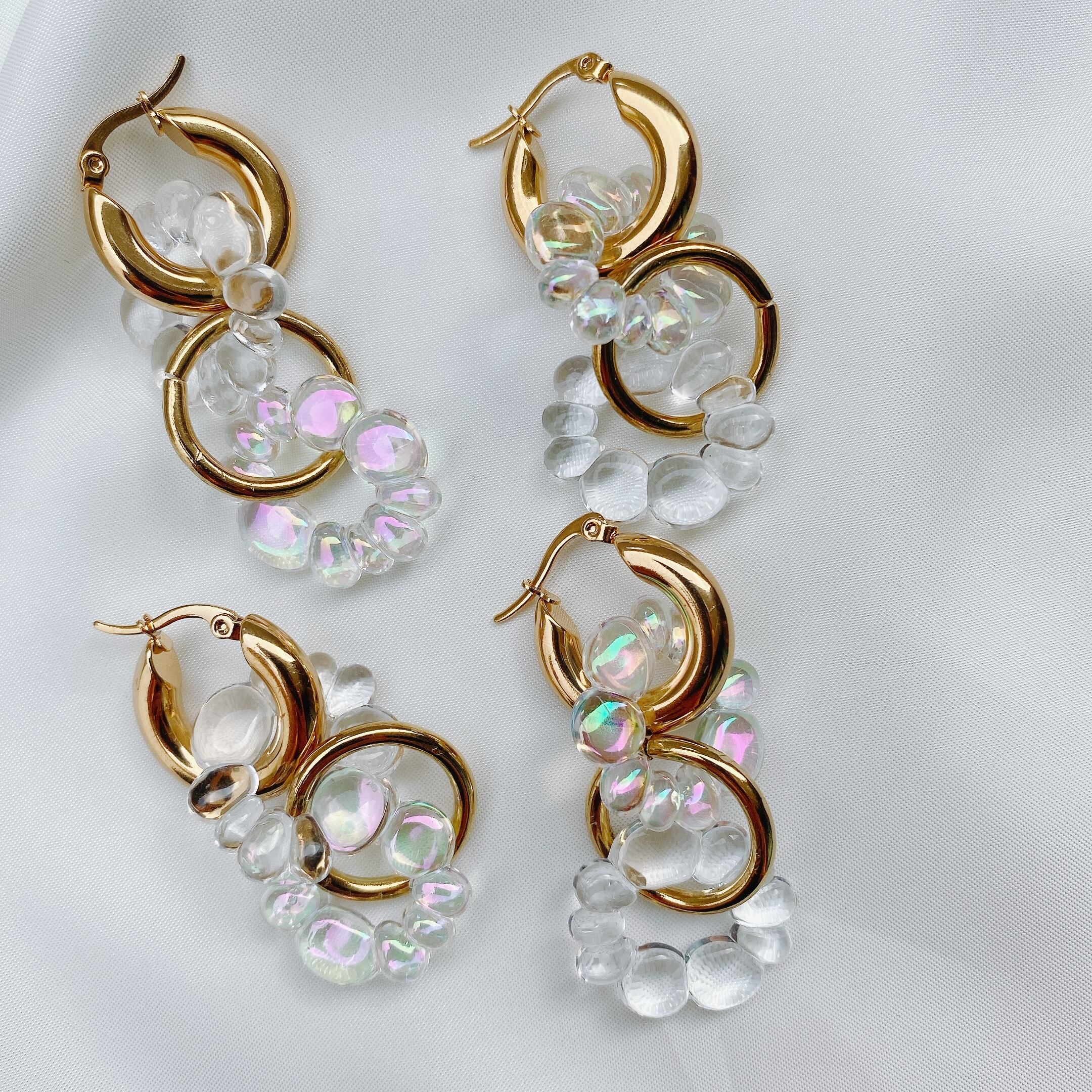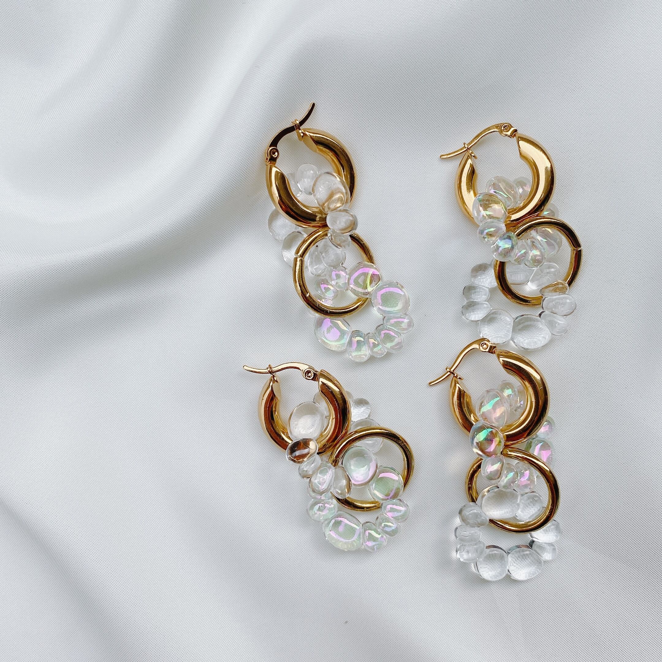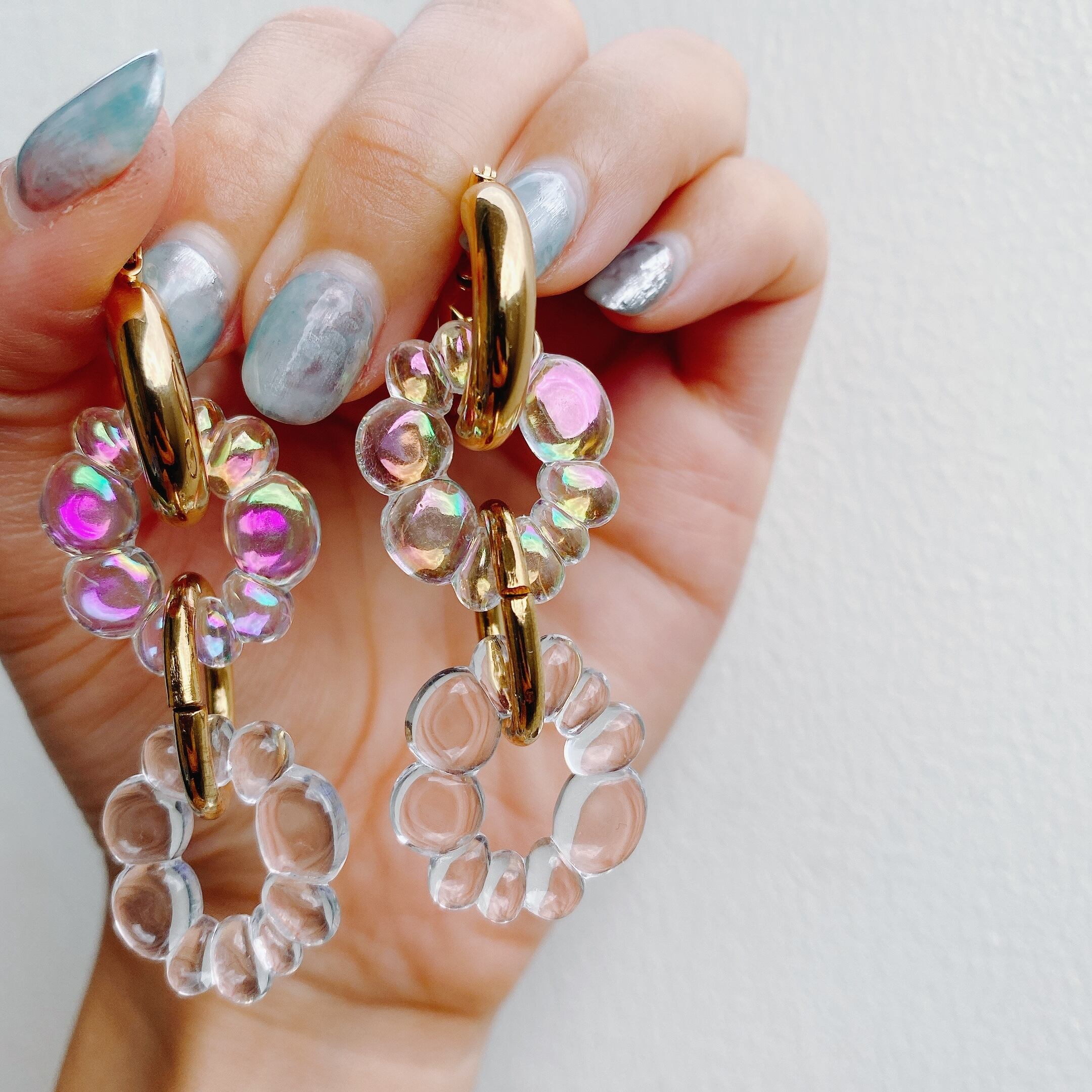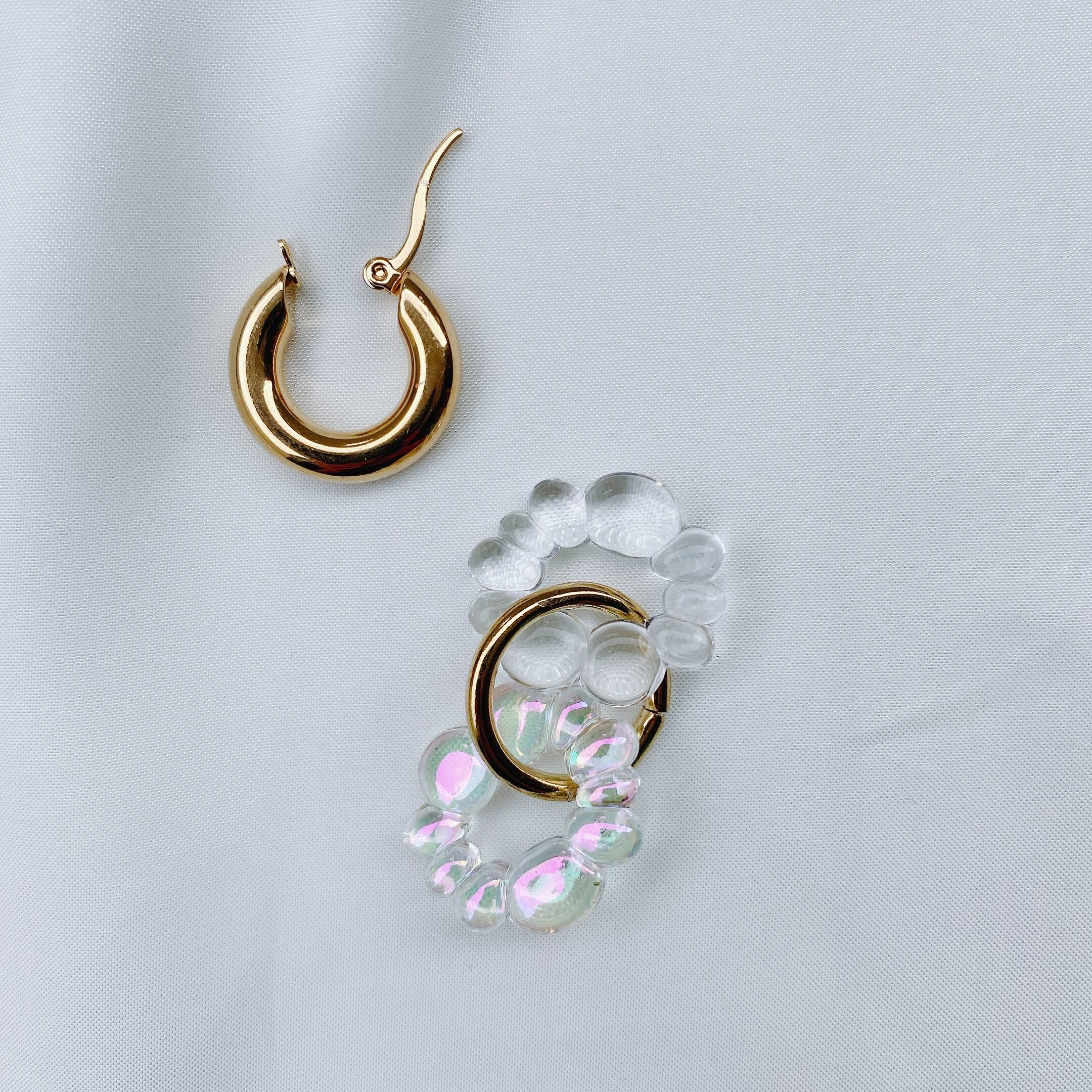 光の当たり具合でキラキラ光ってくれるので顔周りを明るくしてくれるピアスです!!