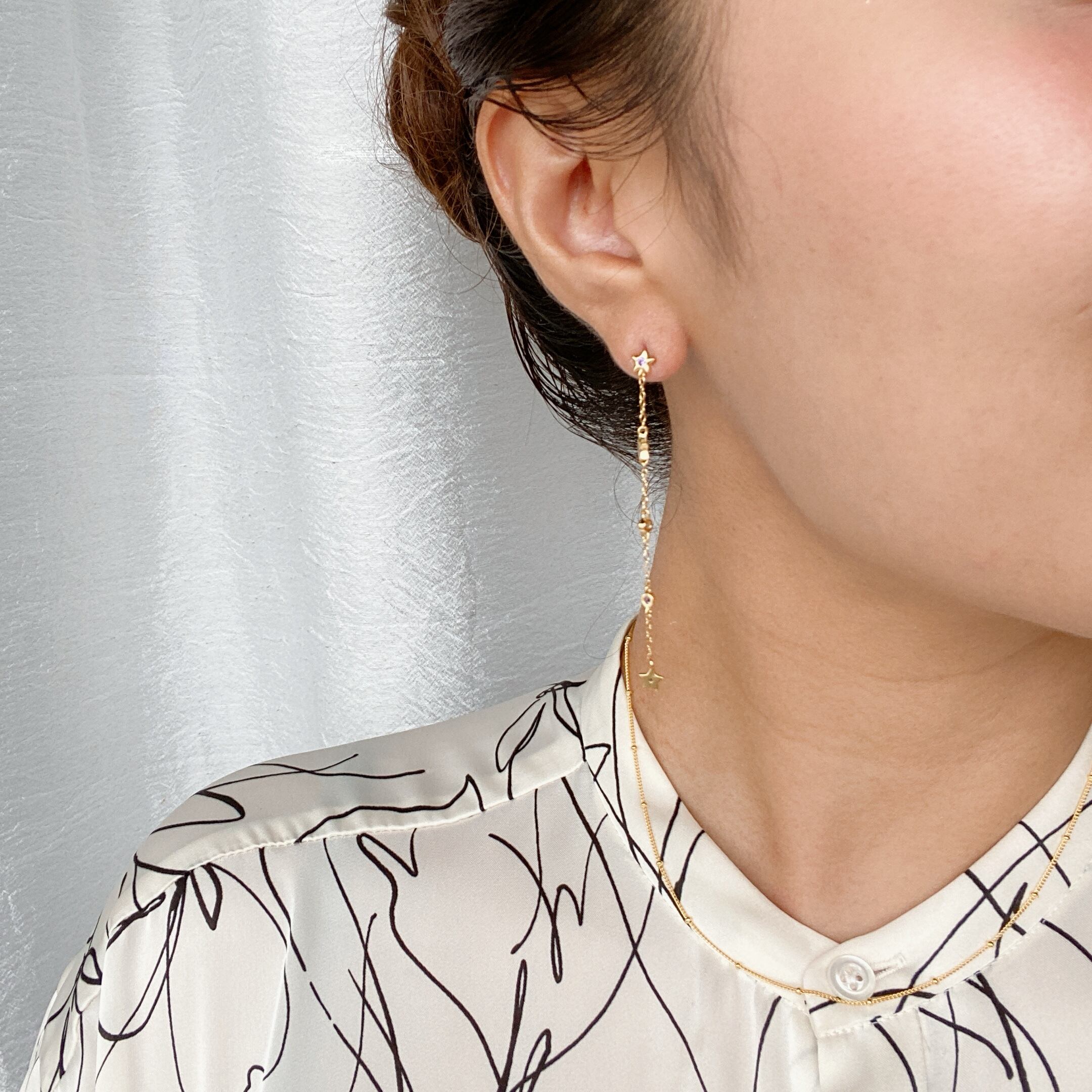 長めですが華奢なチェーンの為シンプルにお付け頂けます