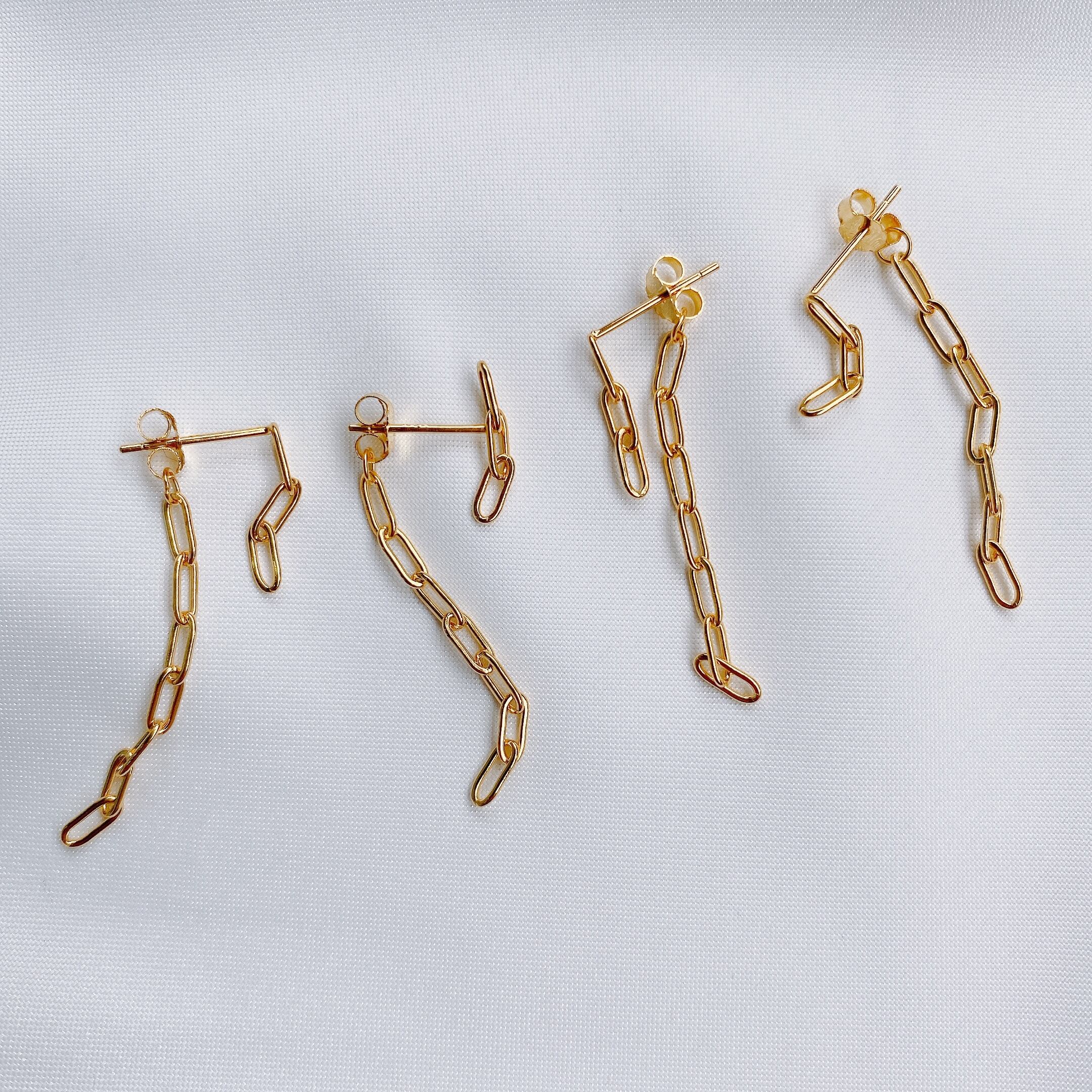 キャッチにもデザインチェーンがついたどの角度から見ても可愛いピアスです!