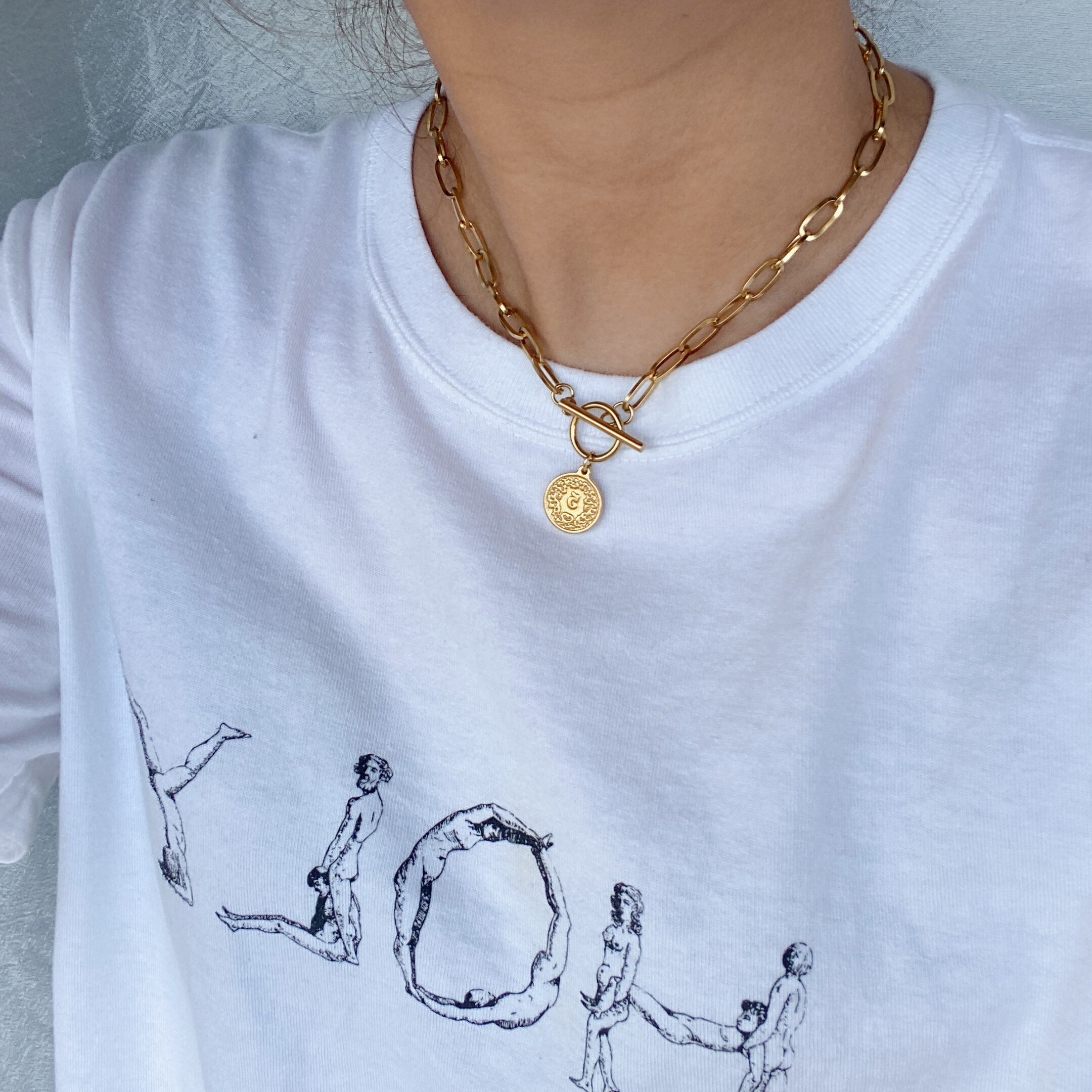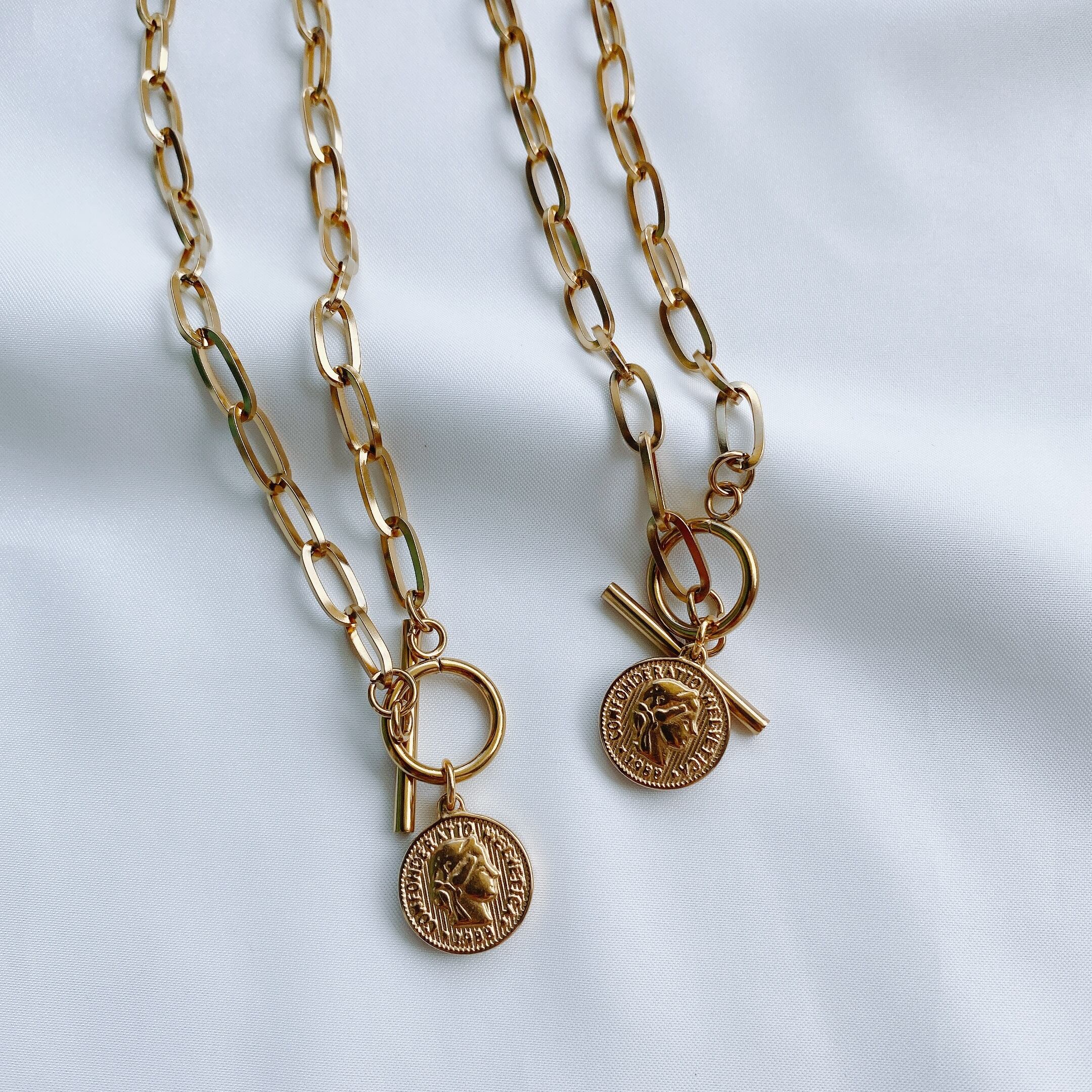 再販stainless coin charm chunky necklace