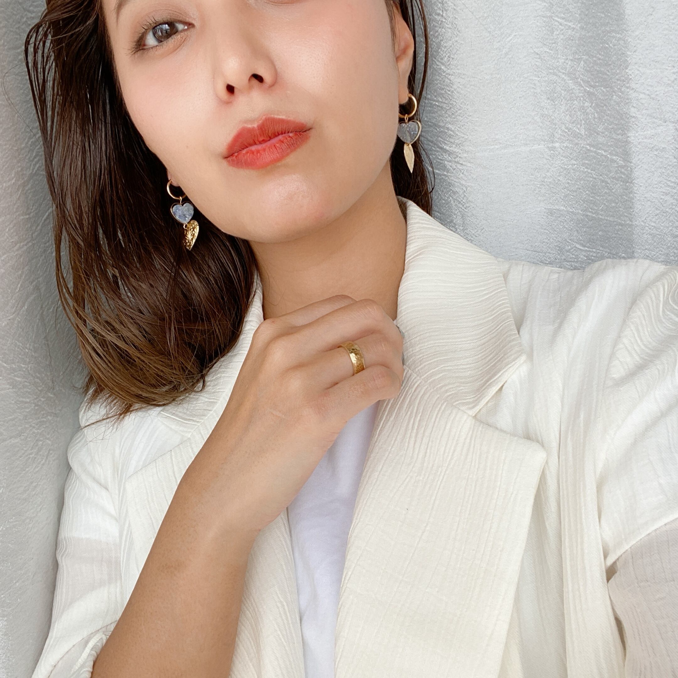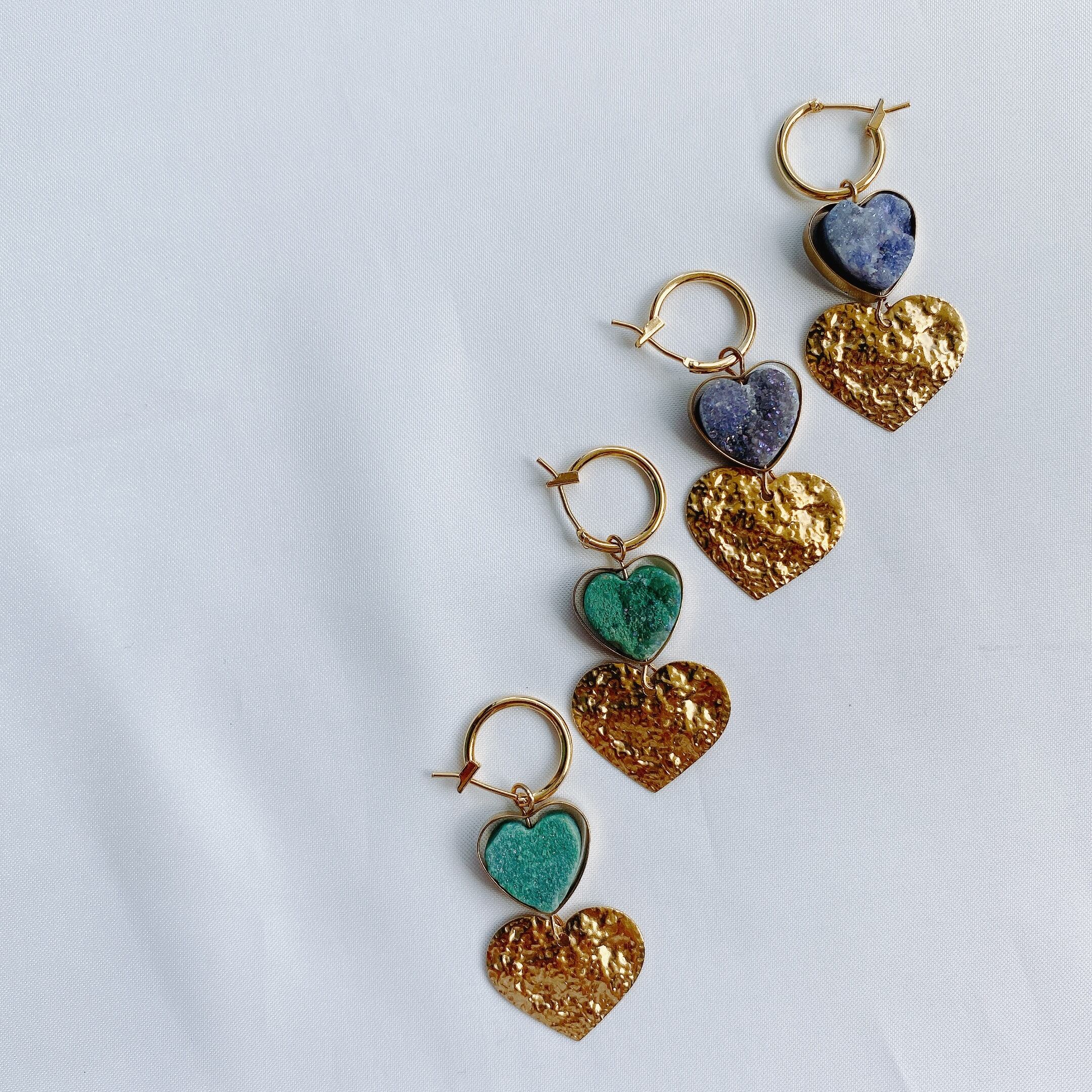 ナチュラルな天然のハート形ドゥルージーにはゴールドを入れてメリハリを出しました