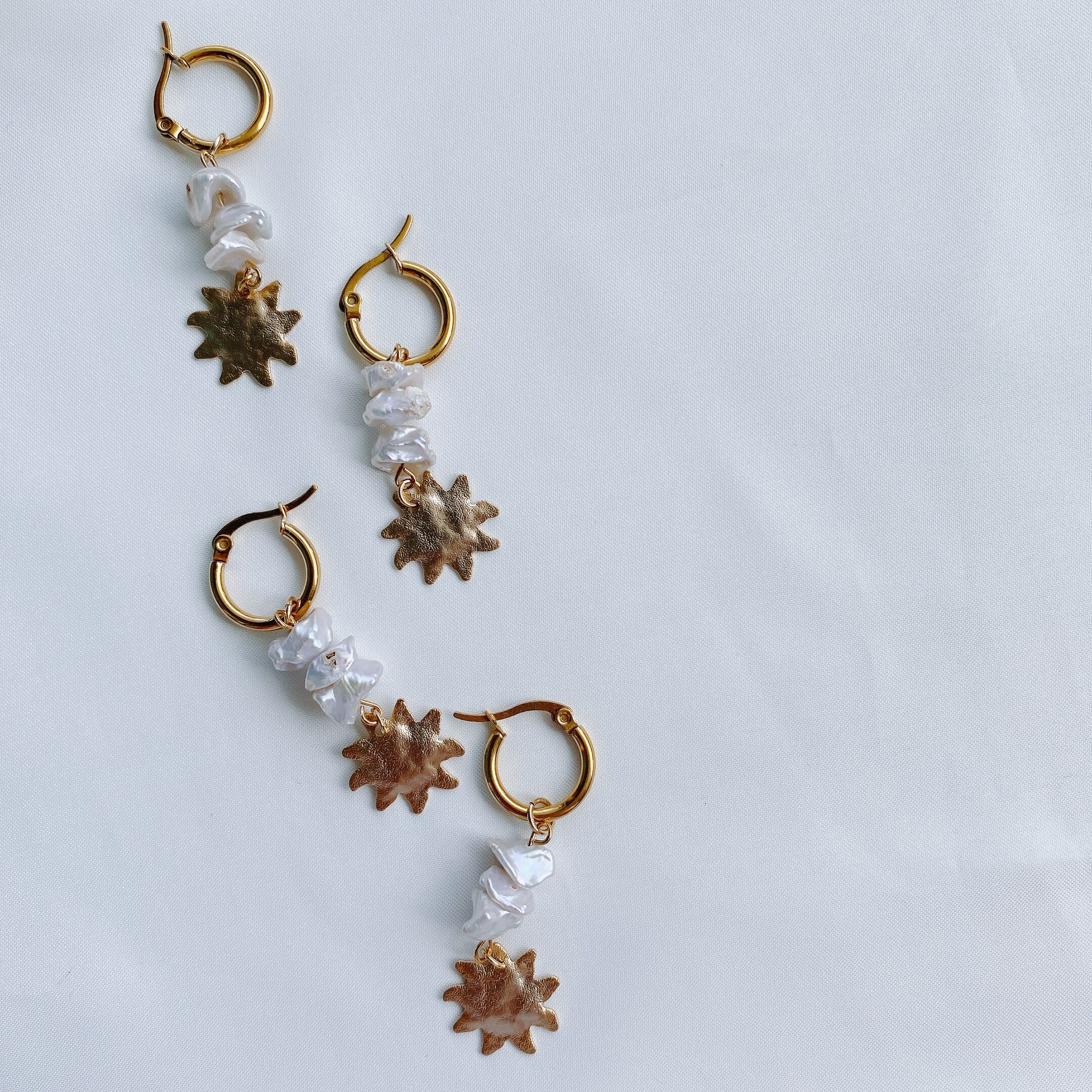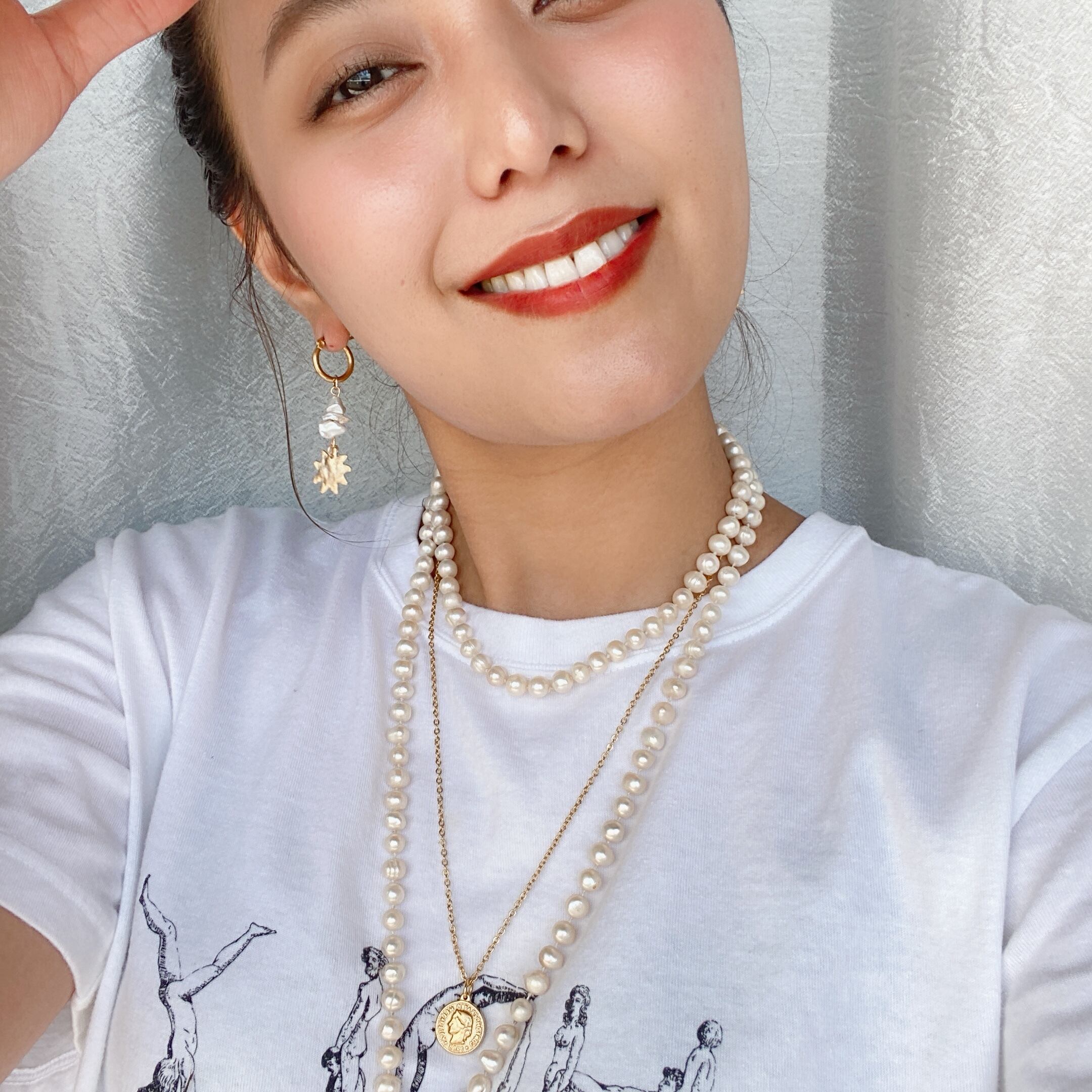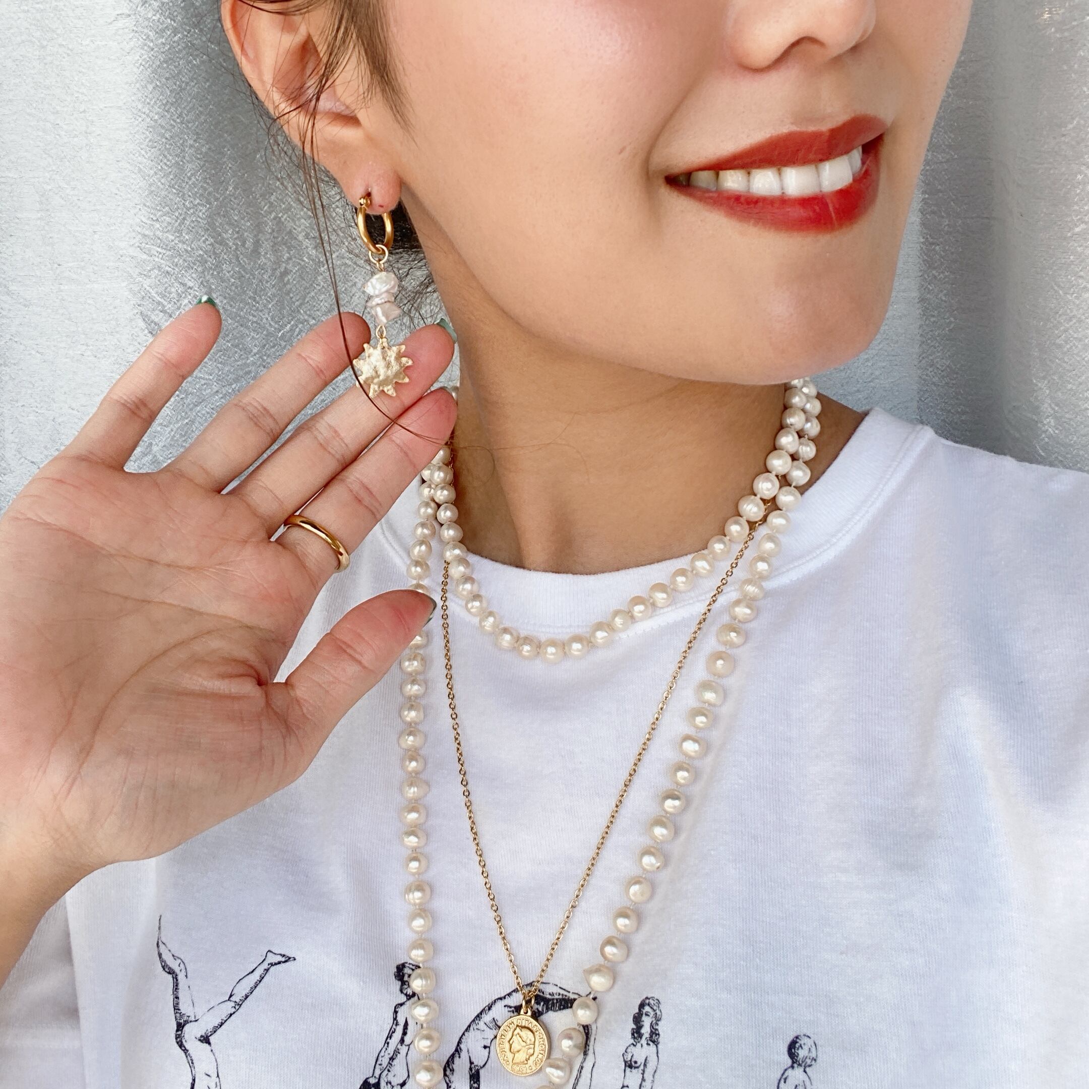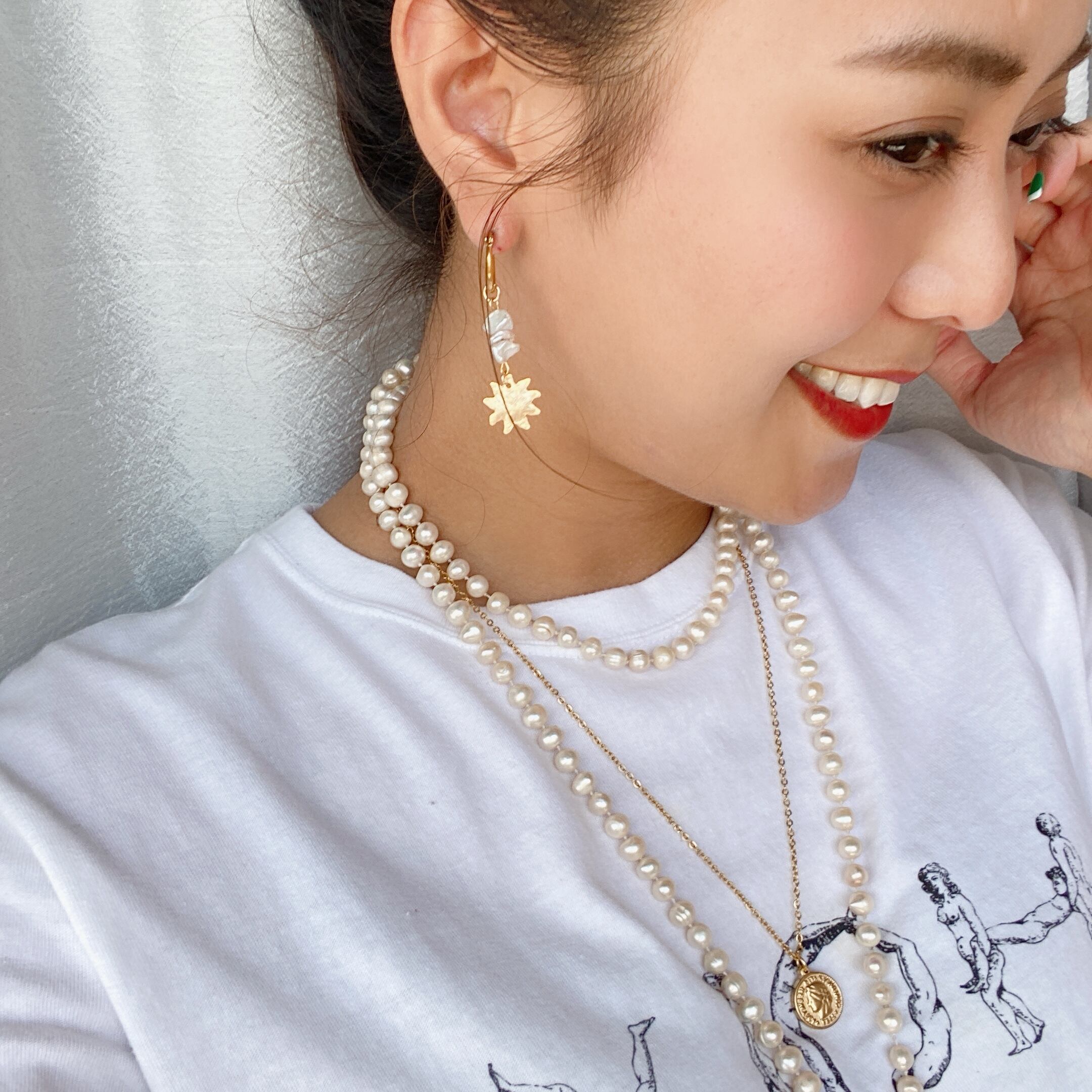 うっすらピンクかがった淡水パールはゴールドとの相性最強です