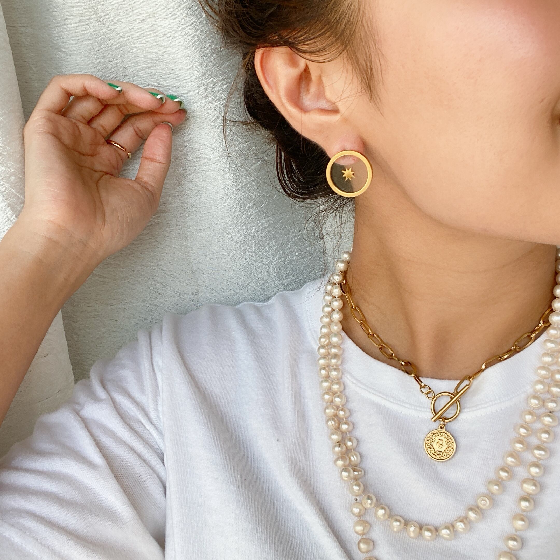 大人可愛いデザインのラウンドピアス