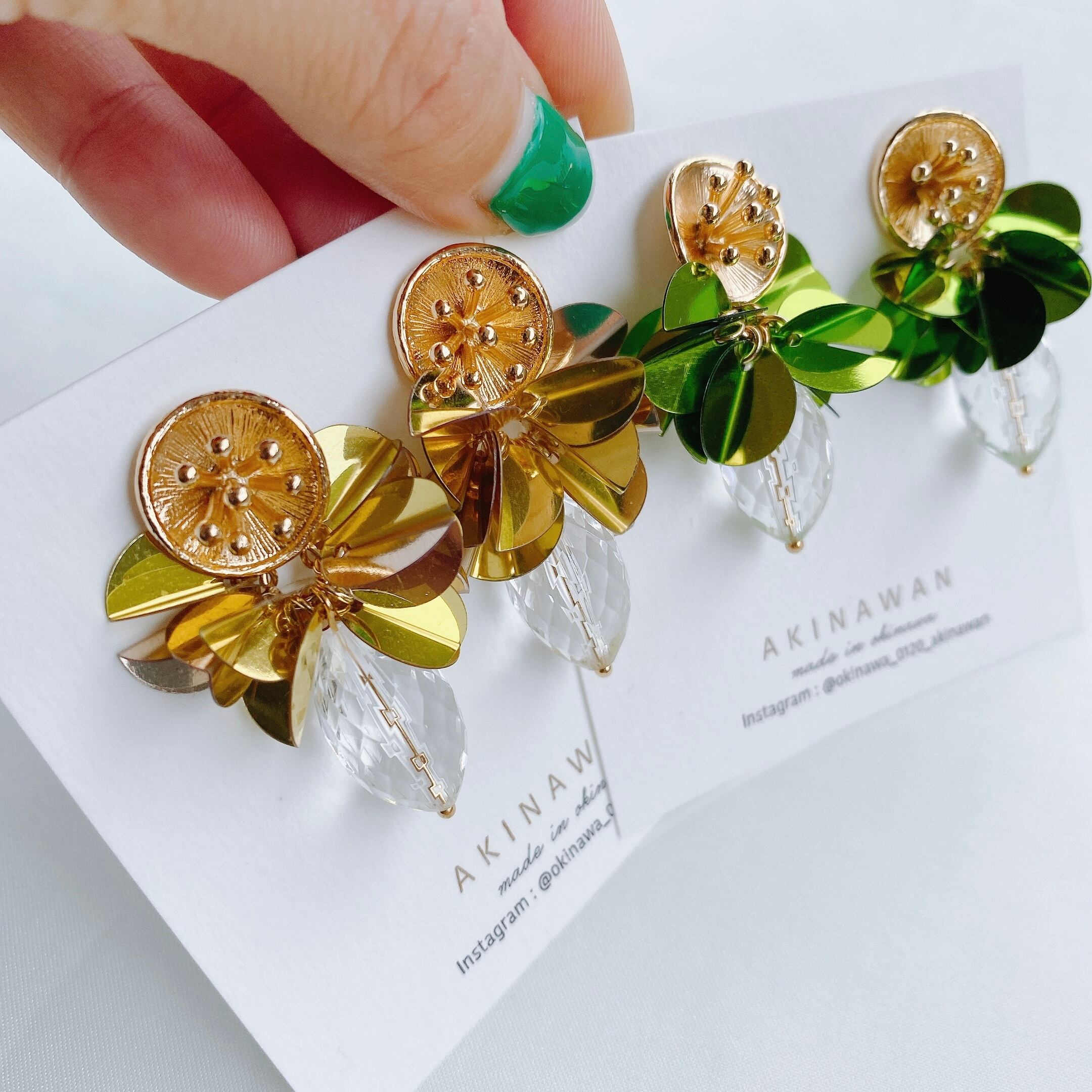 ひらひら可愛いスパンコールのカラーはグリーンとブラウンゴールドの2種類ご用意致しました!
