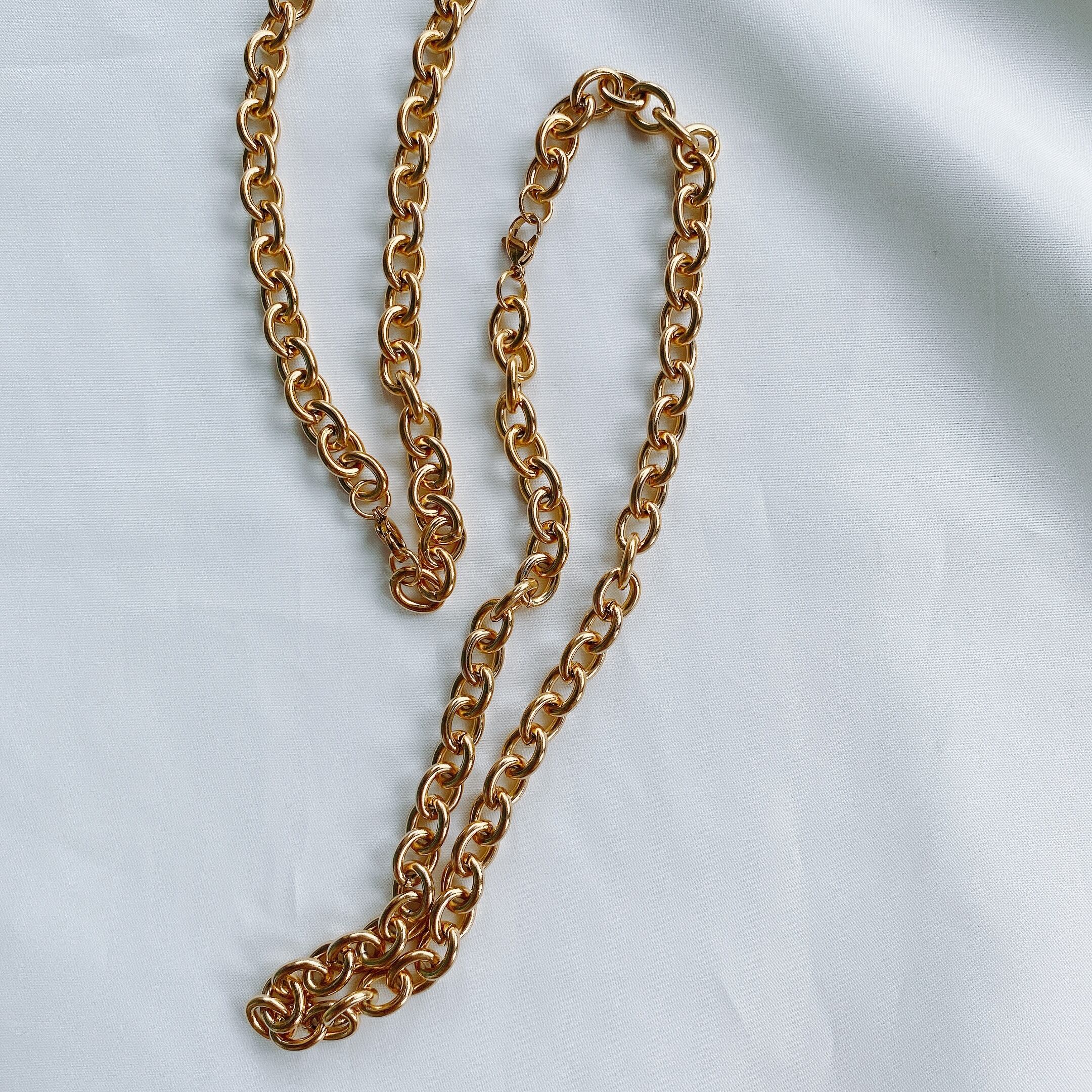 シンプルですがボリュームある太めのチェーンが大人綺麗目にコーディネートをまとめてくれる垢抜けアイテム