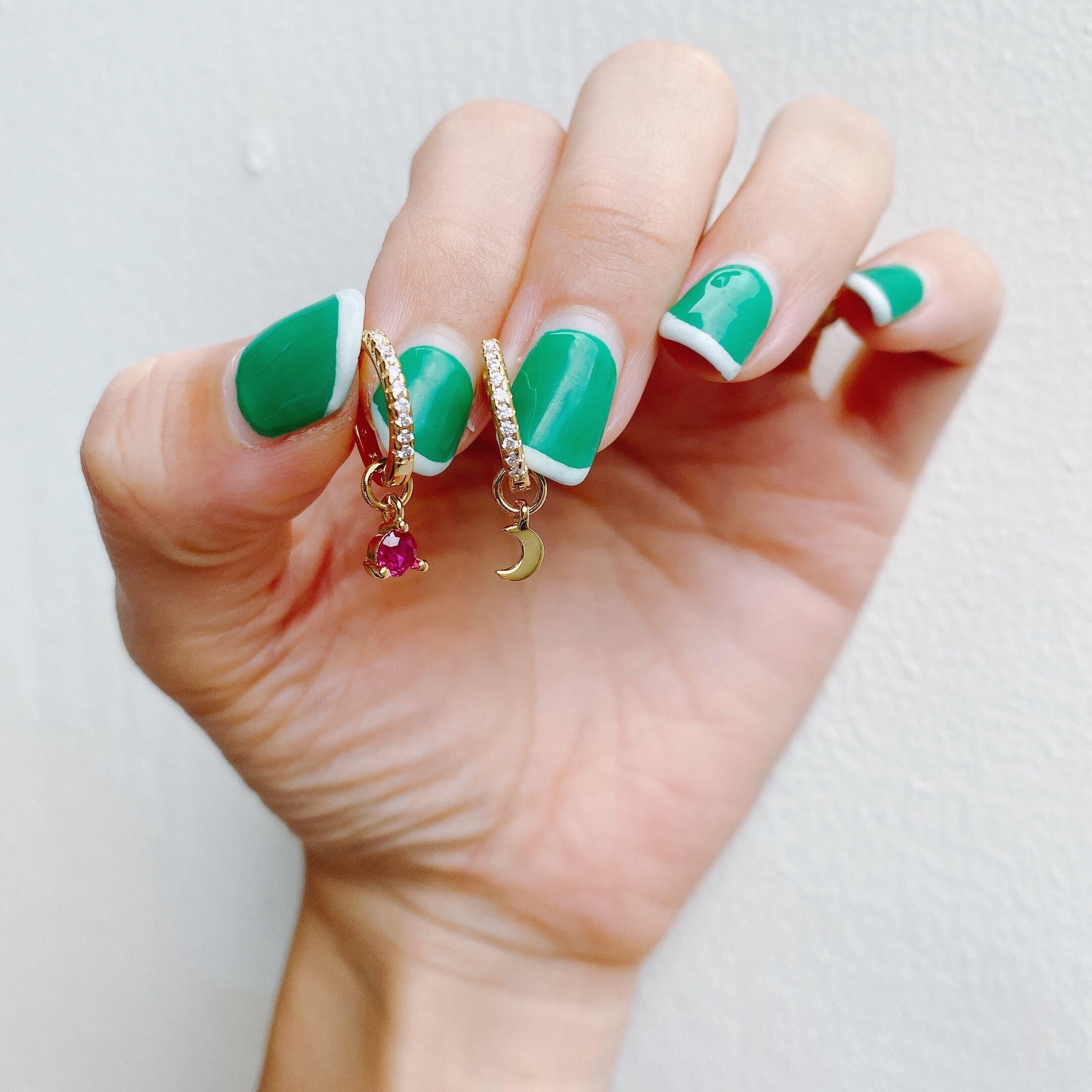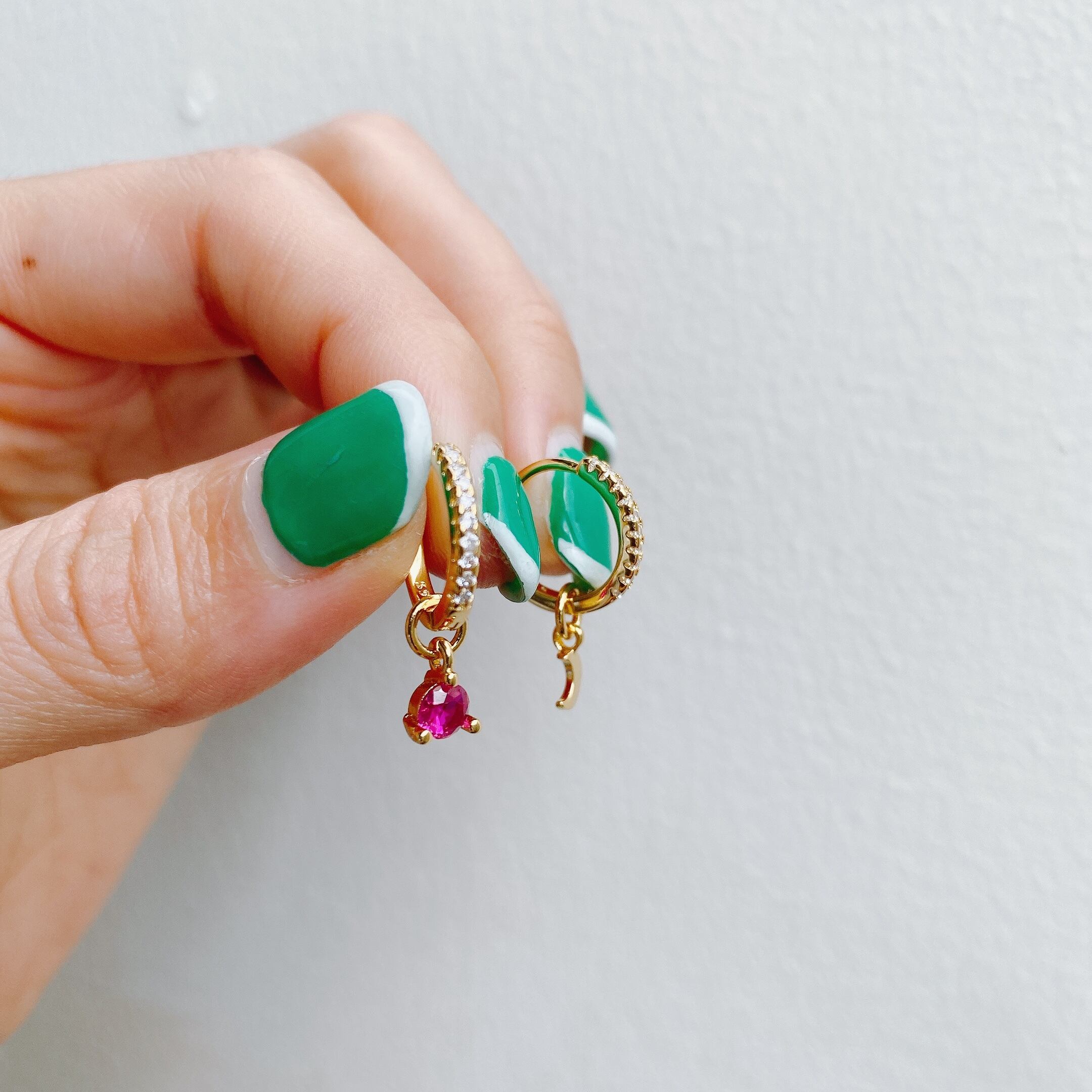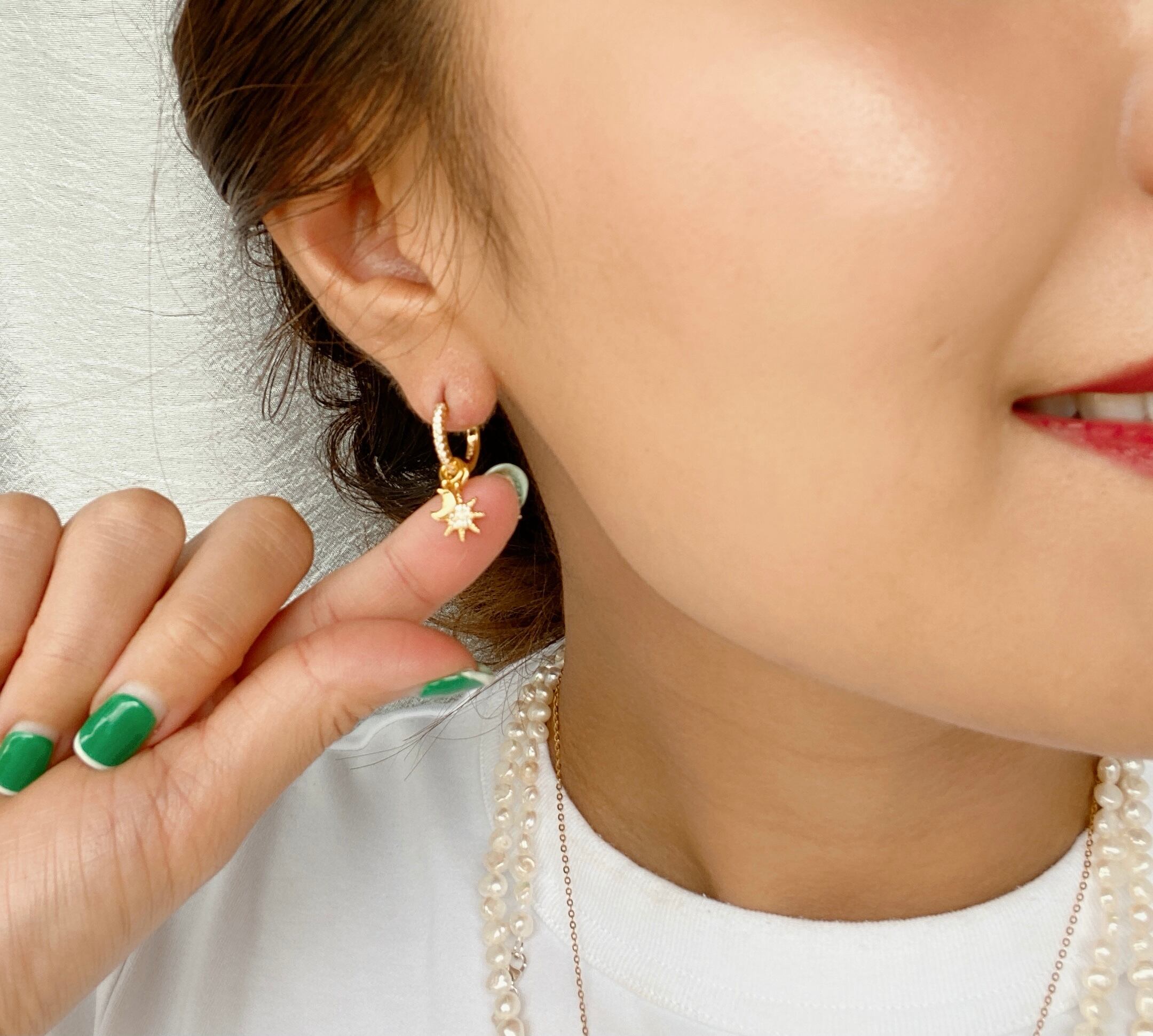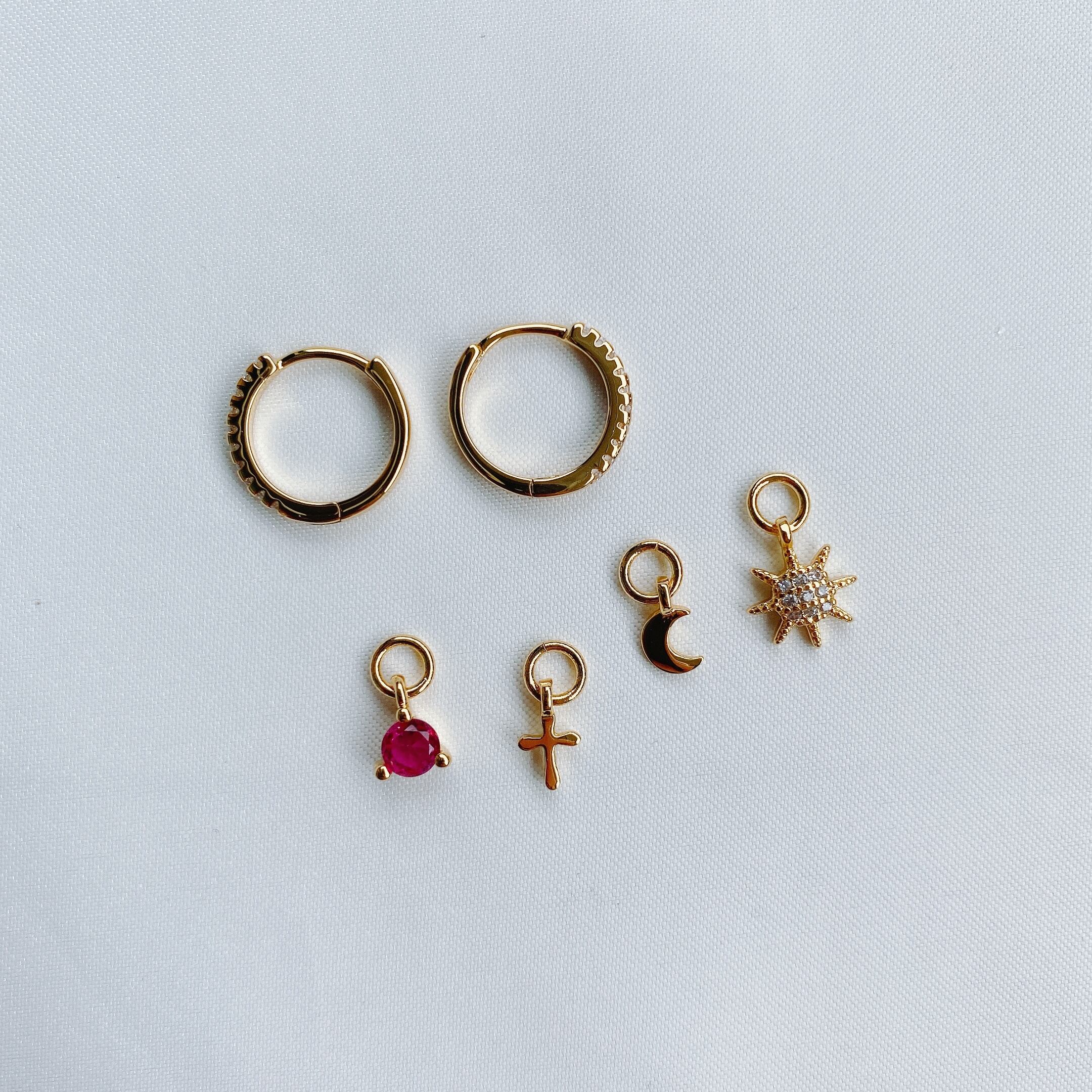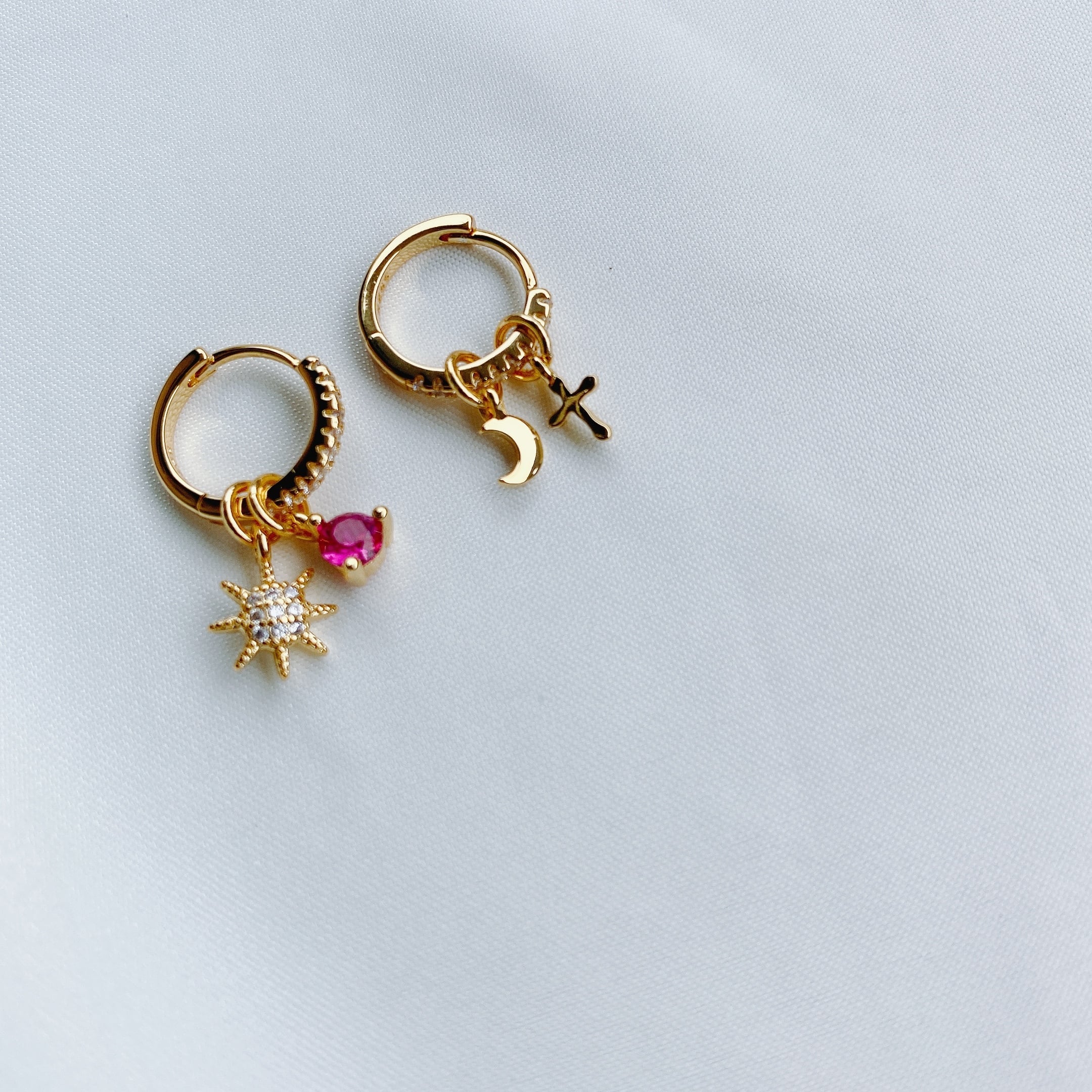 星、月、クロス、マゼンタジルコニアのセットにフープピアスがついてます!!